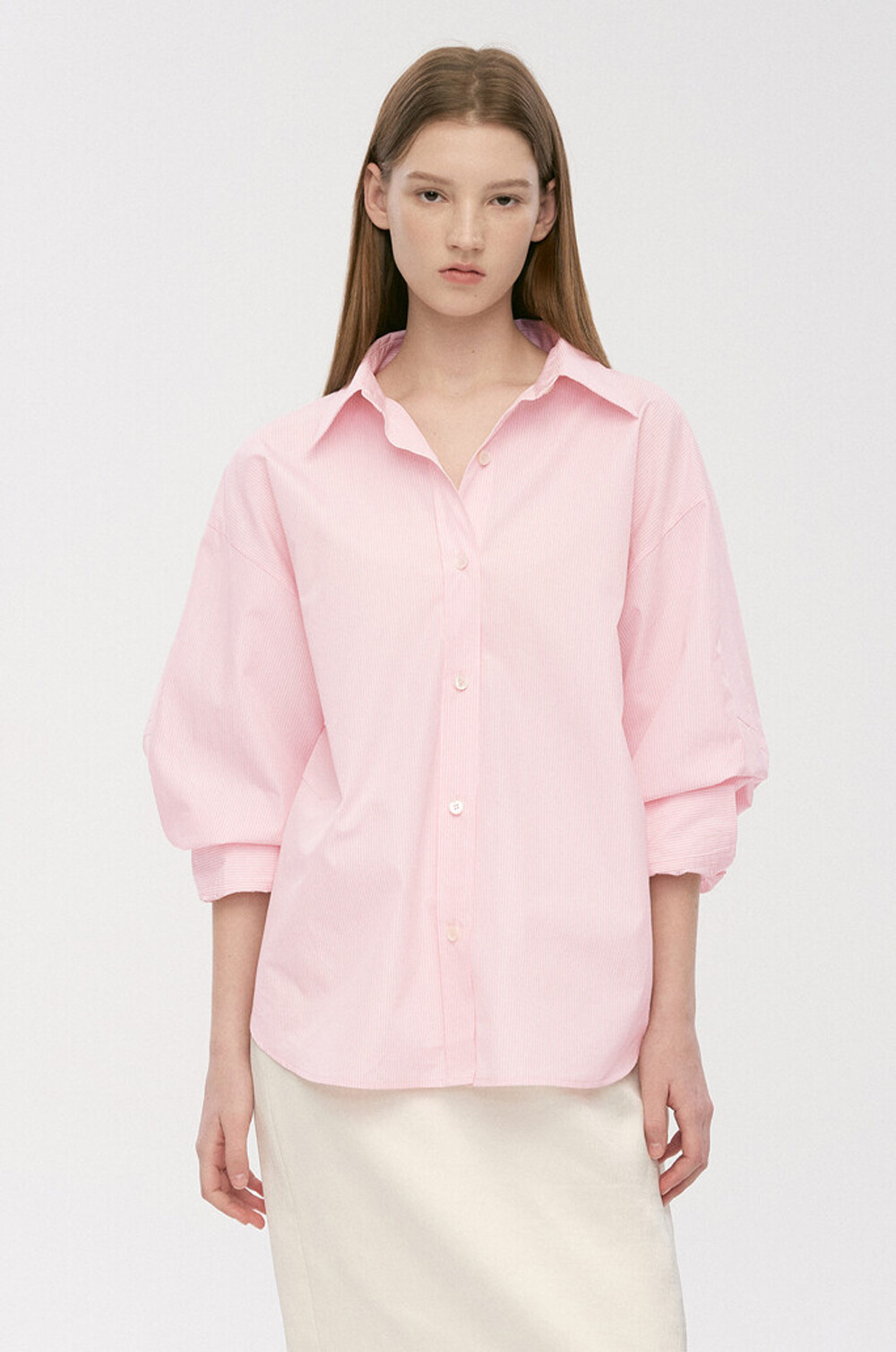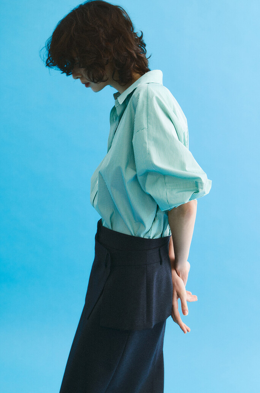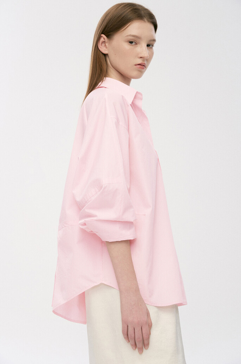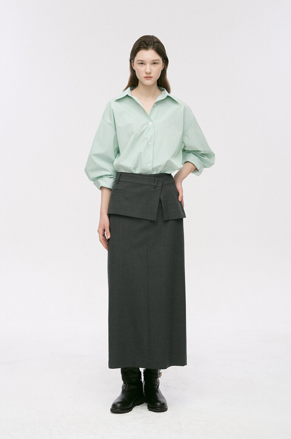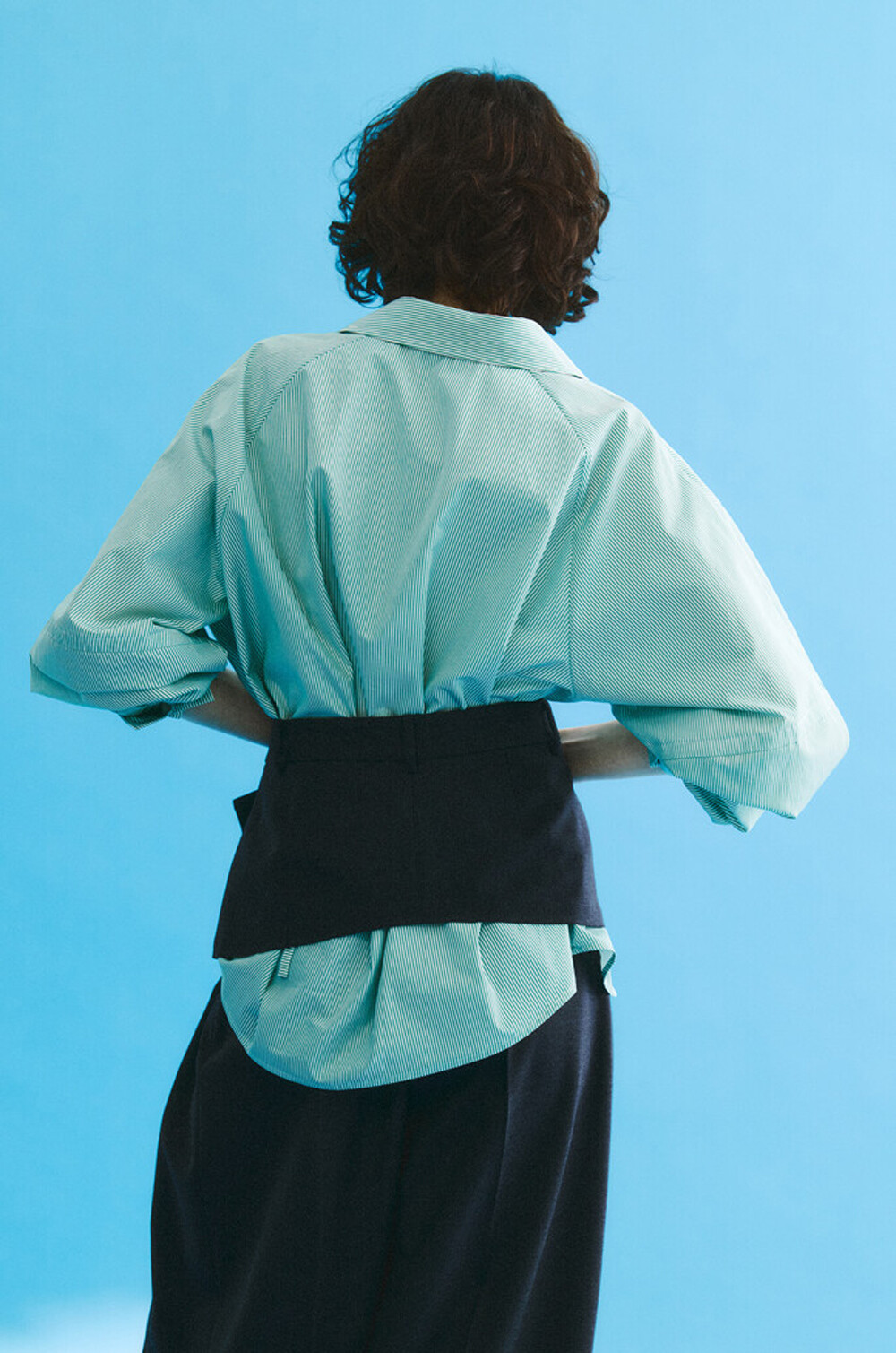 타임 버티컬 스트라이프 버클 스트랩 셔츠