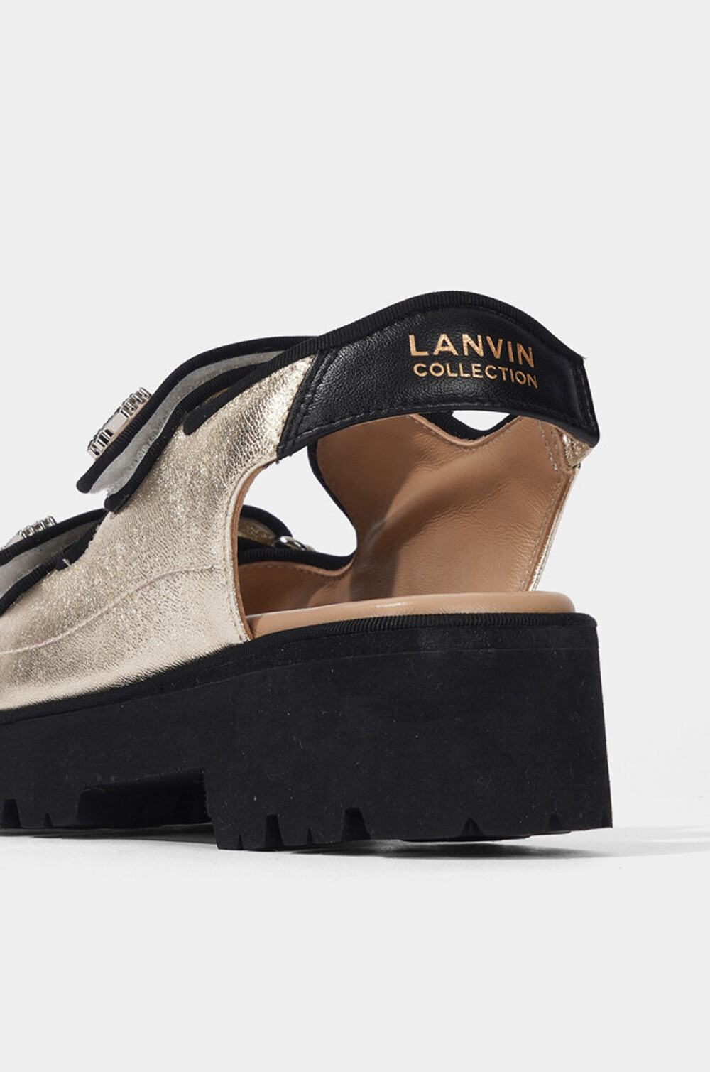 LANVIN. Leather Velcro Strap Platform Sandals