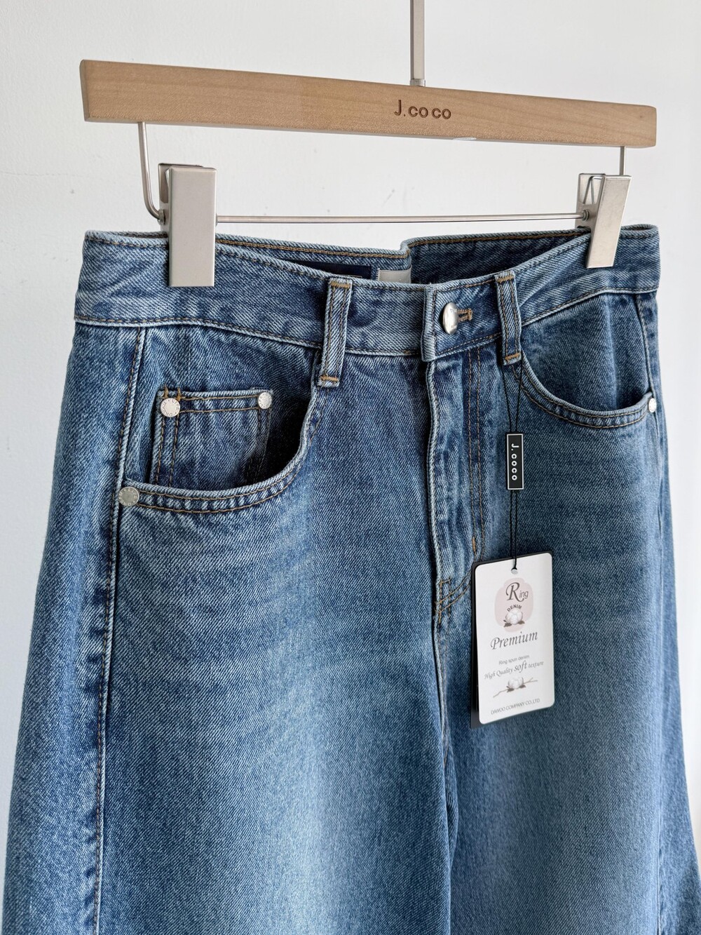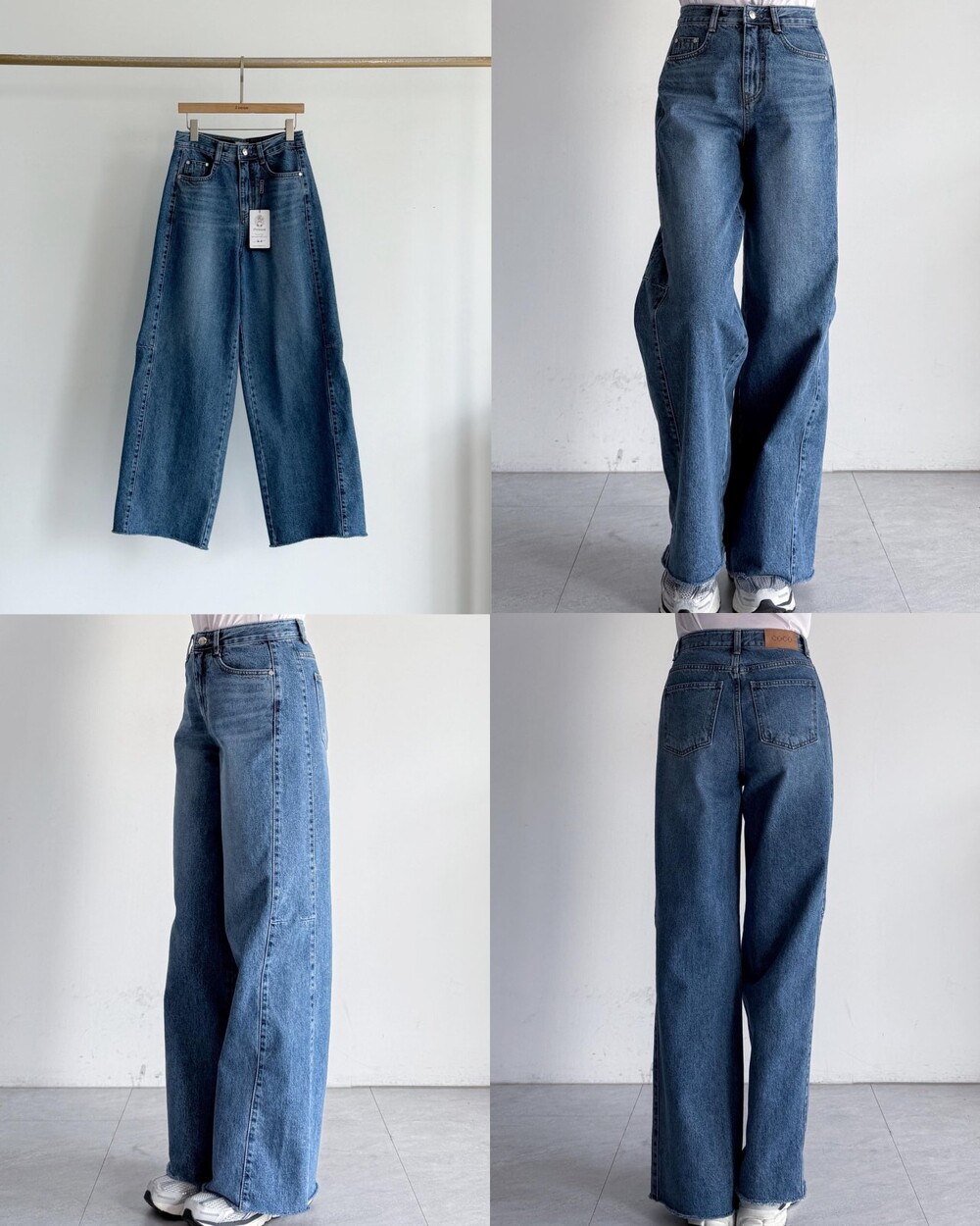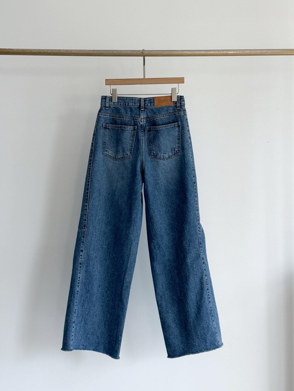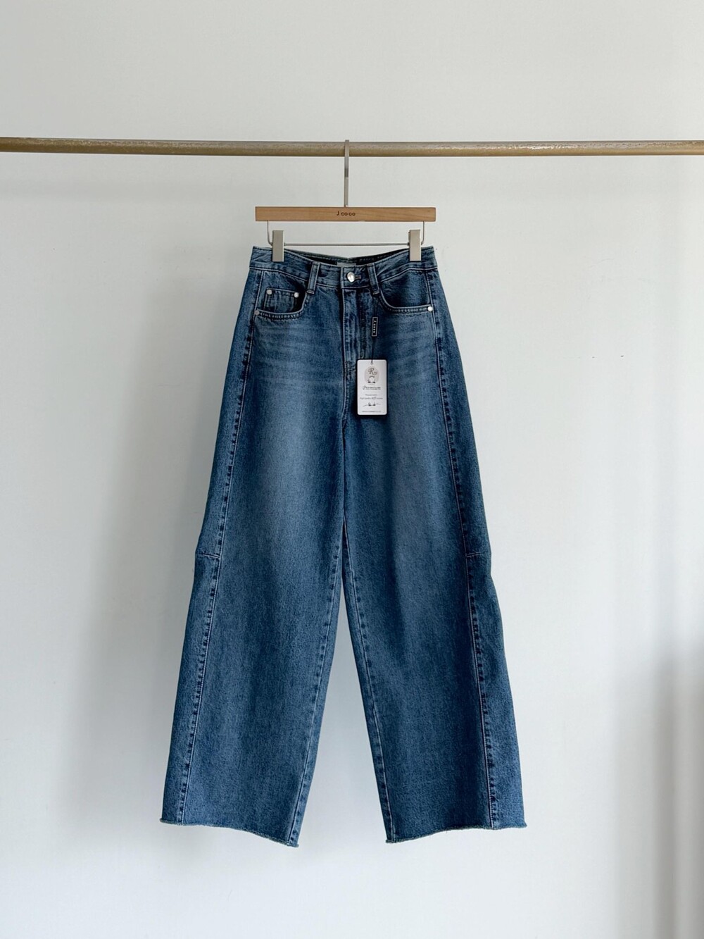 제이코코. 프레이드 헴 패널 와이드 데님 팬츠