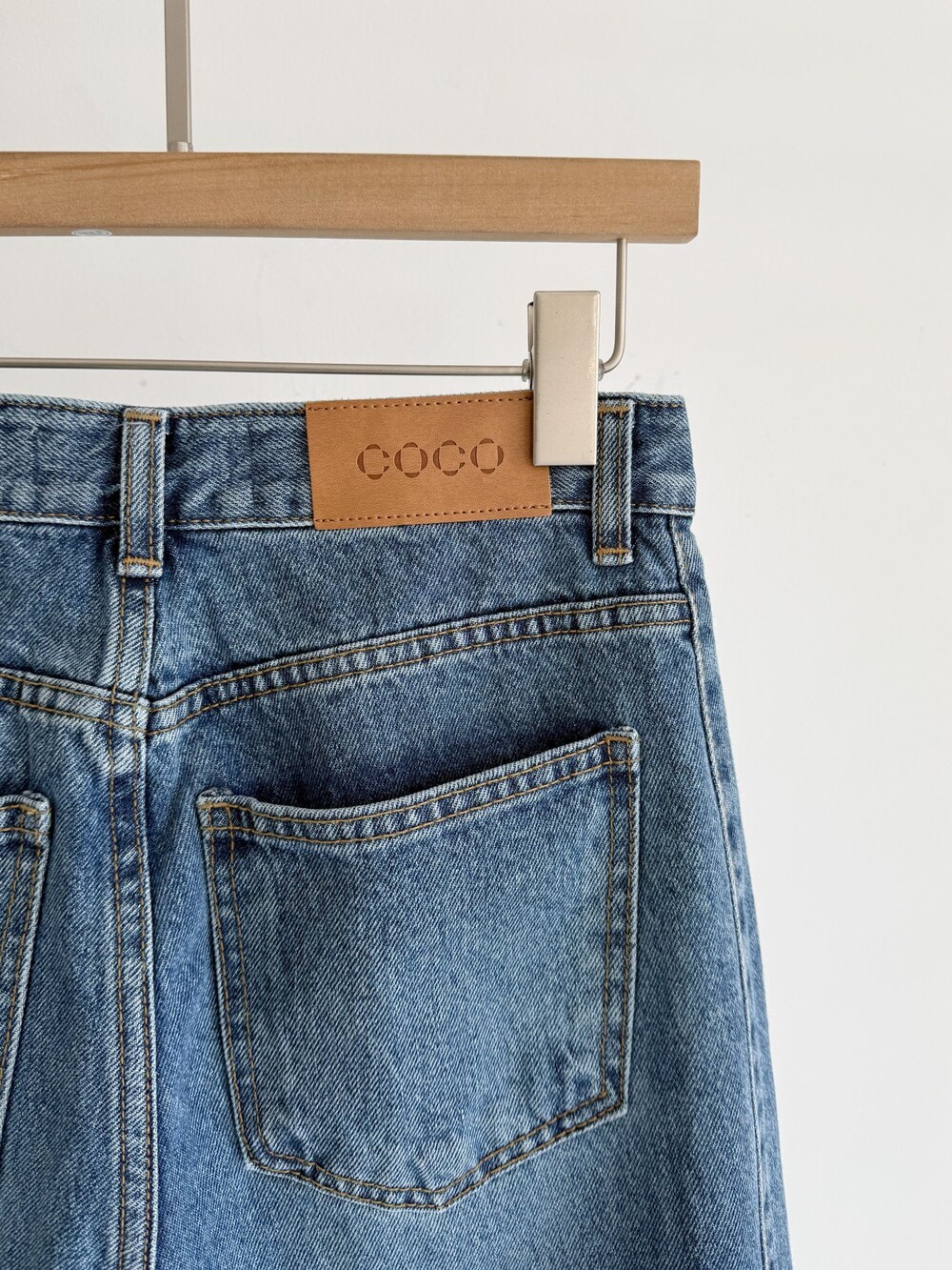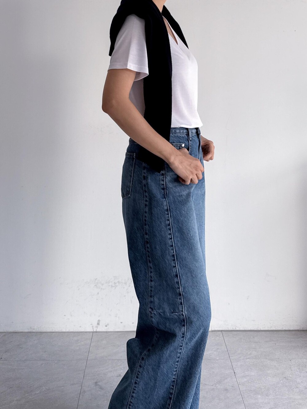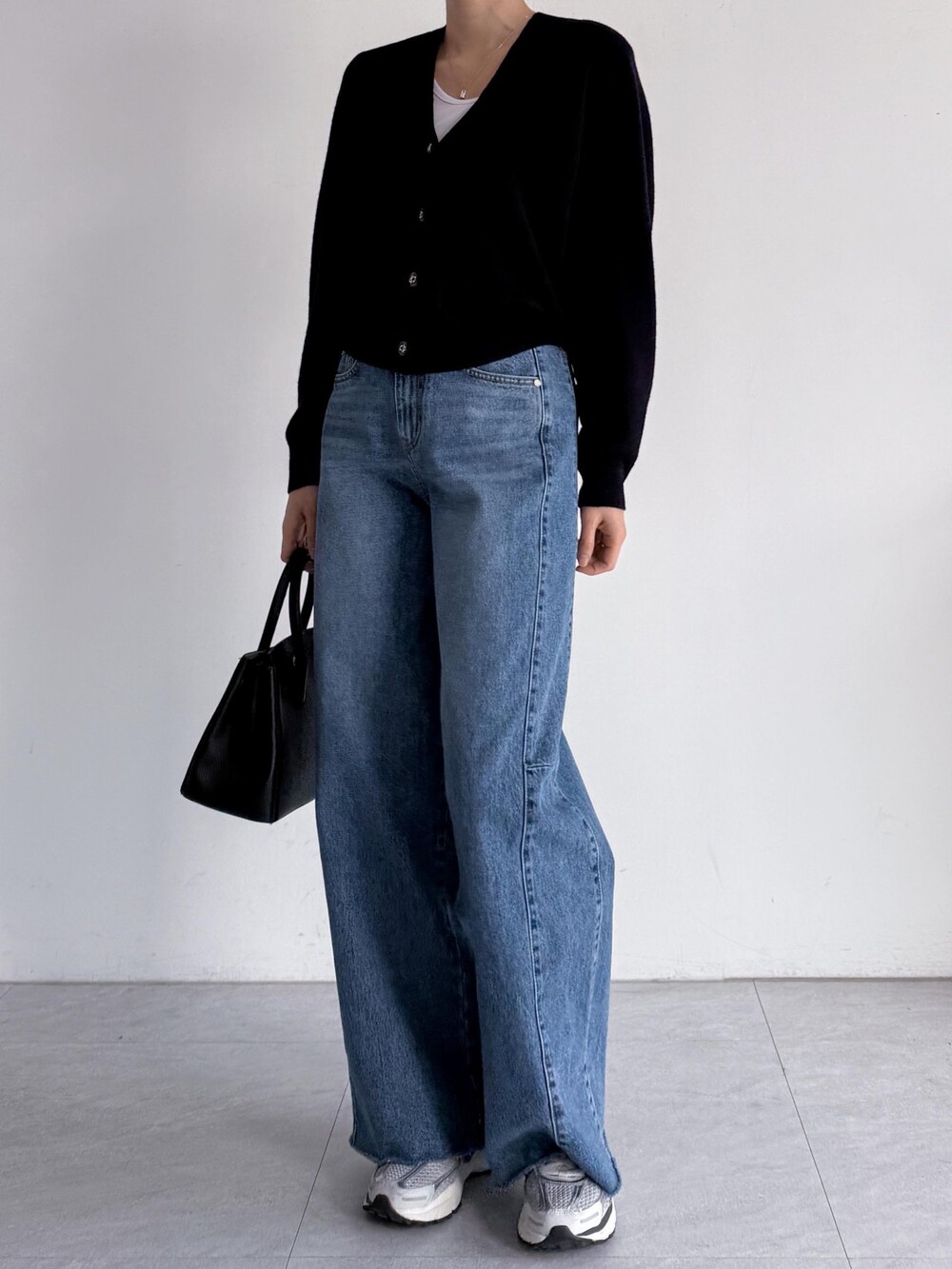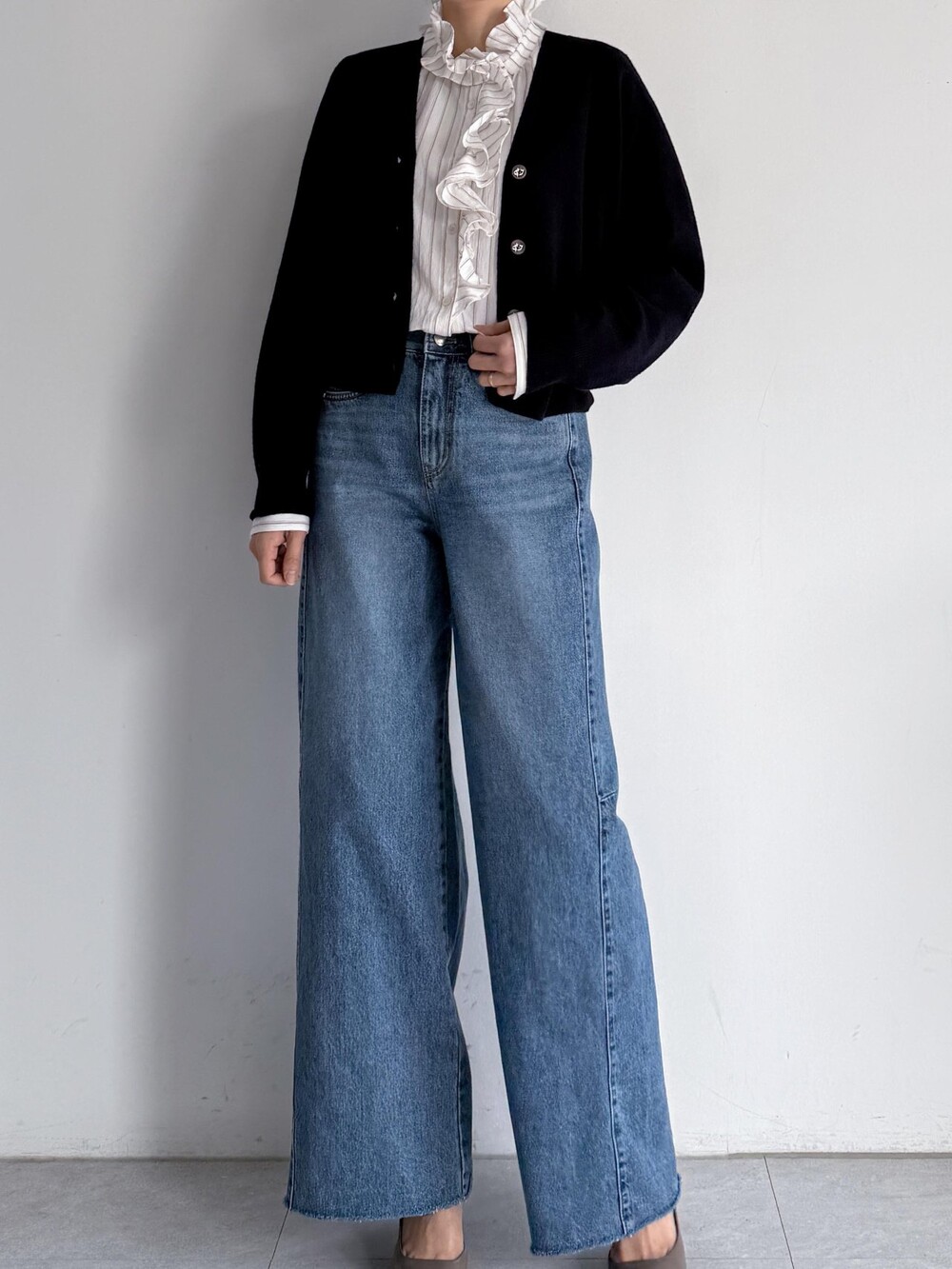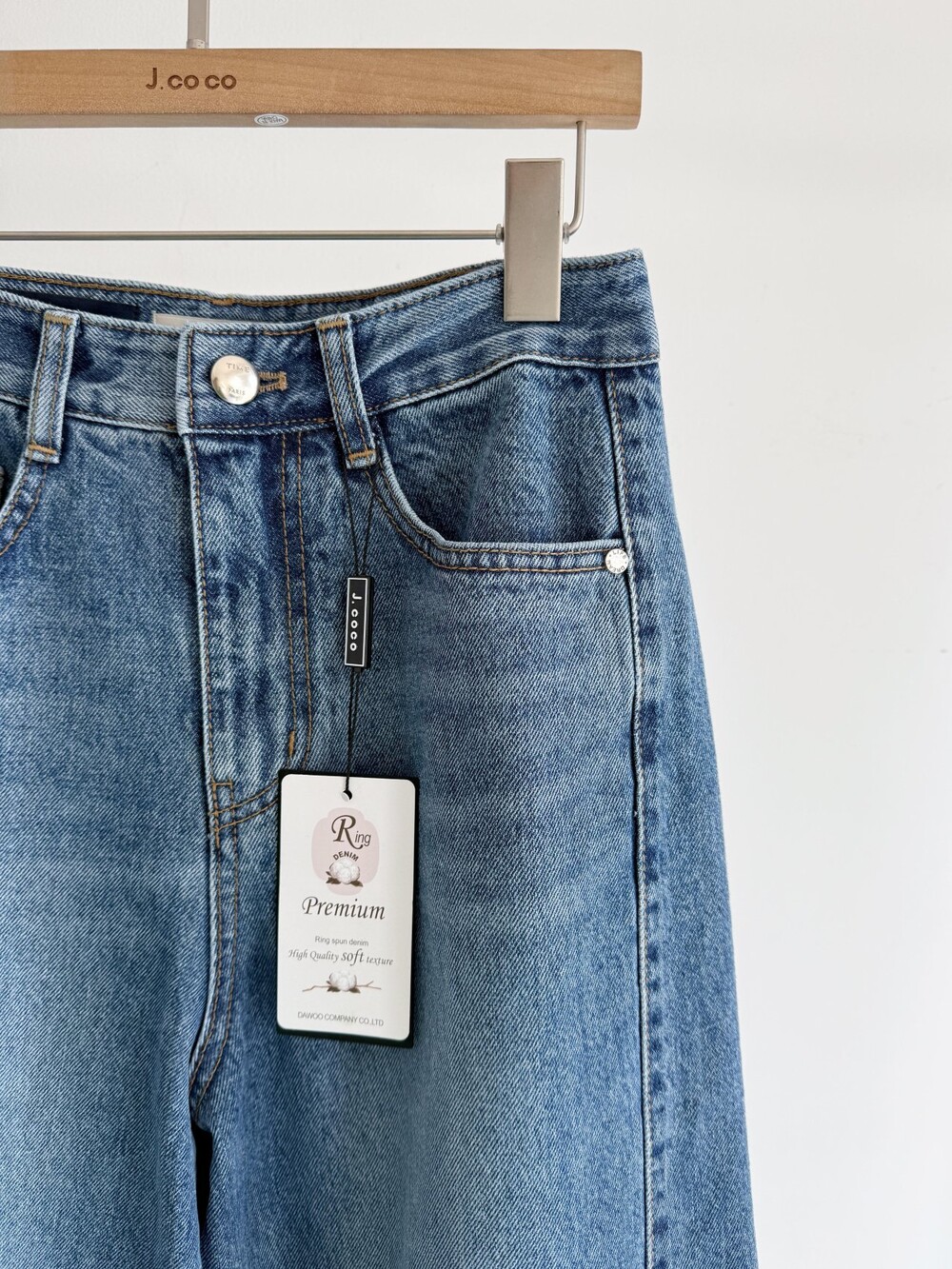 제이코코. 프레이드 헴 패널 와이드 데님 팬츠