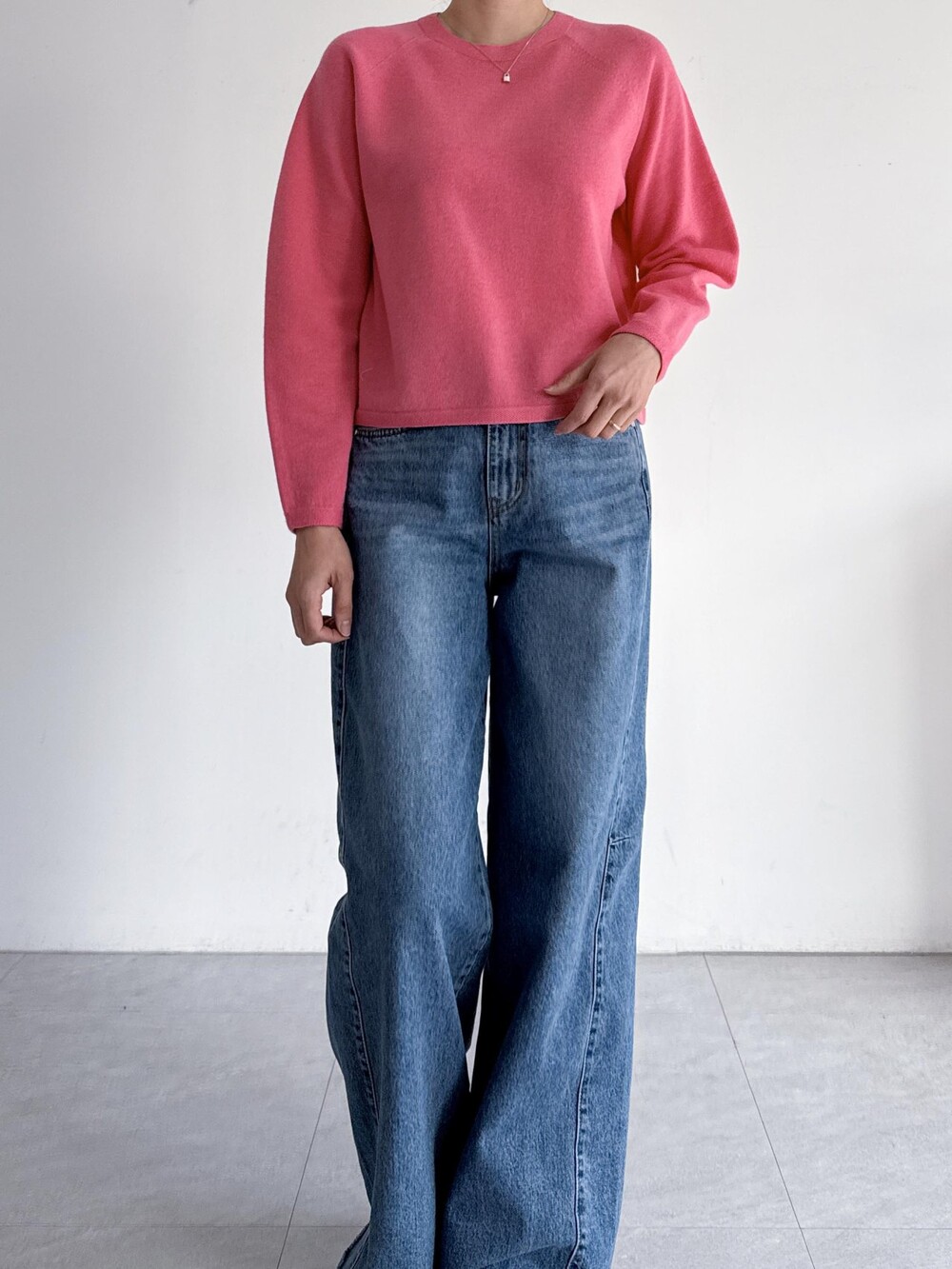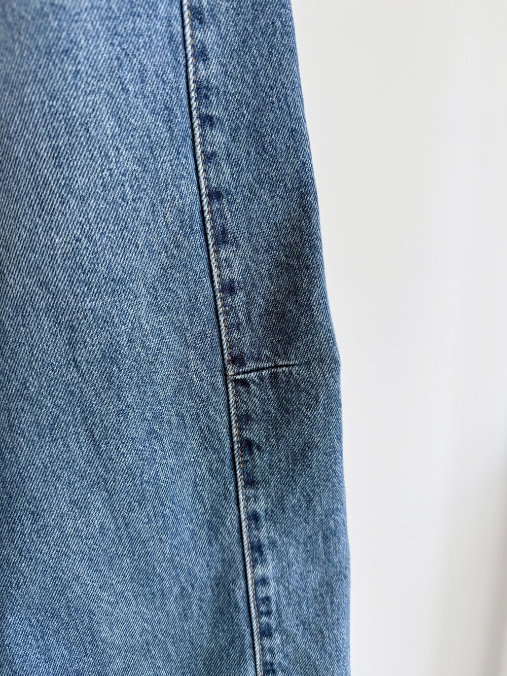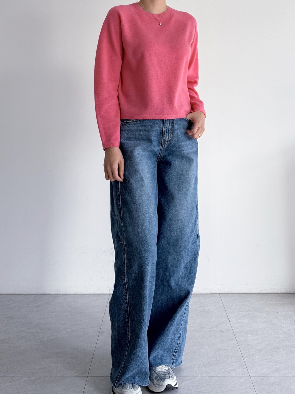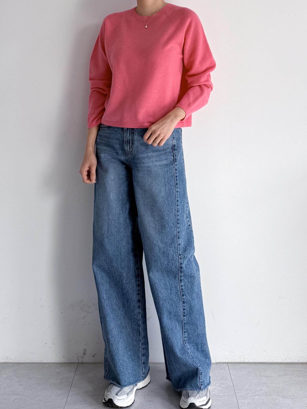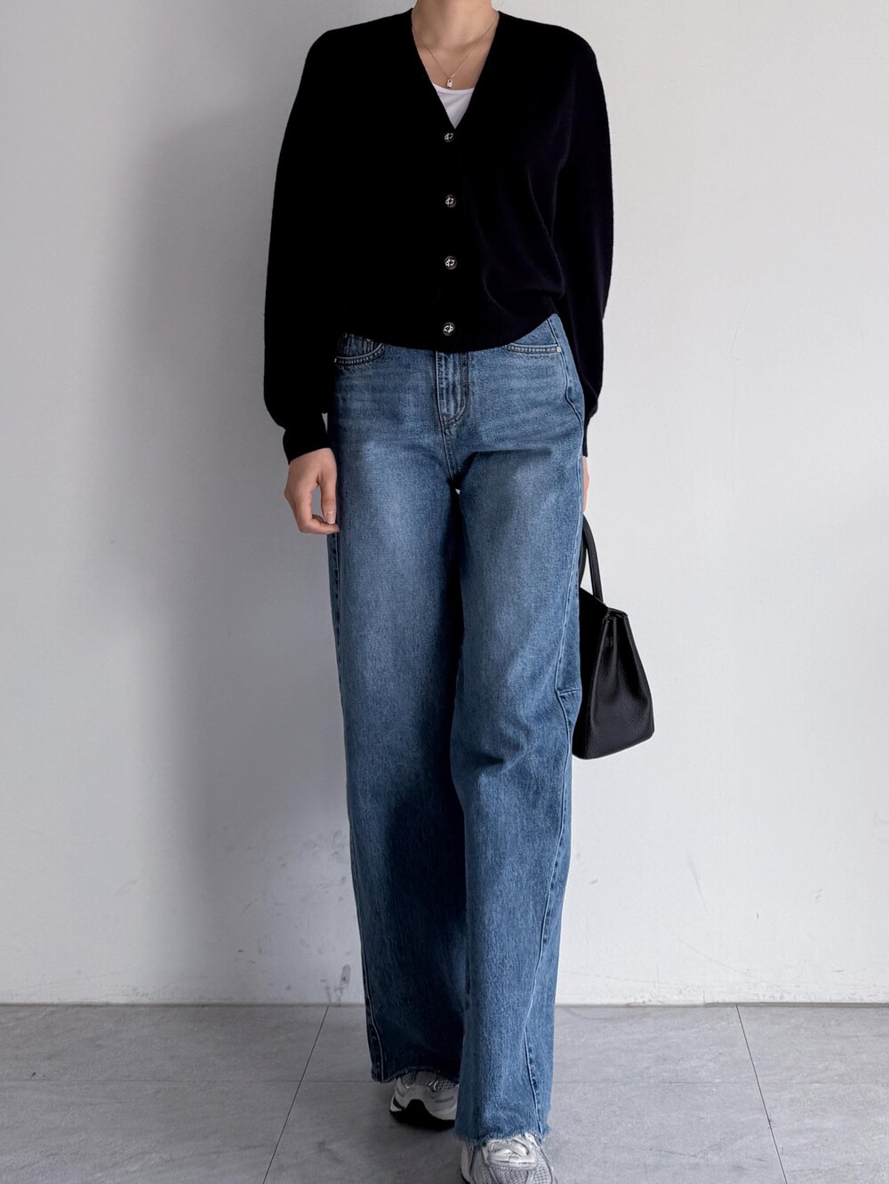 제이코코. 프레이드 헴 패널 와이드 데님 팬츠