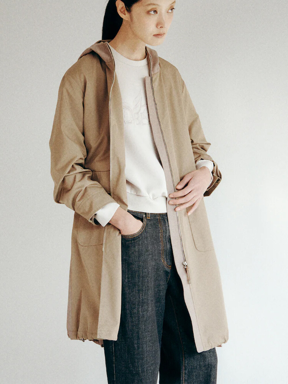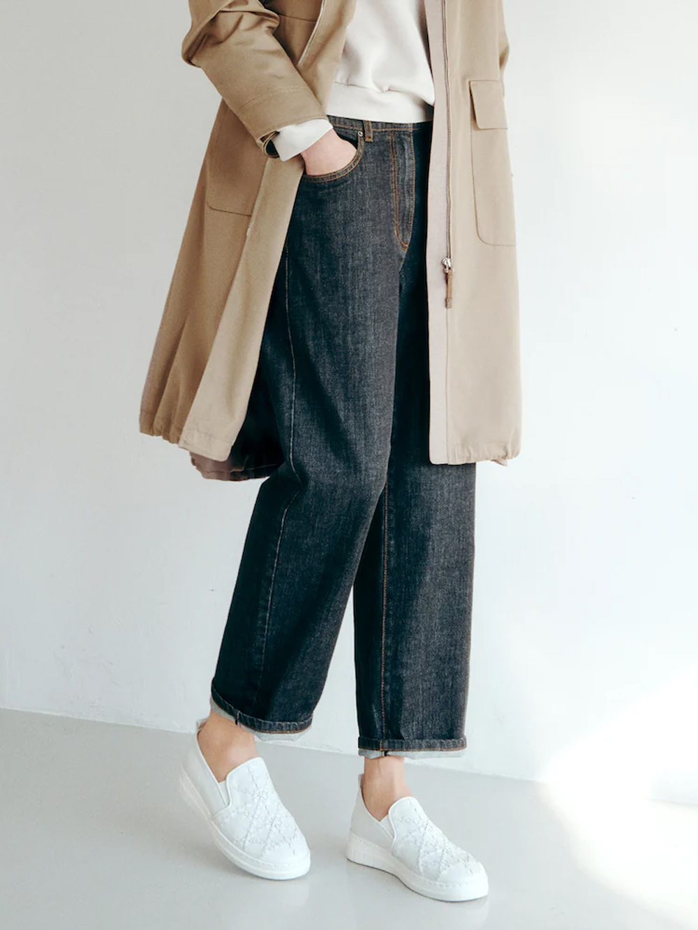 살짝 슬림하게 떨어지는 배기핏