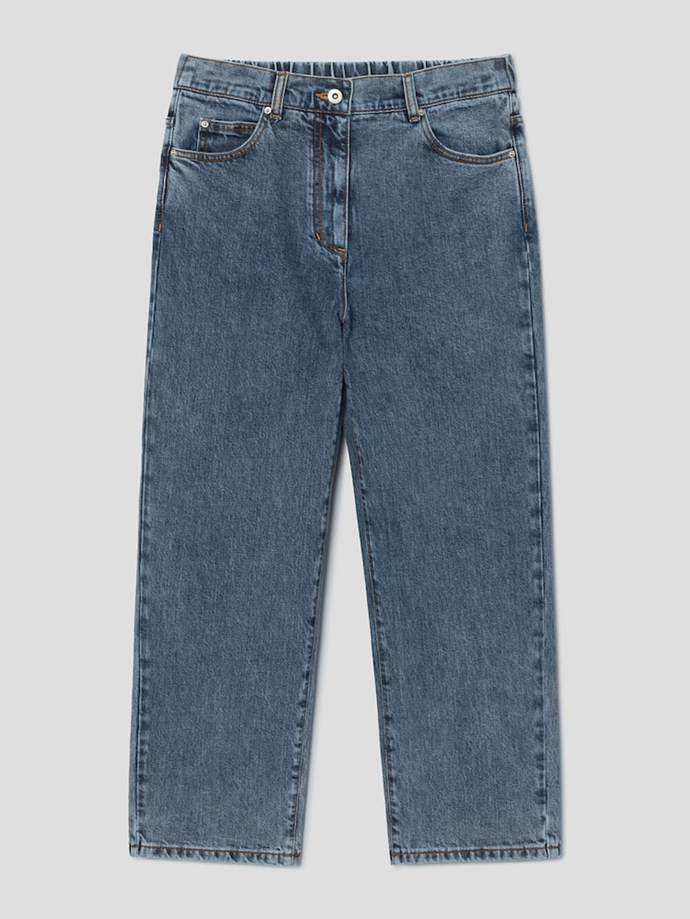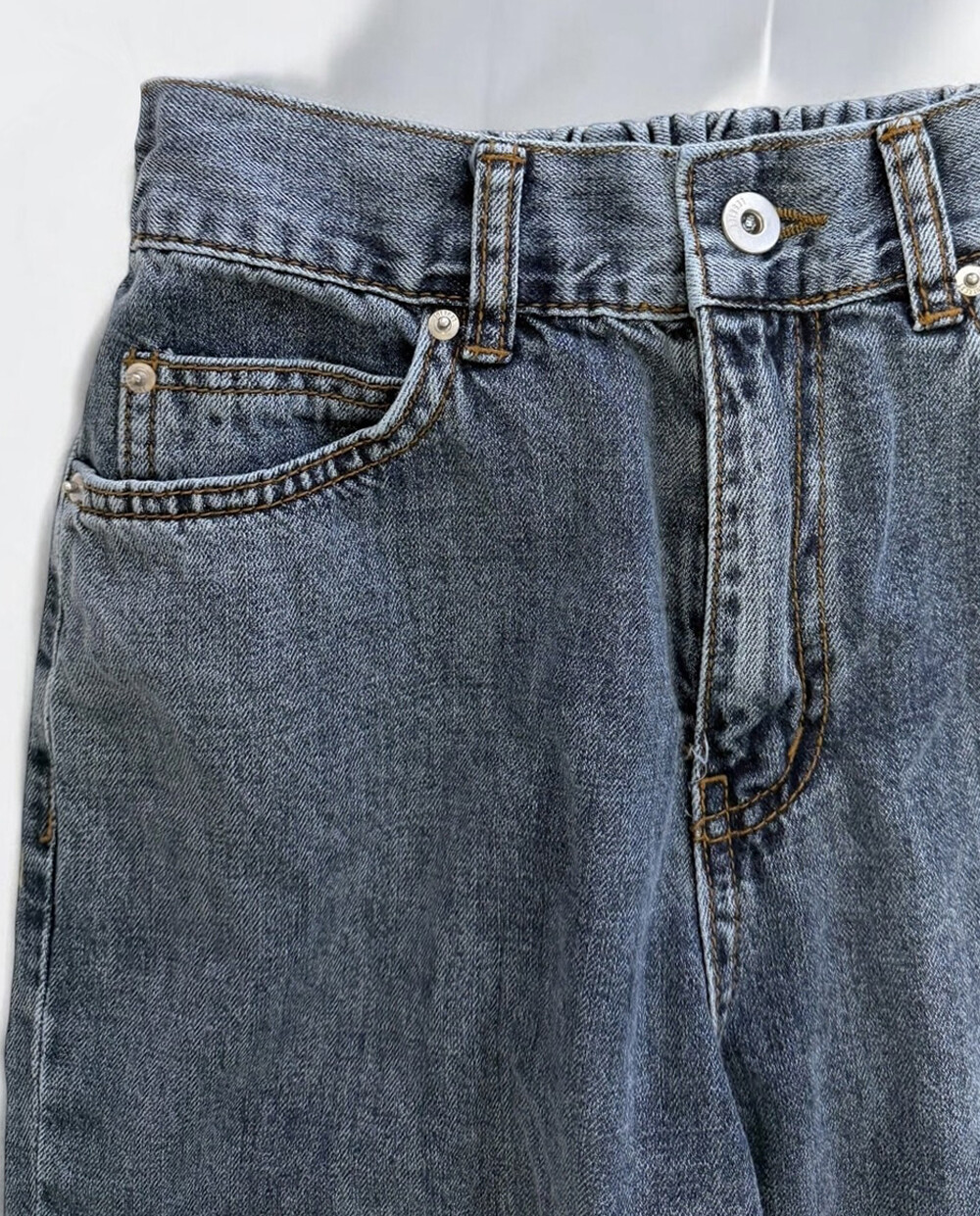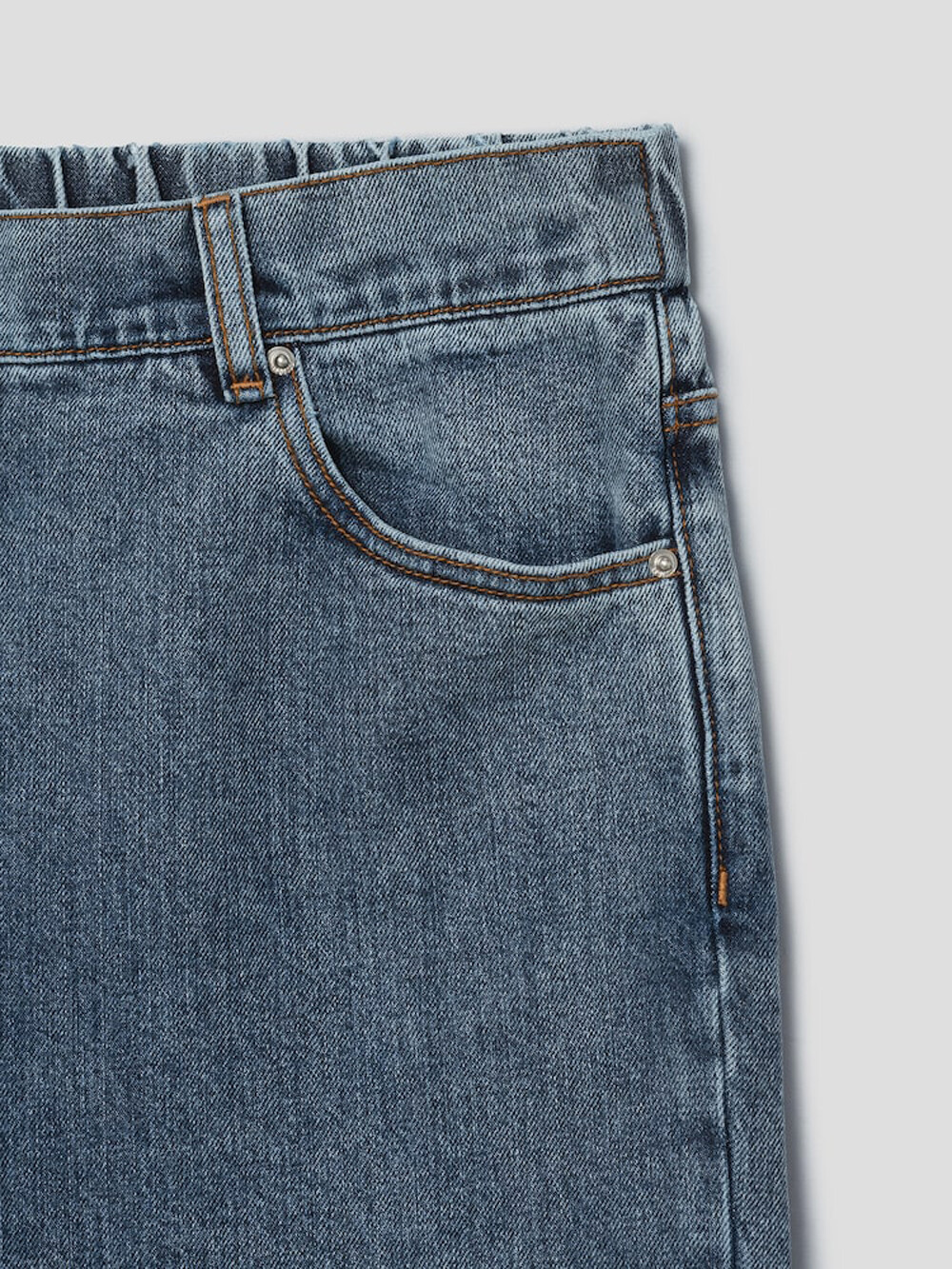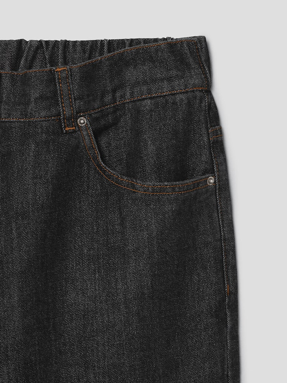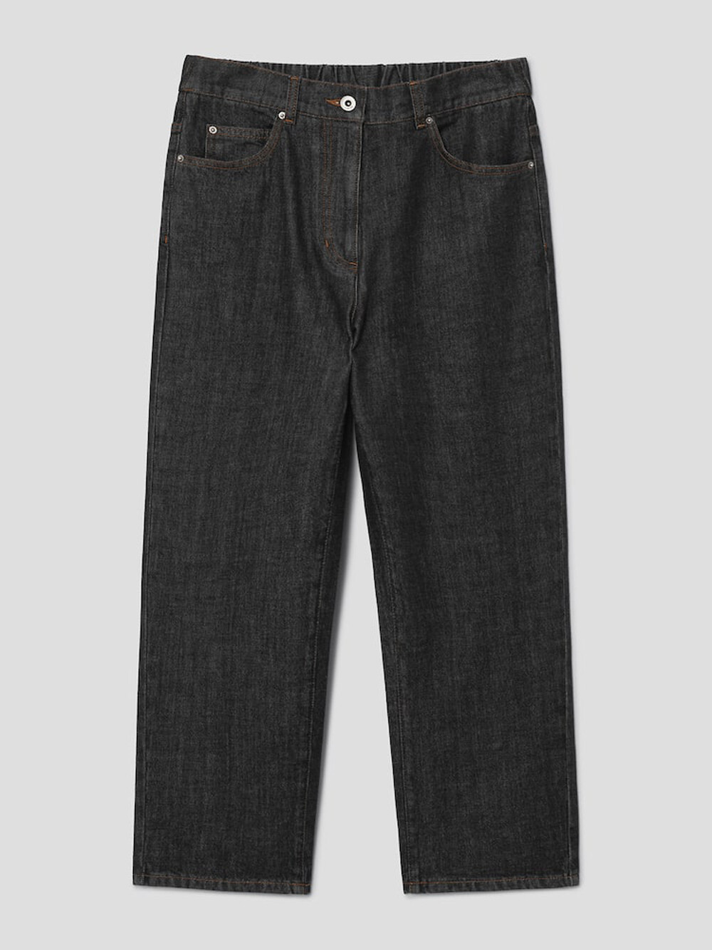 살짝 슬림한 배기핏 데님 팬츠로,