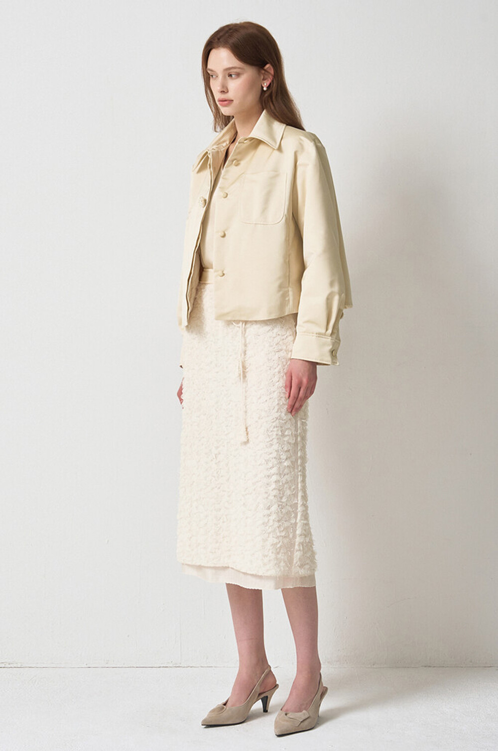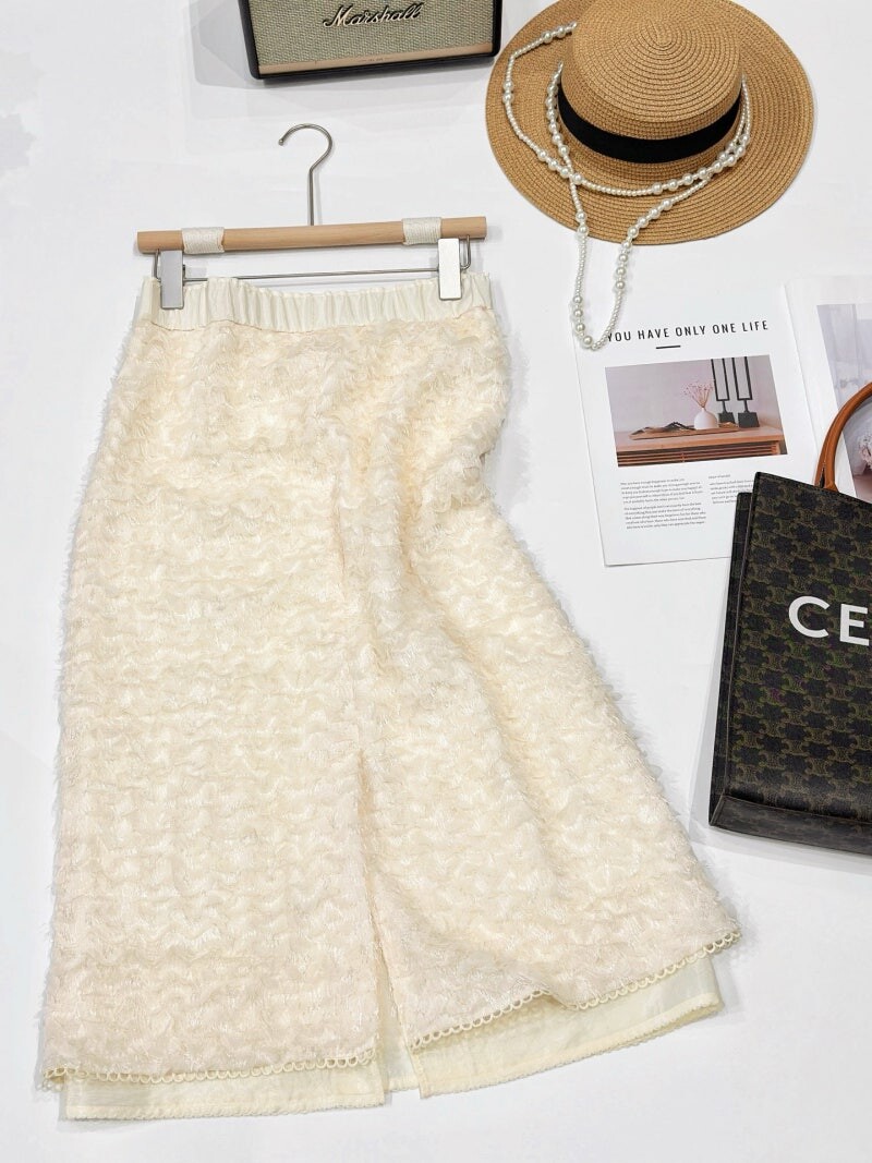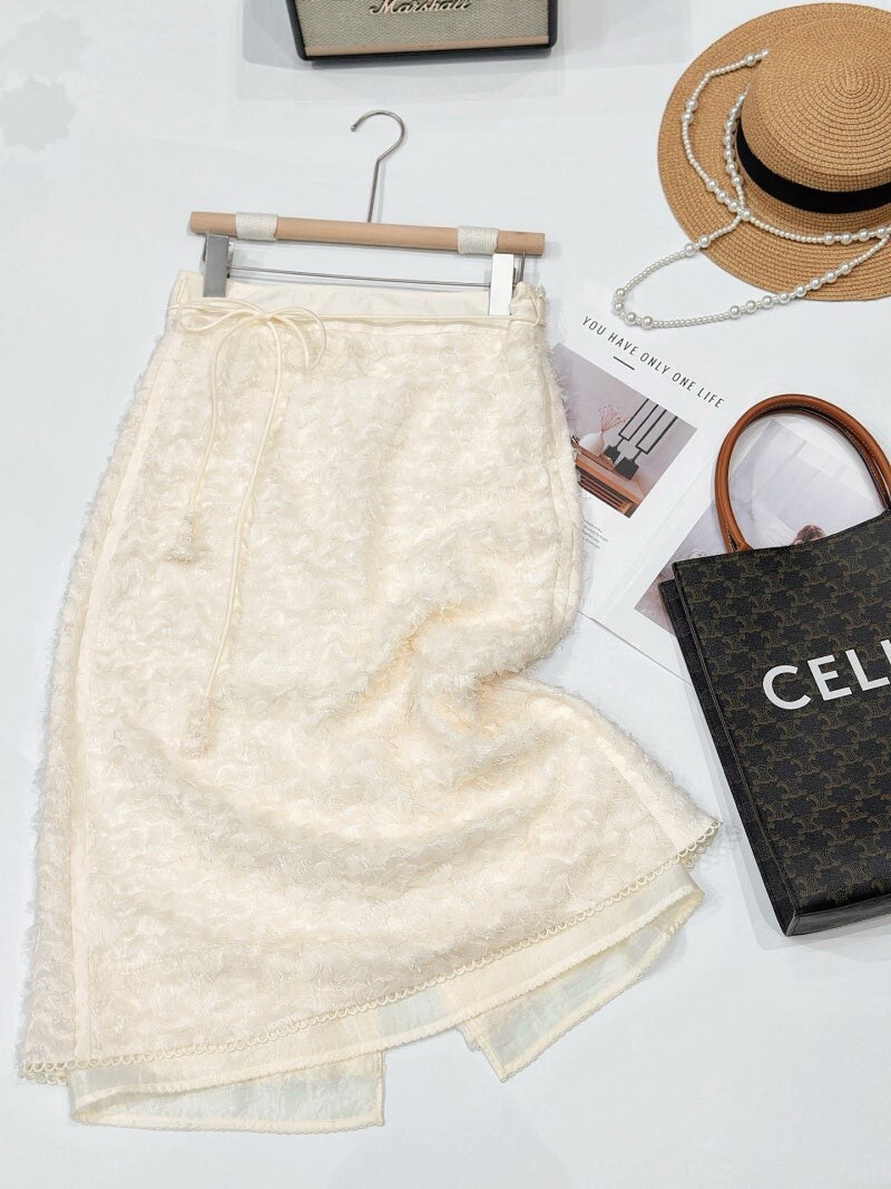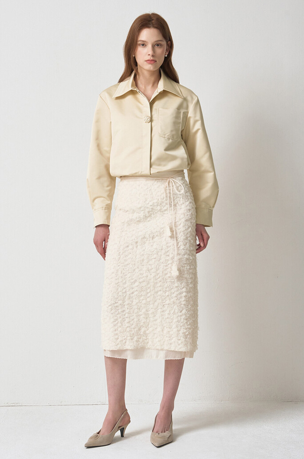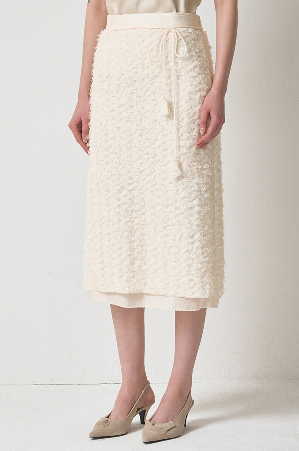 마인 벨티드 레이스 텍스처 백 밴딩 스커트