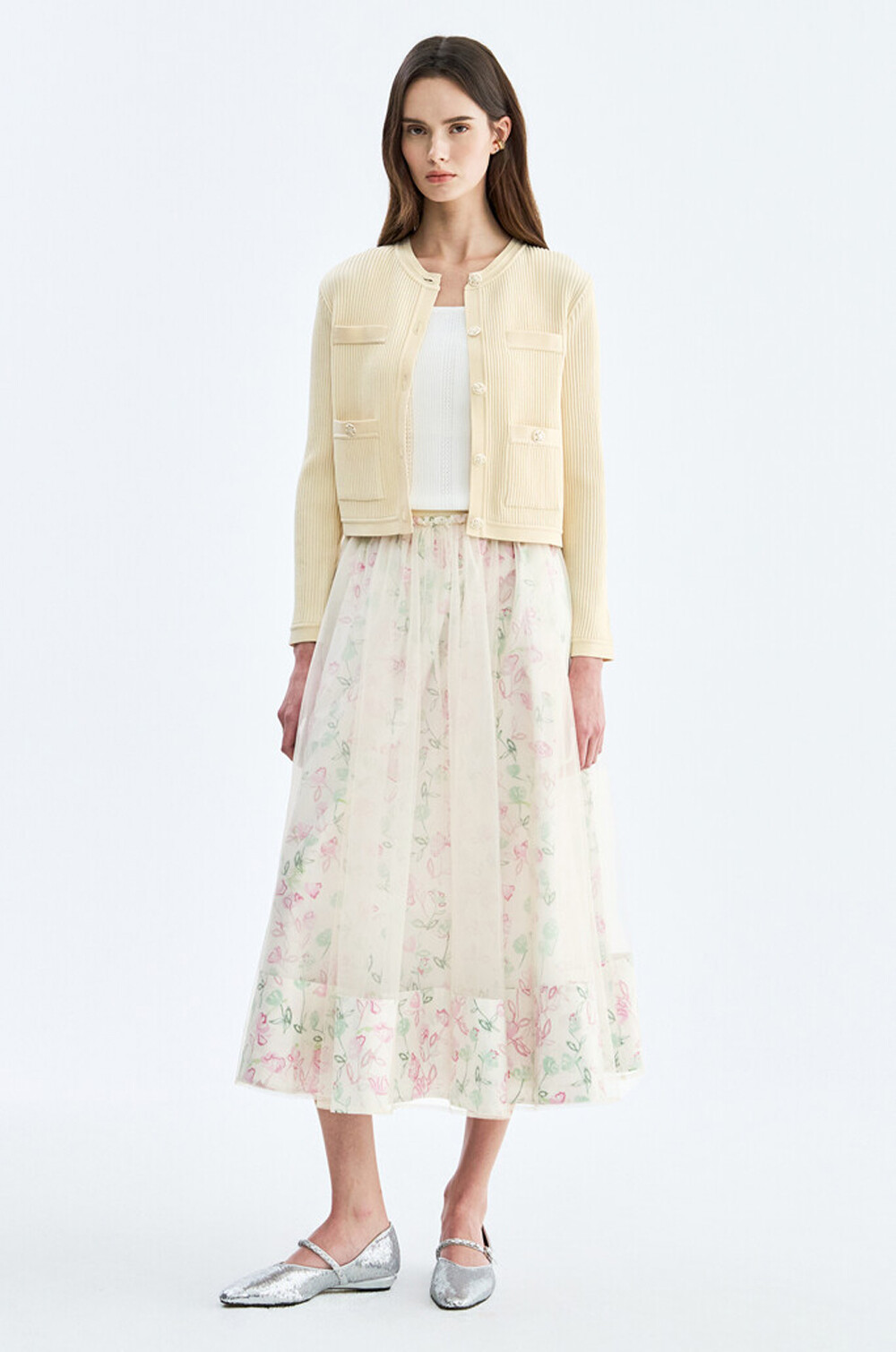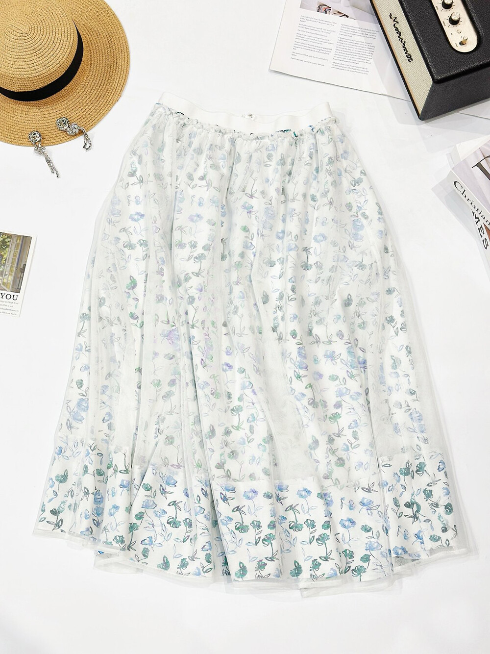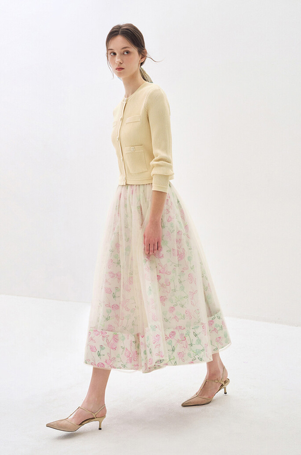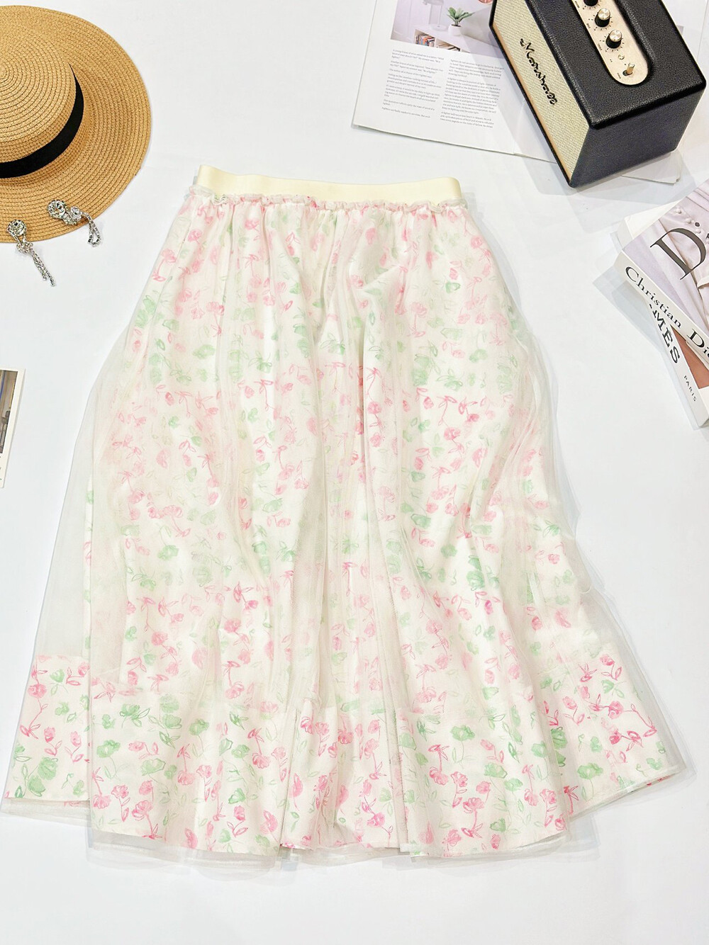 오브제 플로럴 플레어 튤 스커트