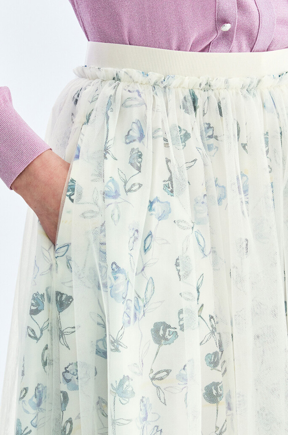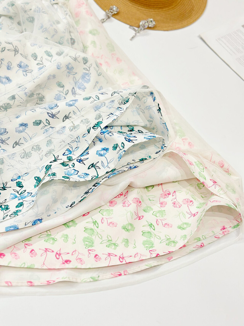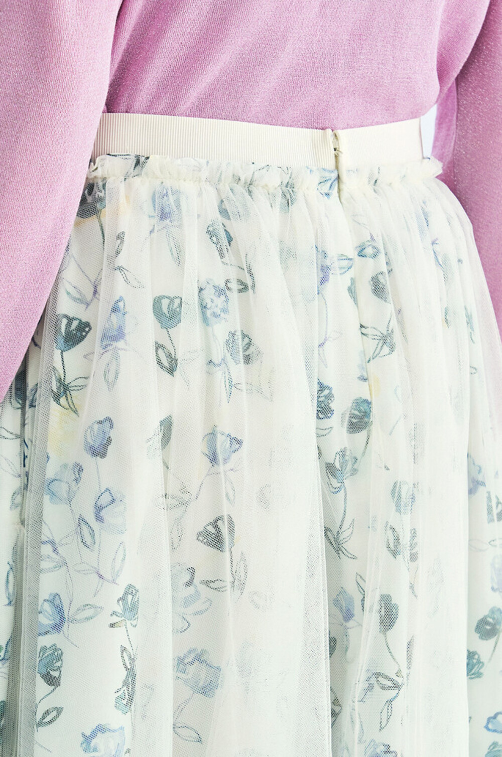 플로럴 패턴과 튤 텍스처가