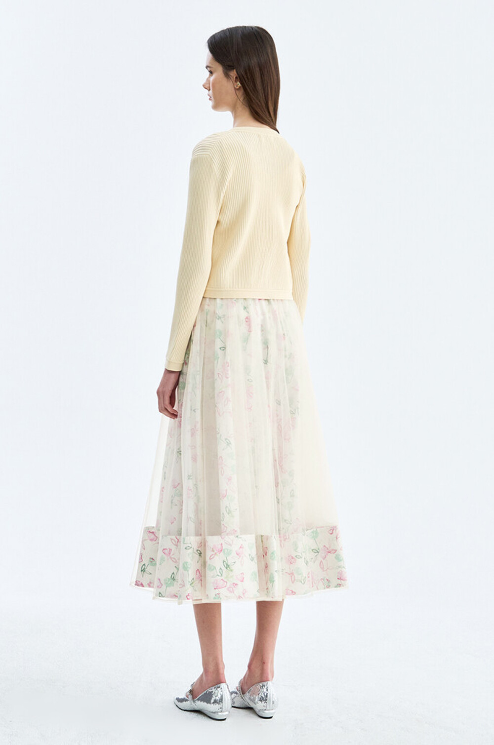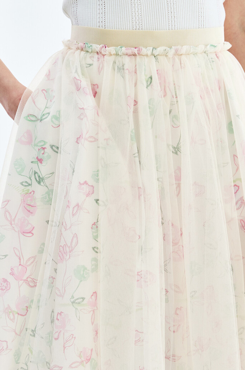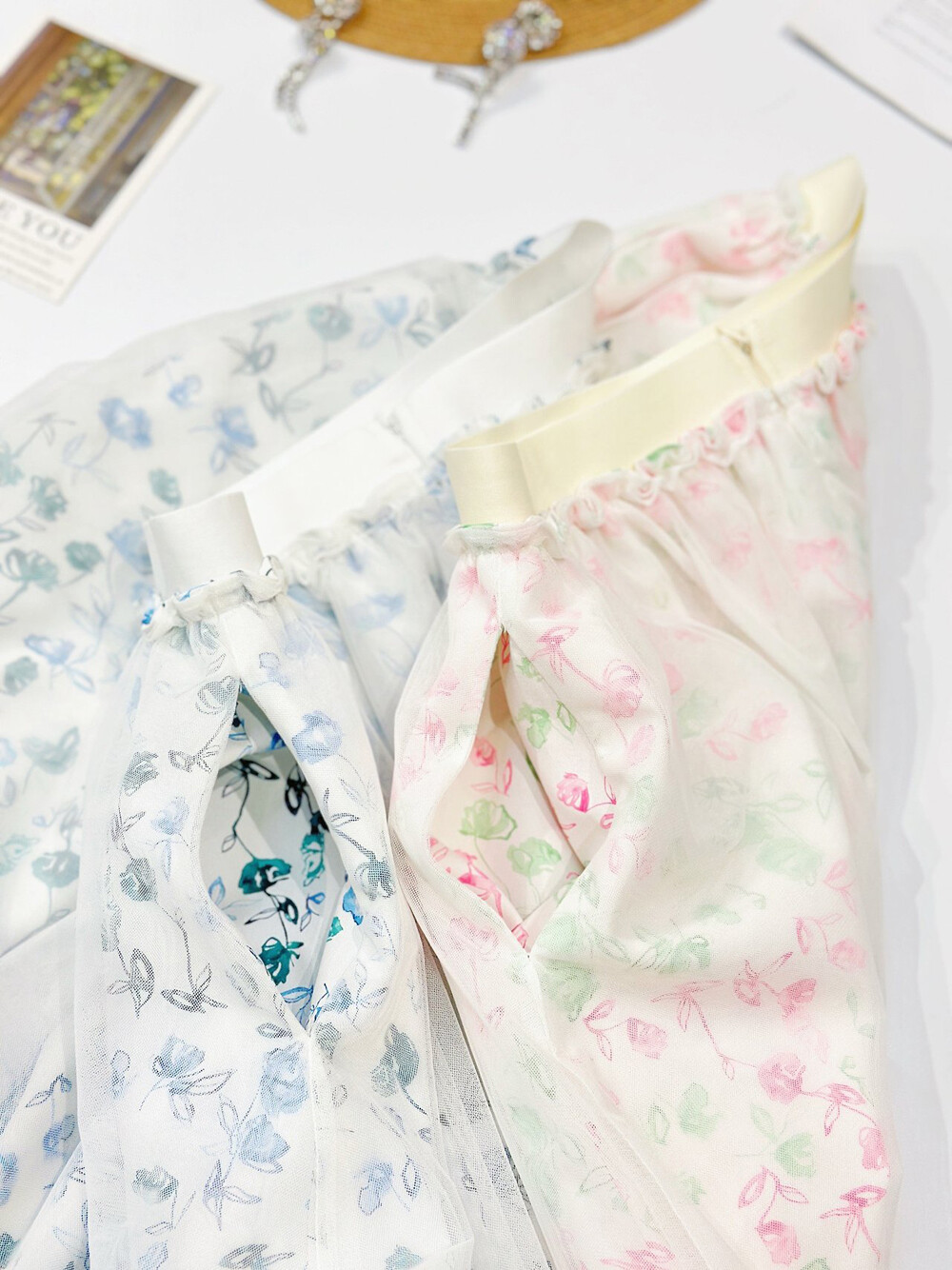 플로럴 패턴과 튤 텍스처가
