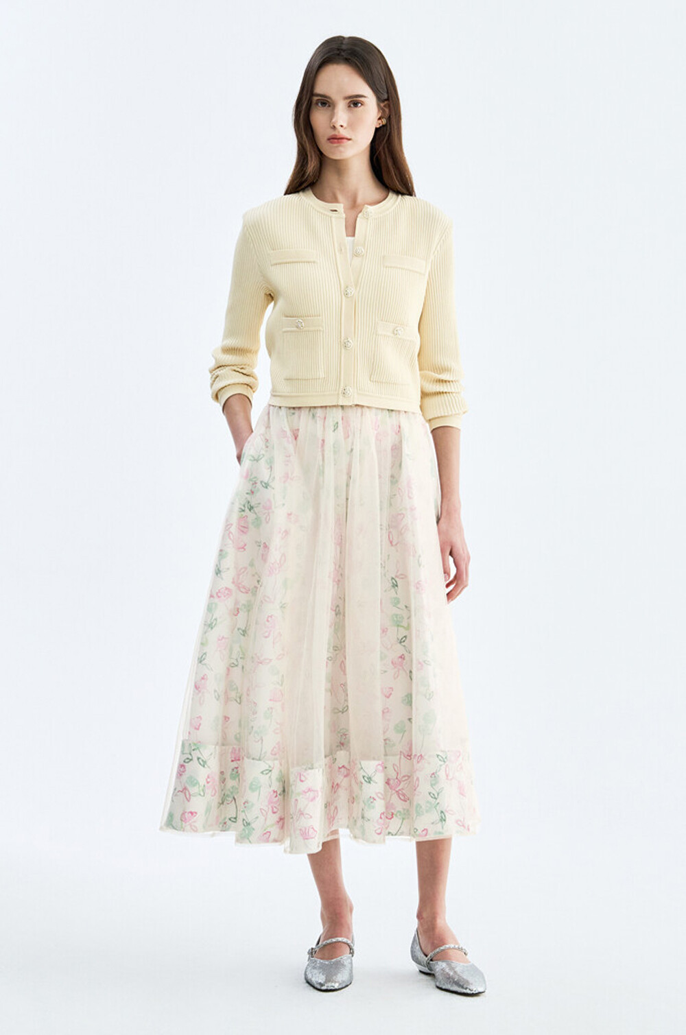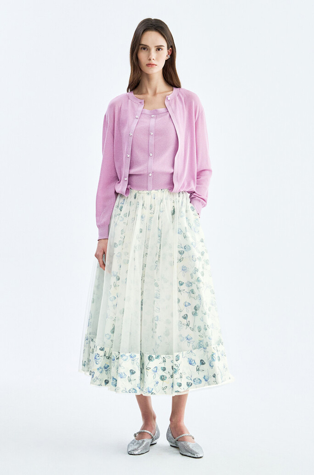 풍성하게 퍼지는 플레어 실루엣으로