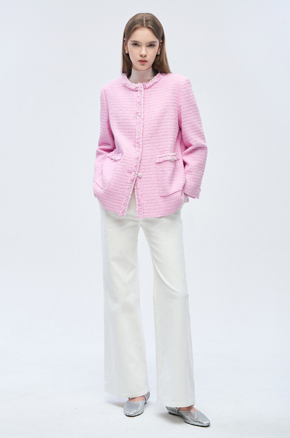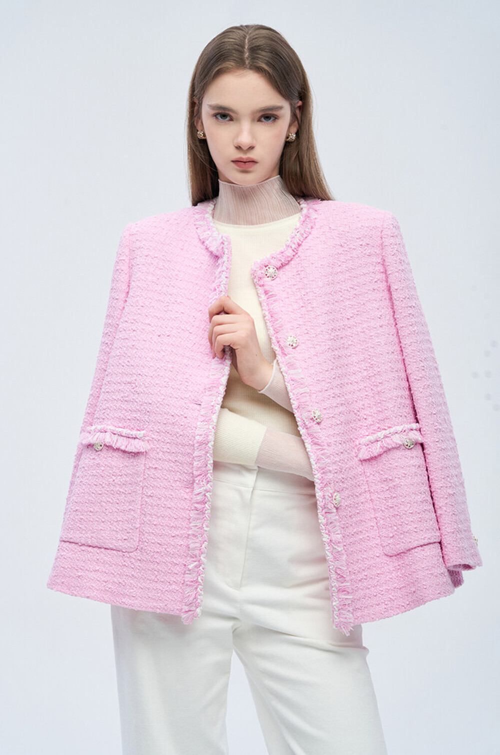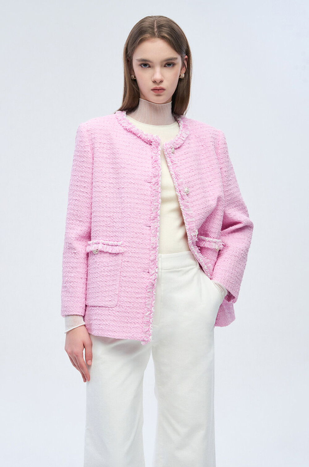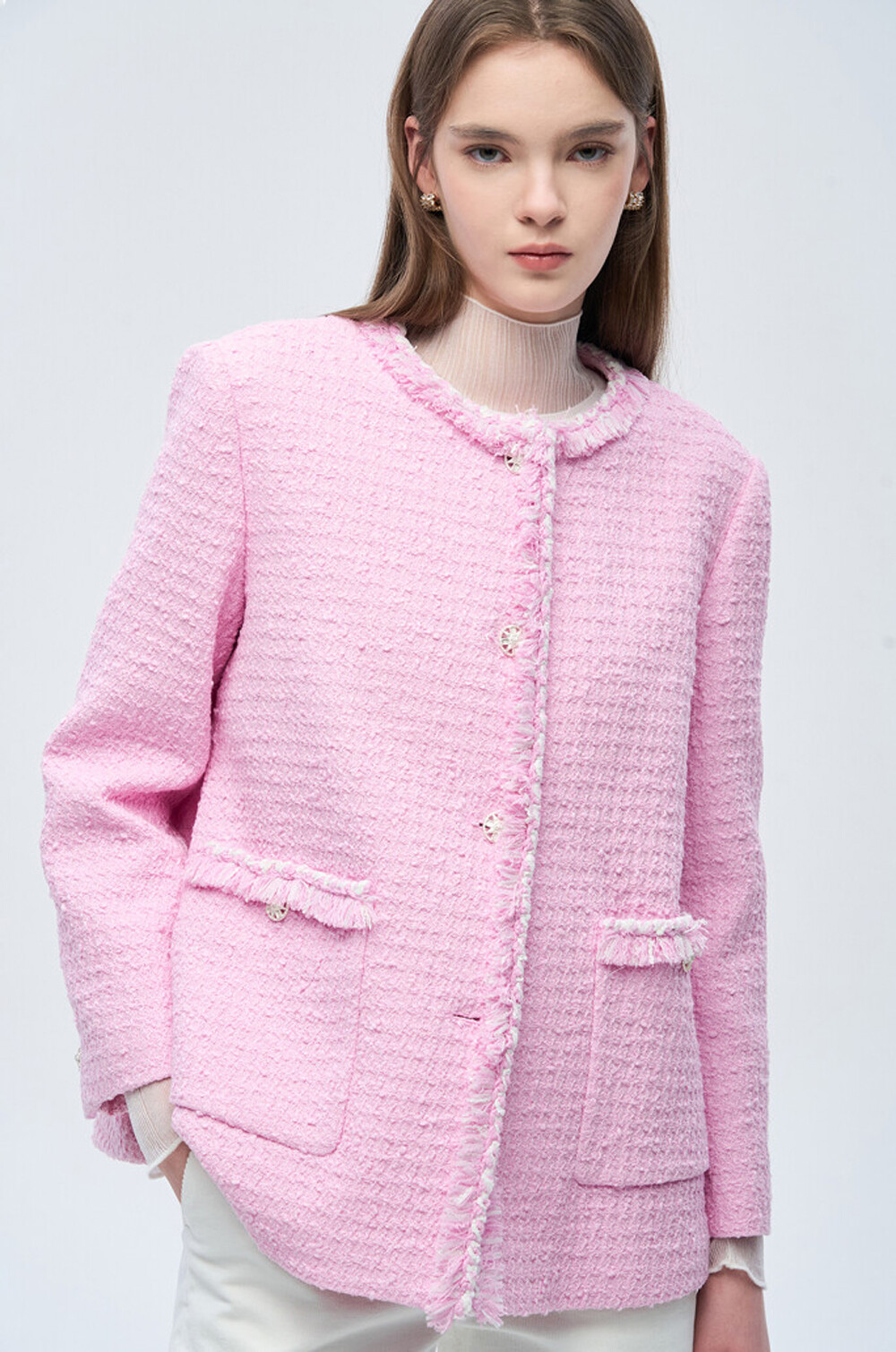 면 혼방 부클 칼라리스 자켓으로,