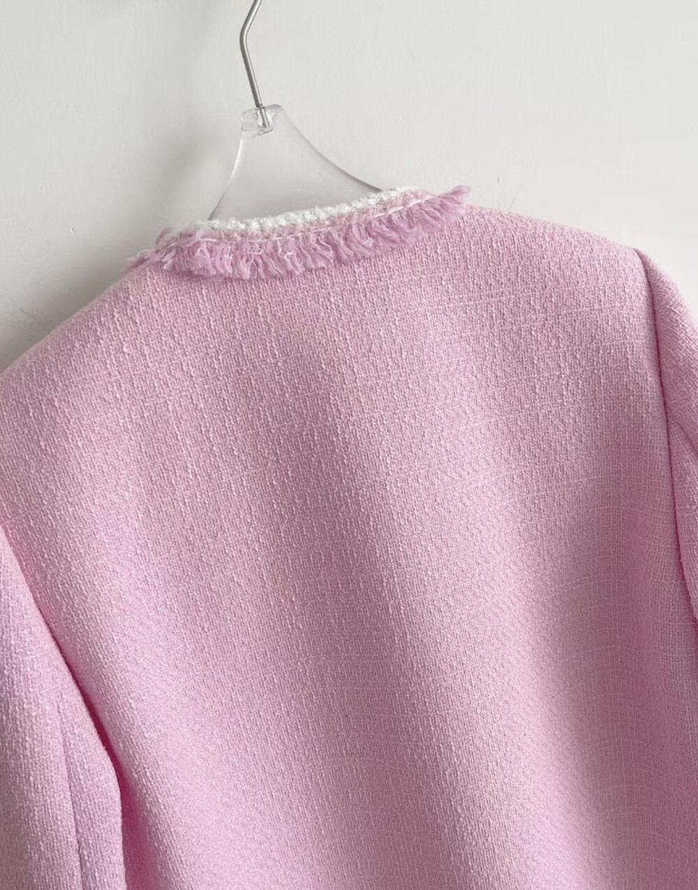 오브제 부클 프린지 칼라리스 자켓