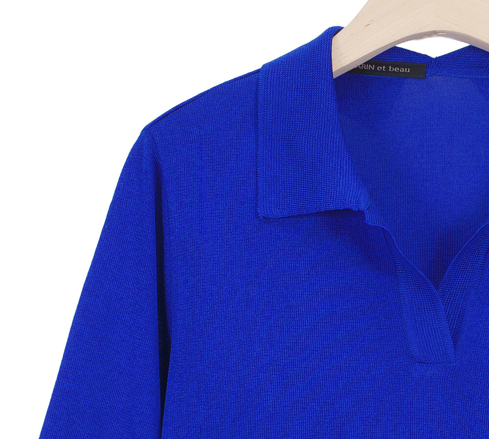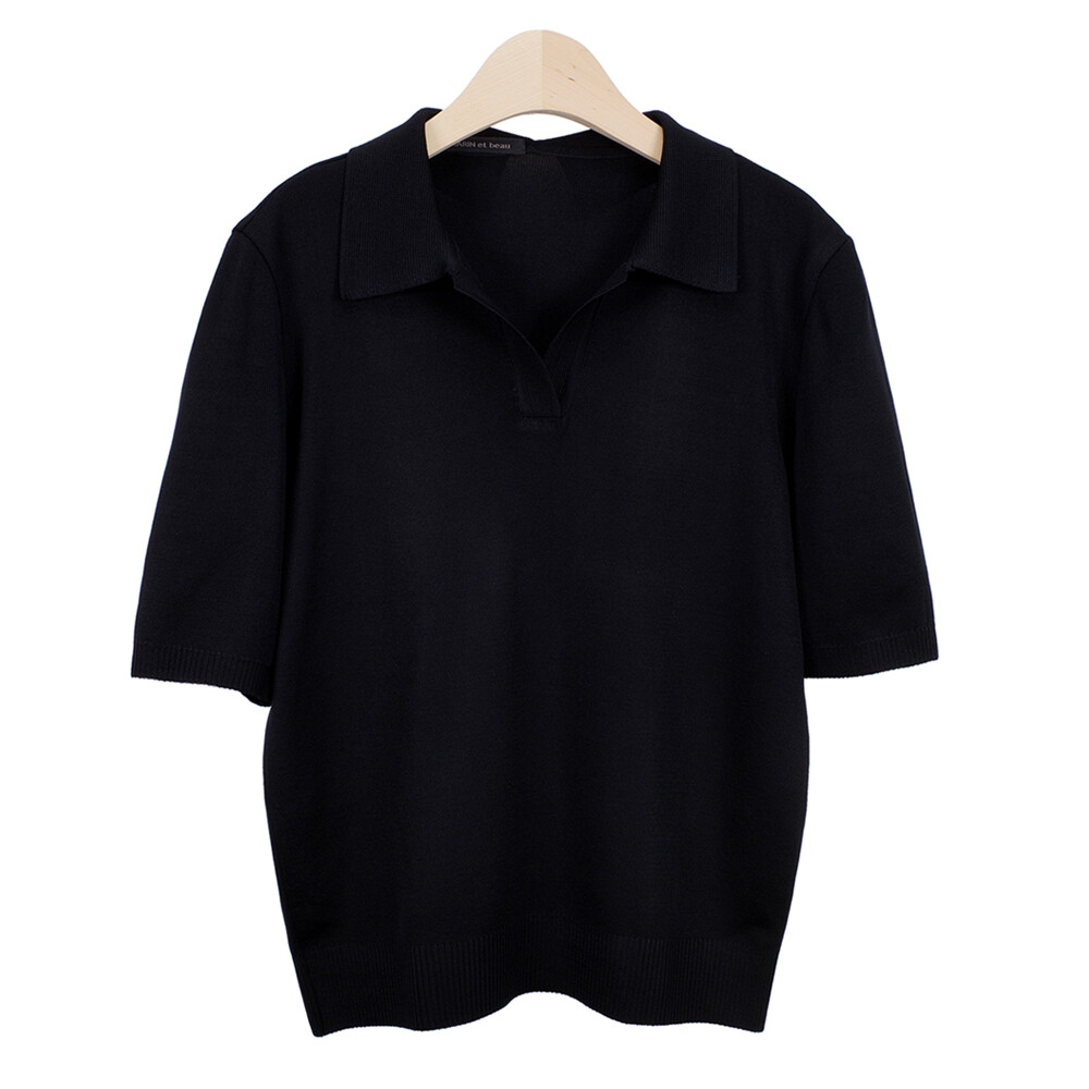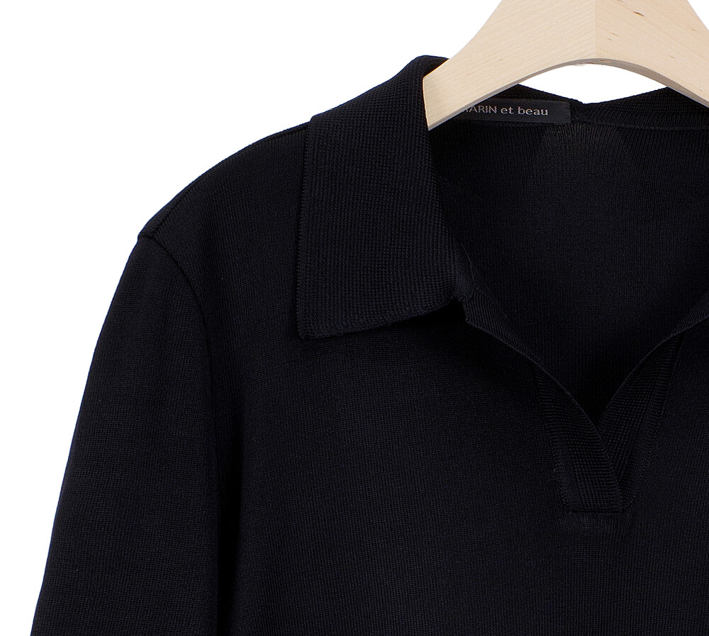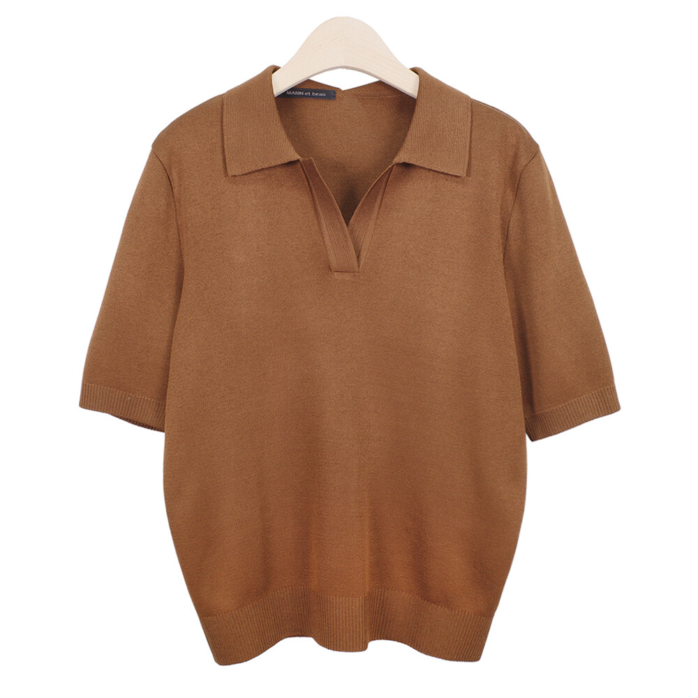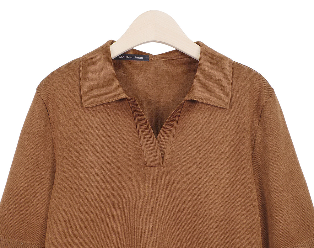 MARIN et beau. Notch Neck Collar Half Sleeve Top