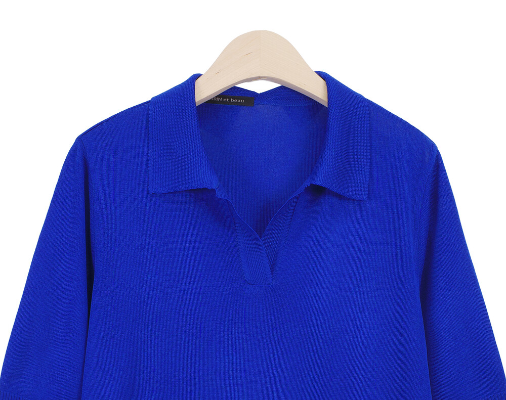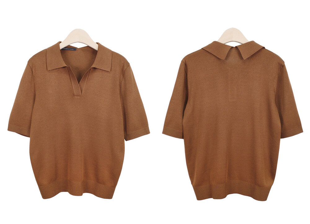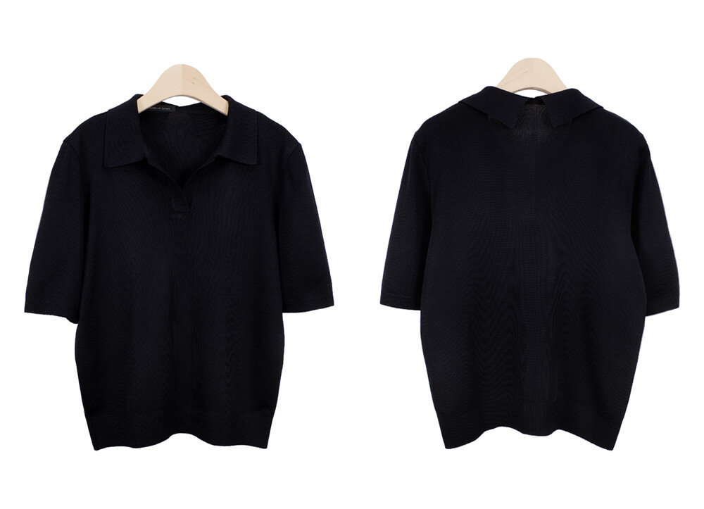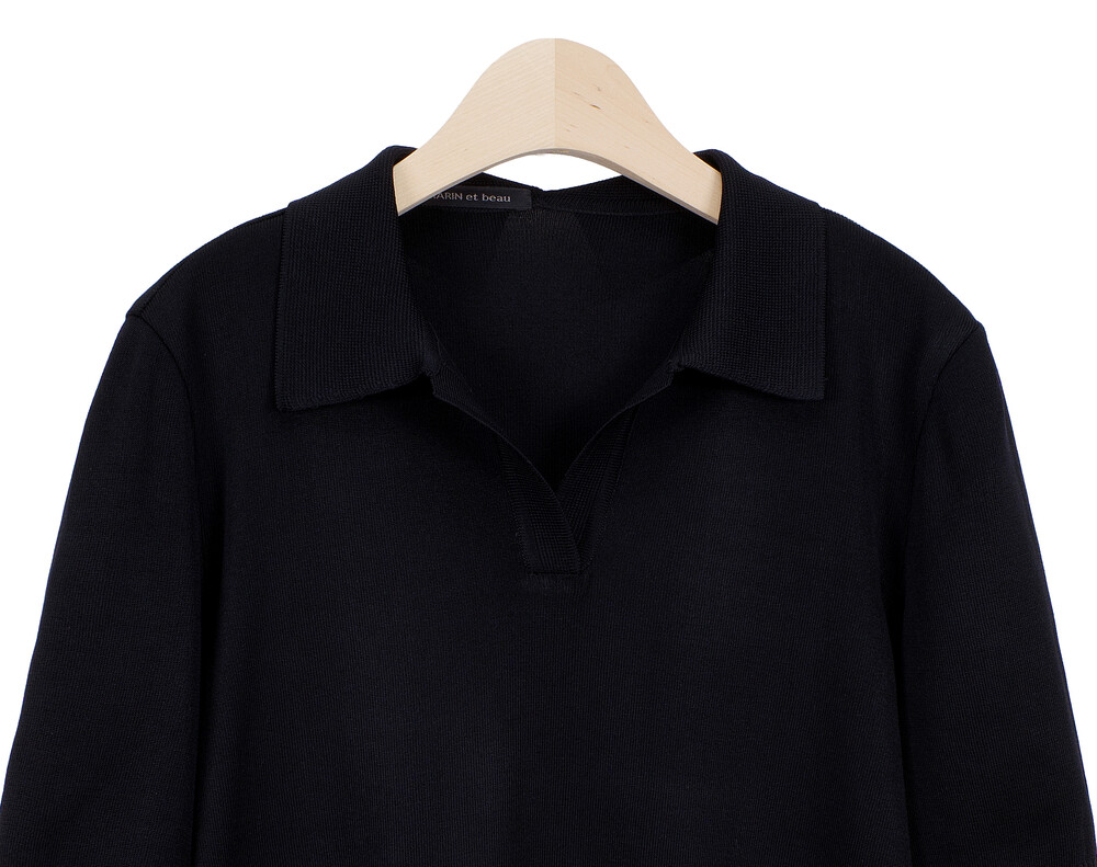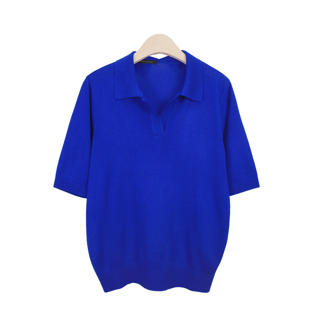 MARIN et beau. Notch Neck Collar Half Sleeve Top