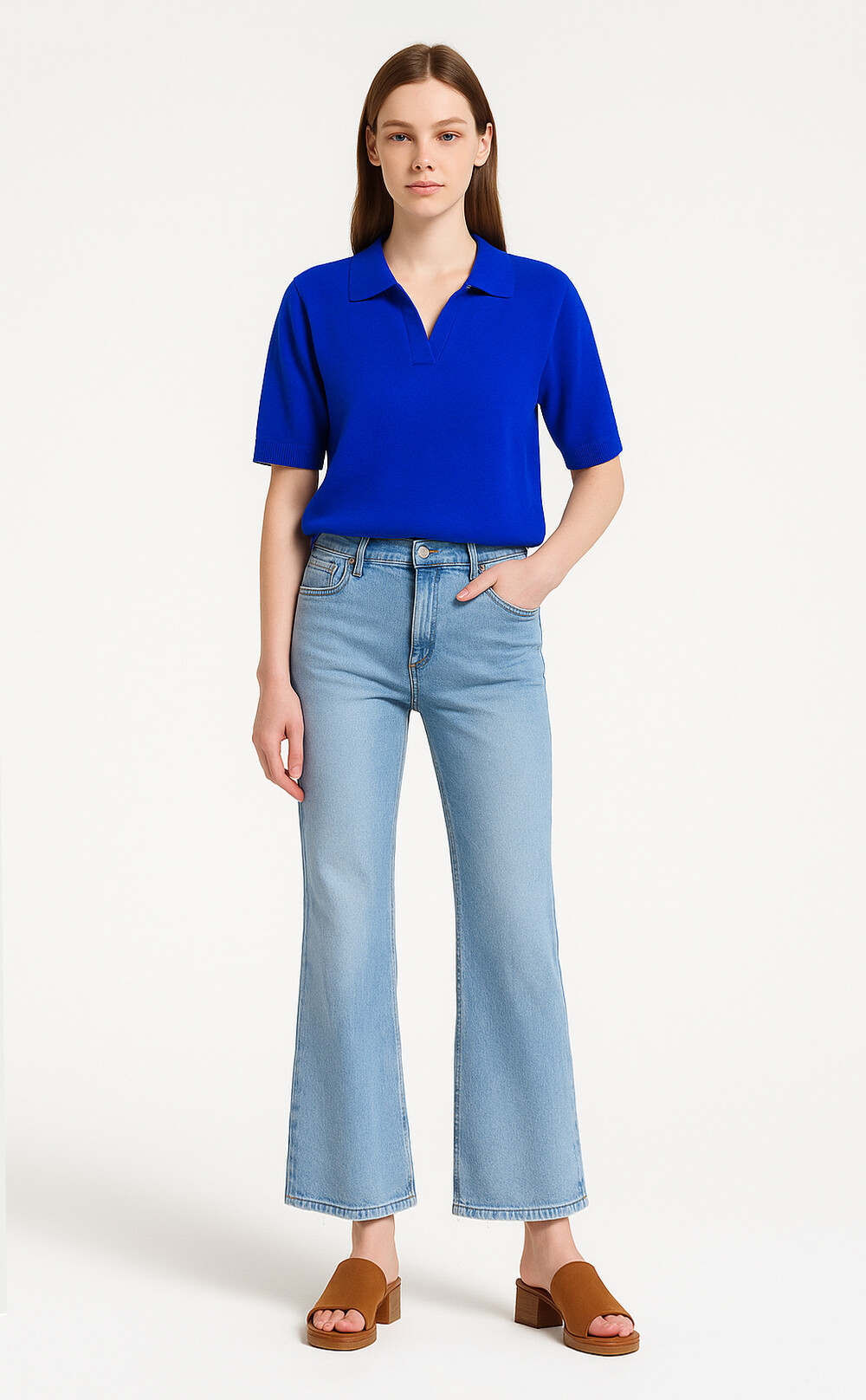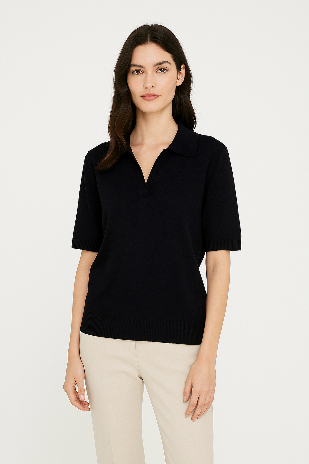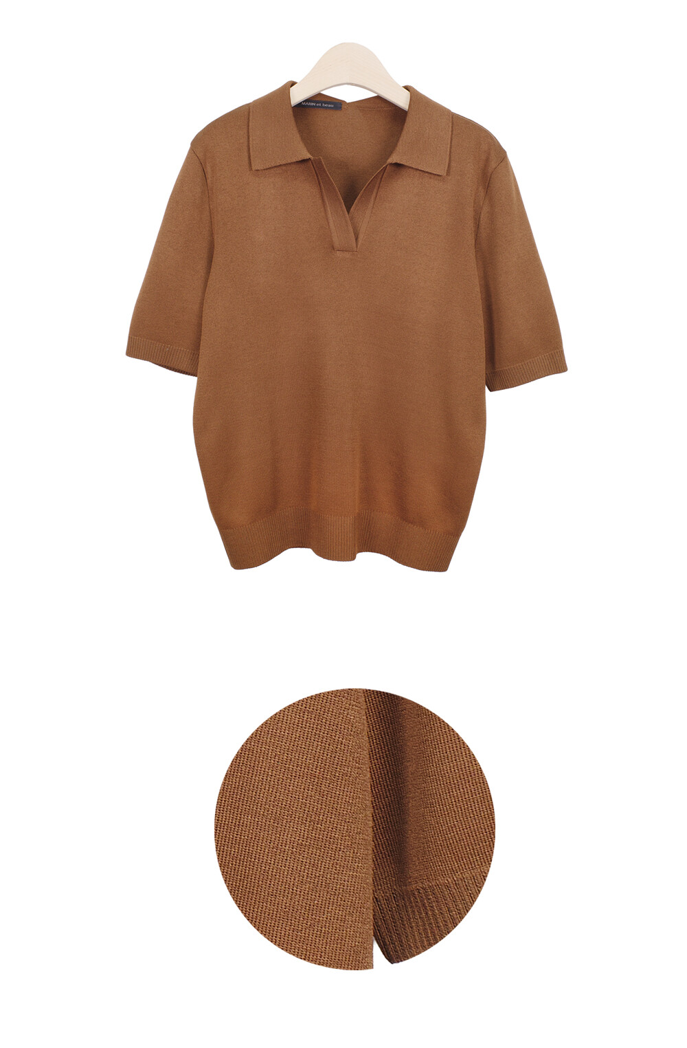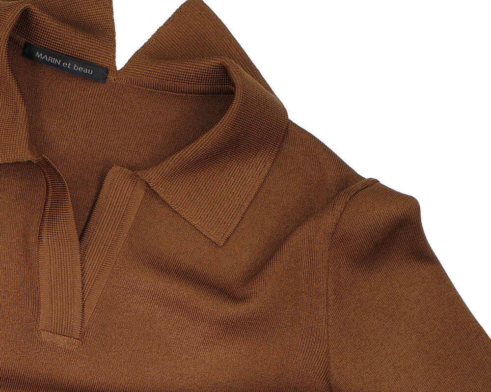 MARIN et beau. Notch Neck Collar Half Sleeve Top