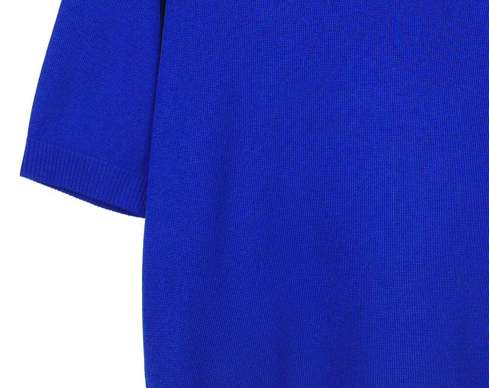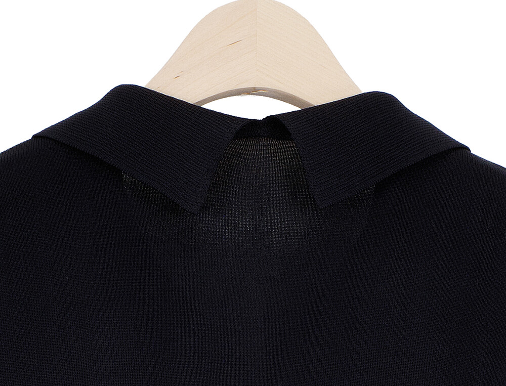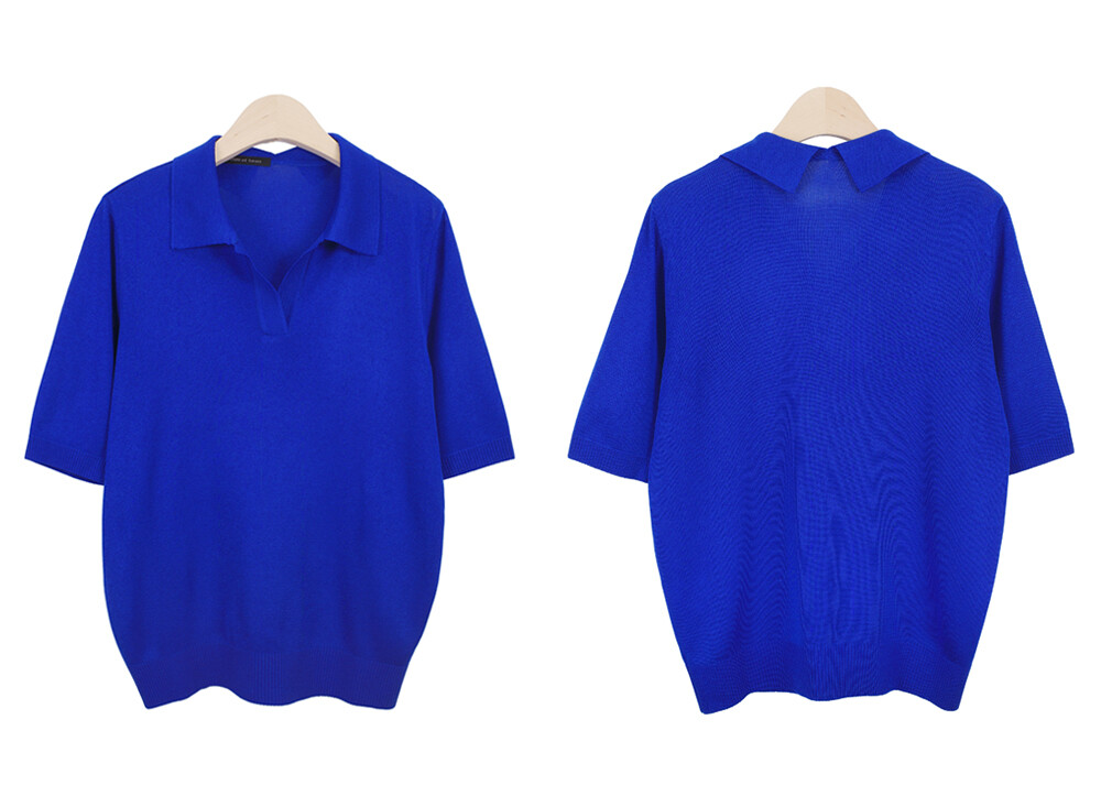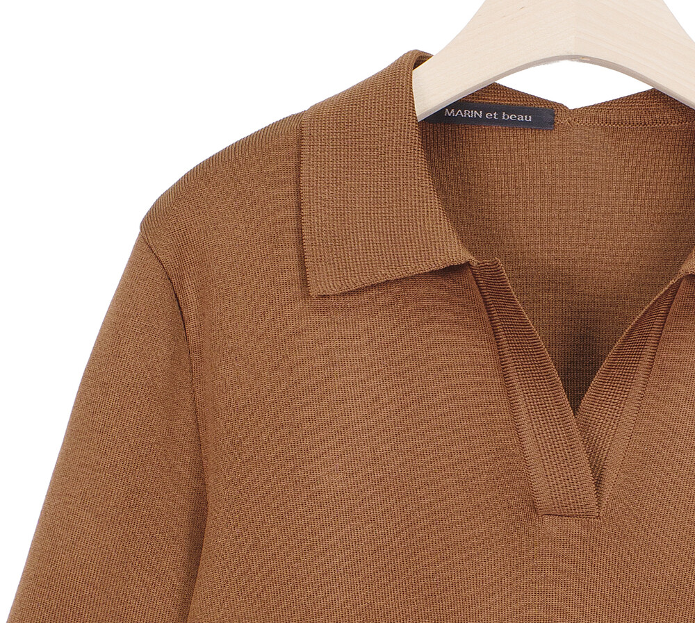 마린엣보우. 노치넥 칼라 하프 슬리브 니트 탑