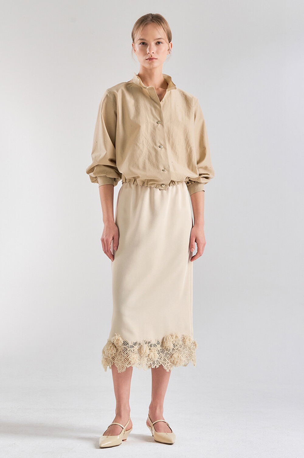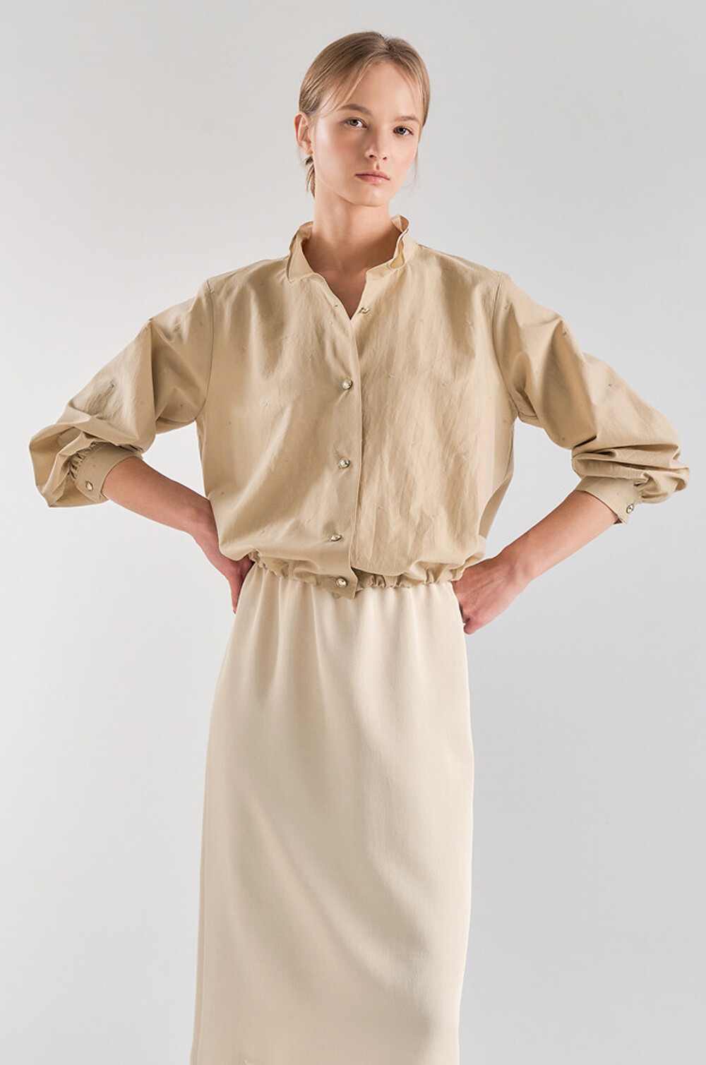- 소맷단에 버튼 여밈