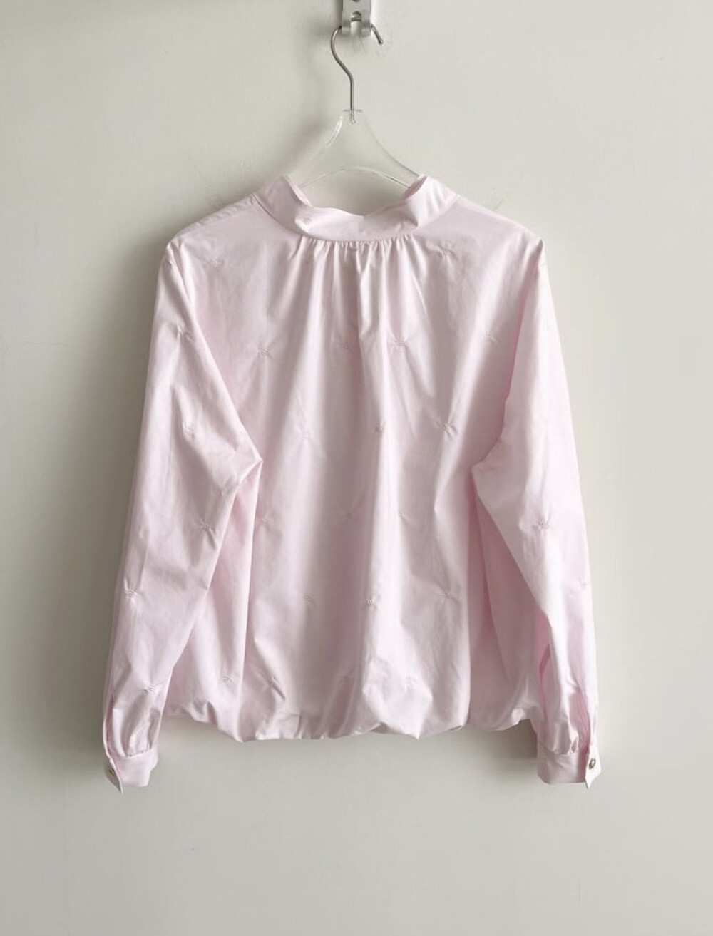 랑방컬렉션 실크 블렌드 도트 자수 모크넥 셔츠