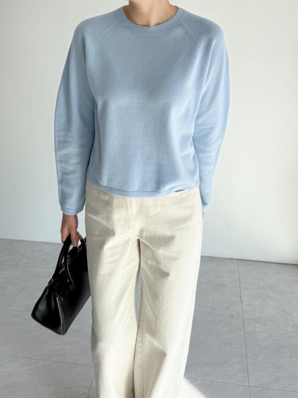 간결한 라운드넥과 둥근 벌룬 슬리브가