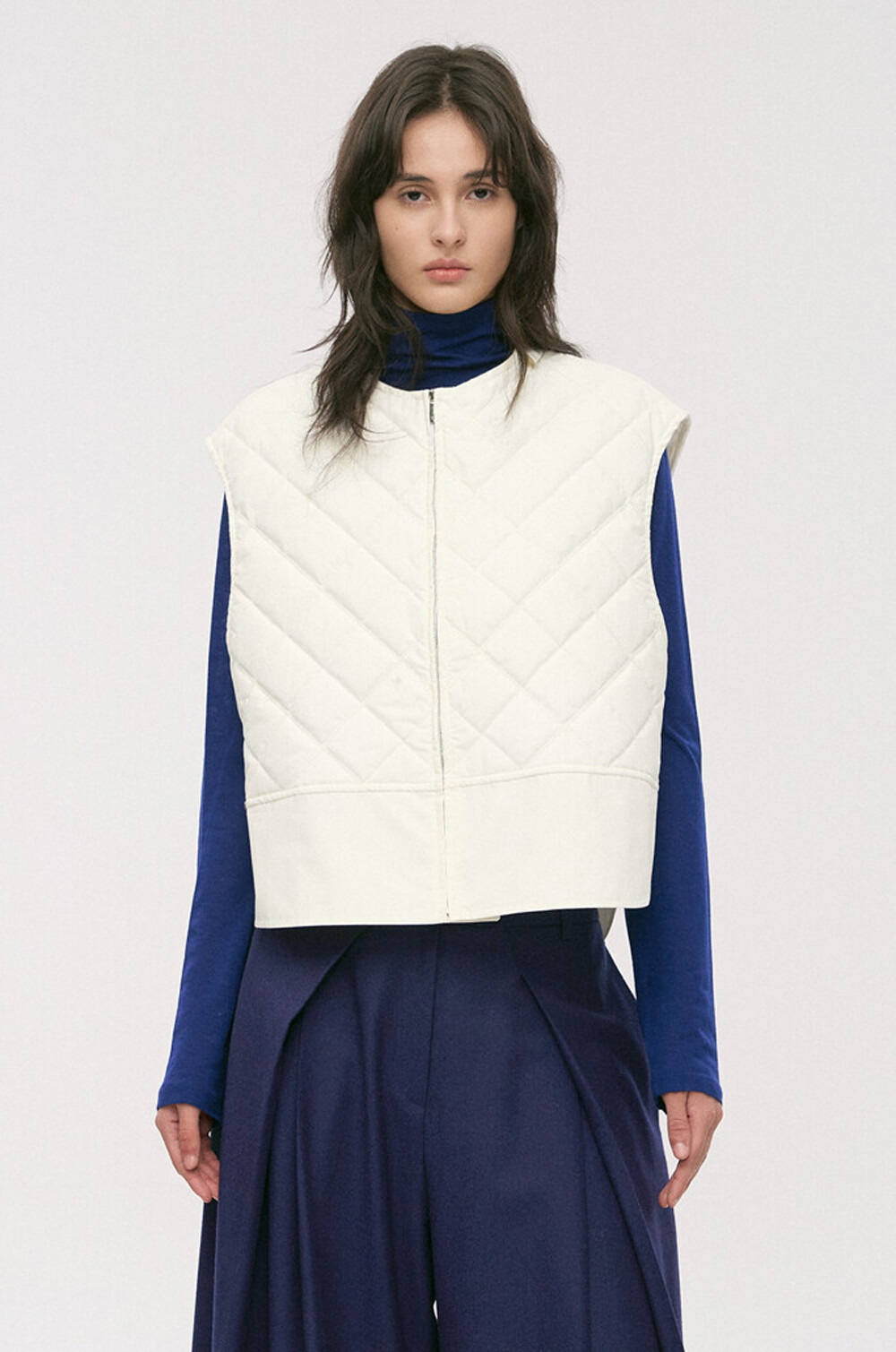 타임 크롭 데님 자켓 & 퀼티드 집업 패딩 베스트