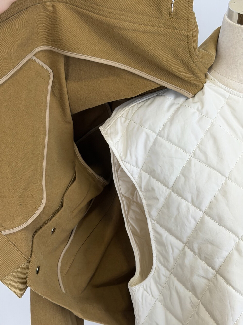TIME. Crop Denim Jacket & Quilted Zip Up Padding Vest
