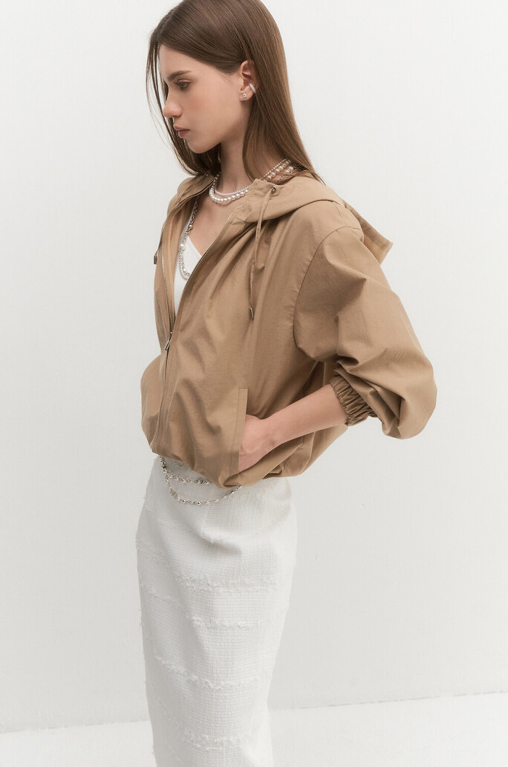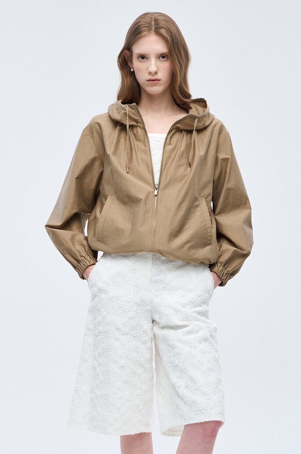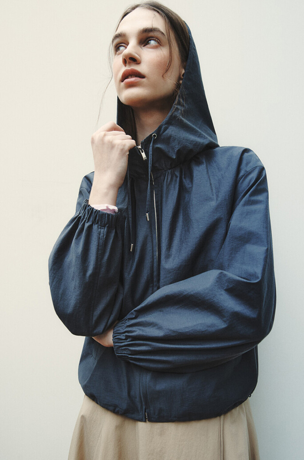 오브제 후드 드로우스트링 집업 점퍼