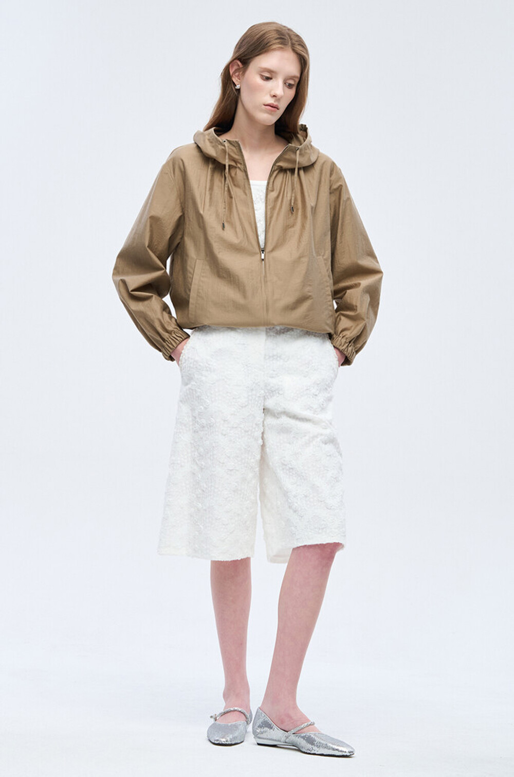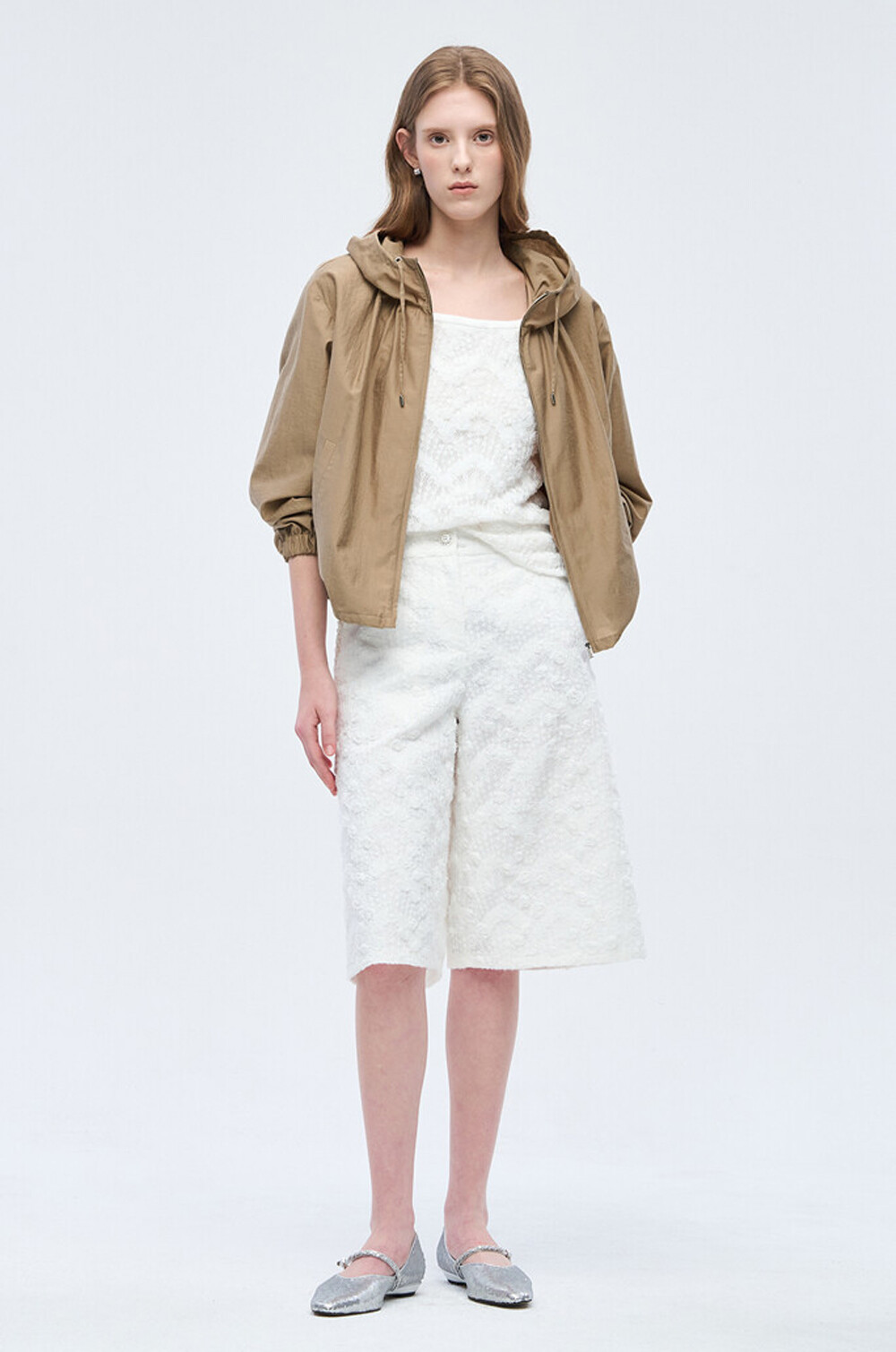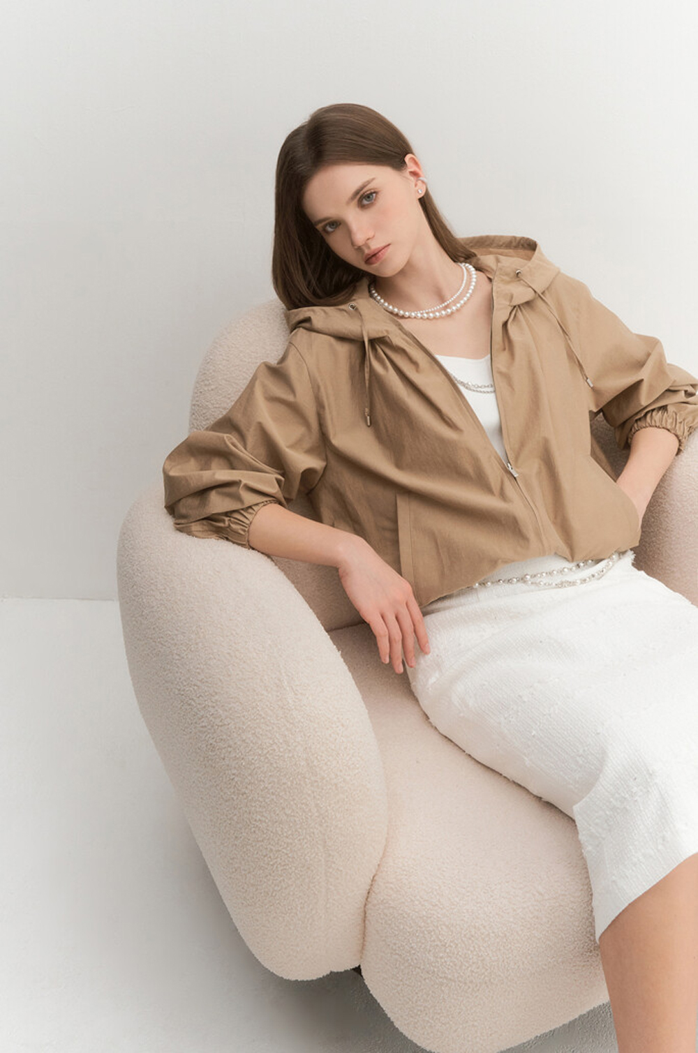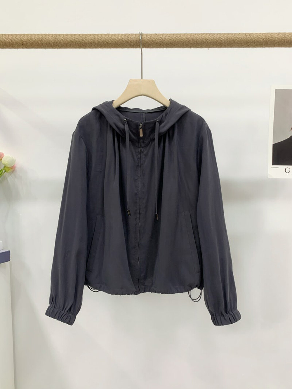 오브제 후드 드로우스트링 집업 점퍼