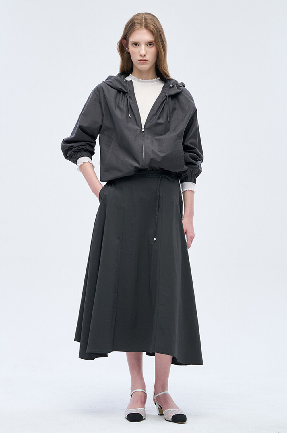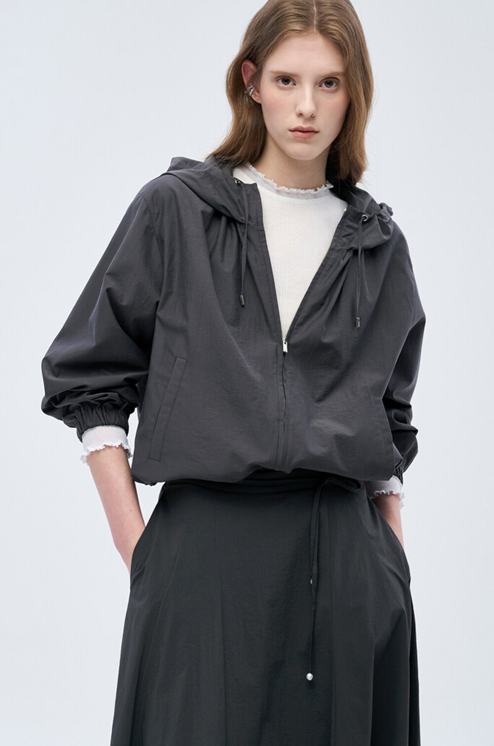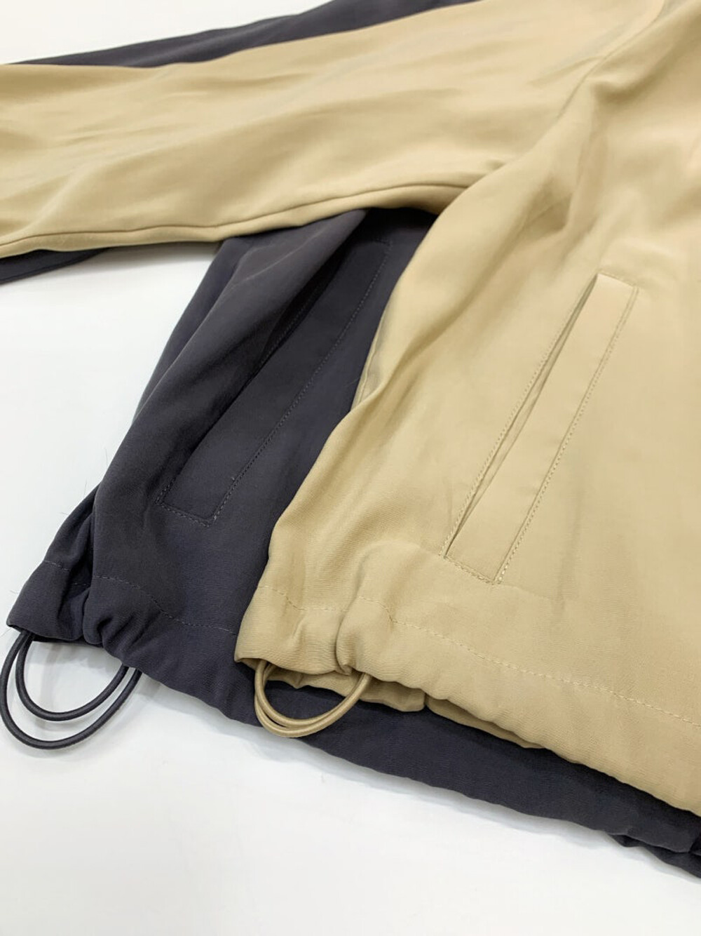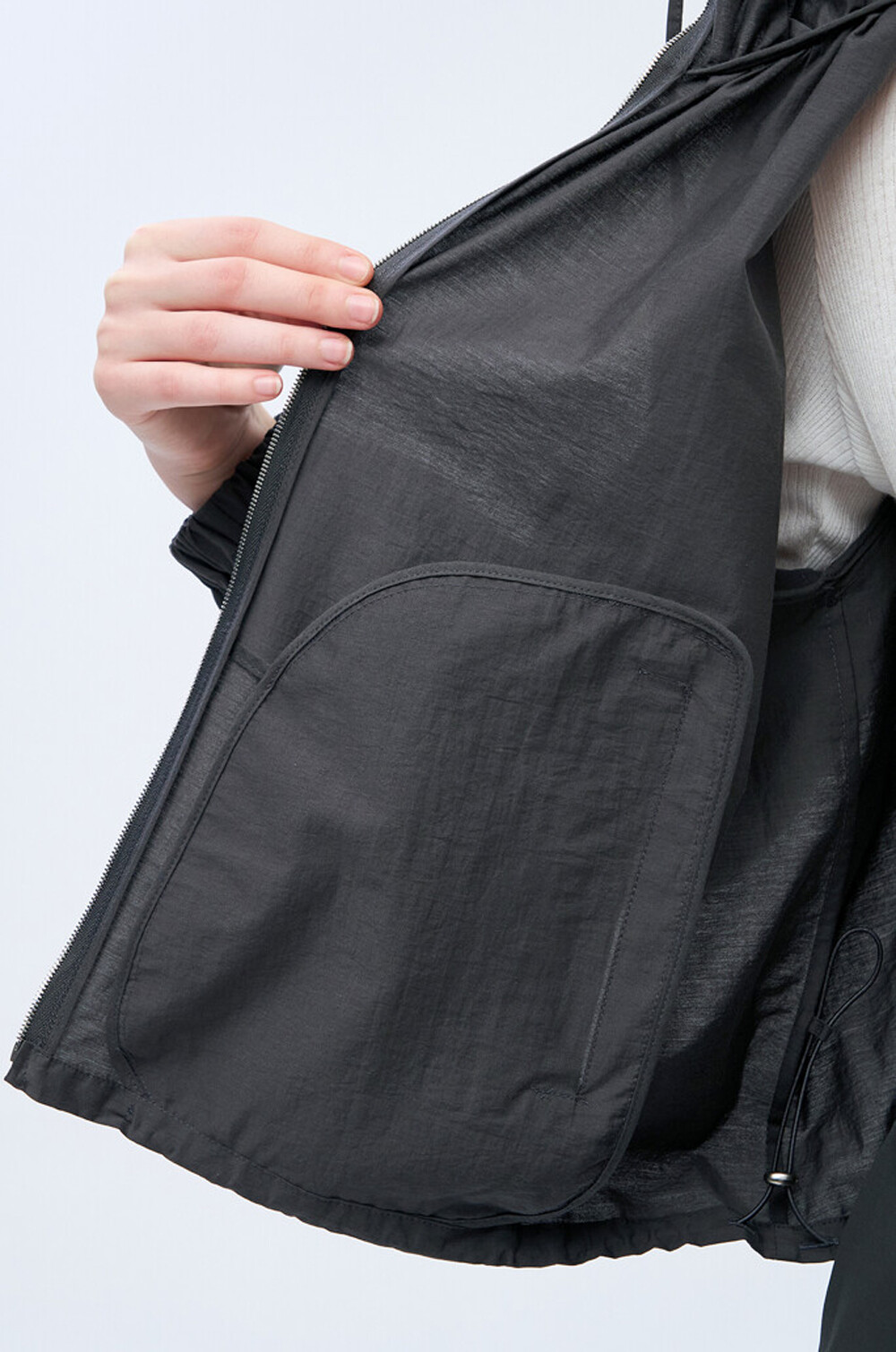 - 후드와 밑단 내부 양옆에 드로우스트링