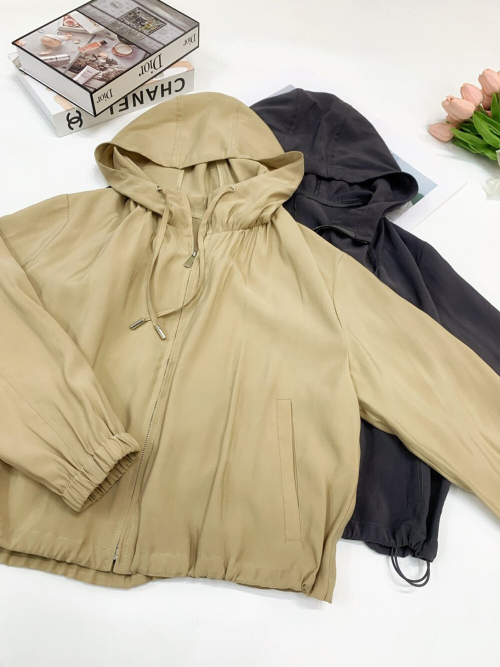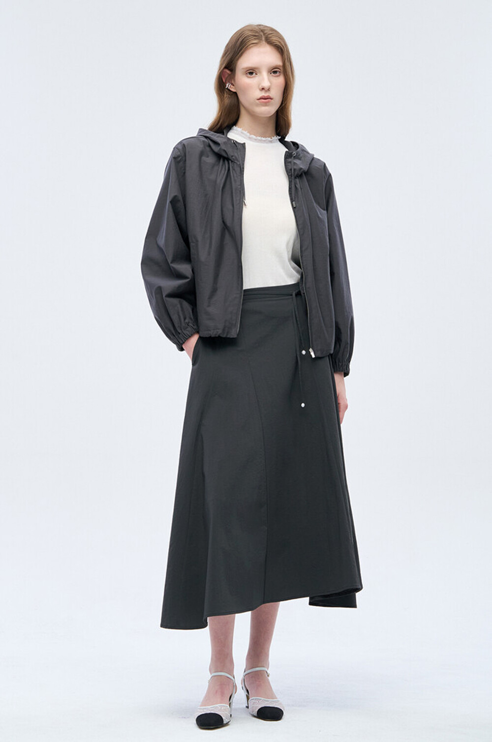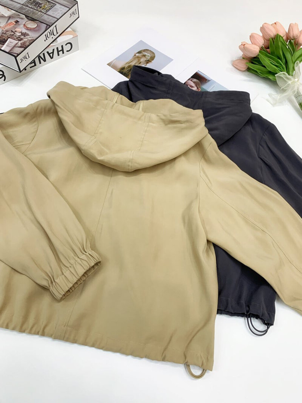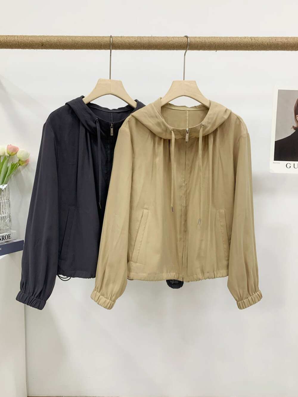 - 후드와 밑단 내부 양옆에 드로우스트링