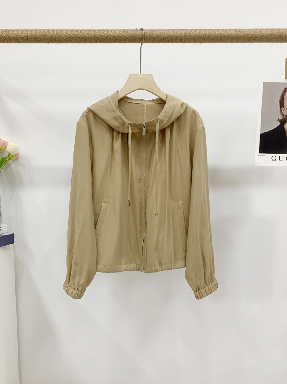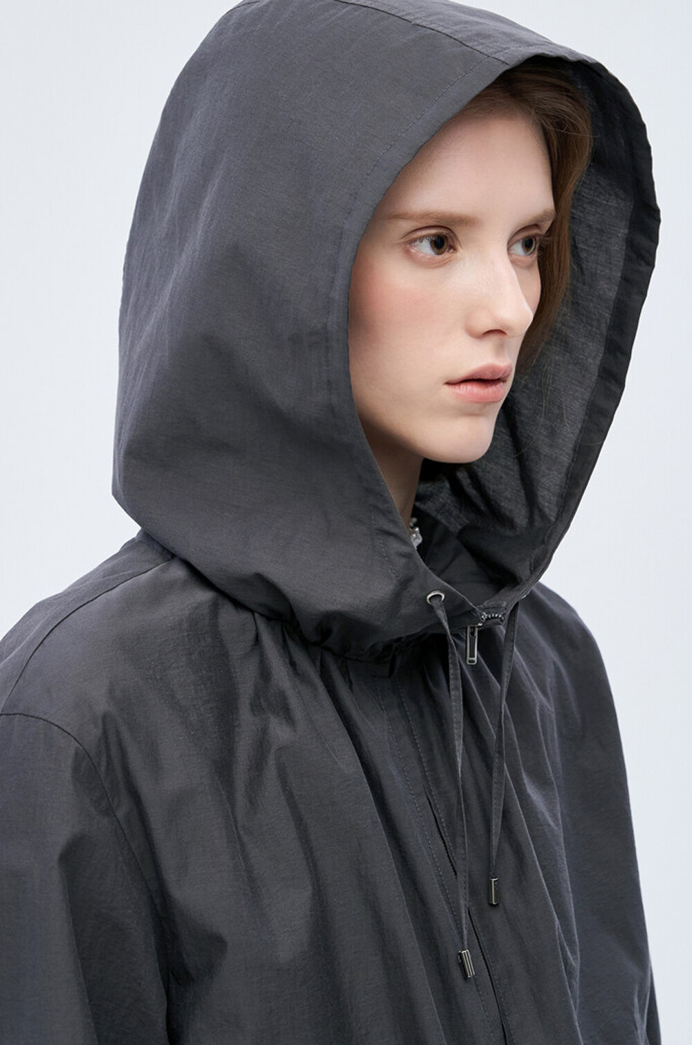 후드와 드로우스트링 디테일로