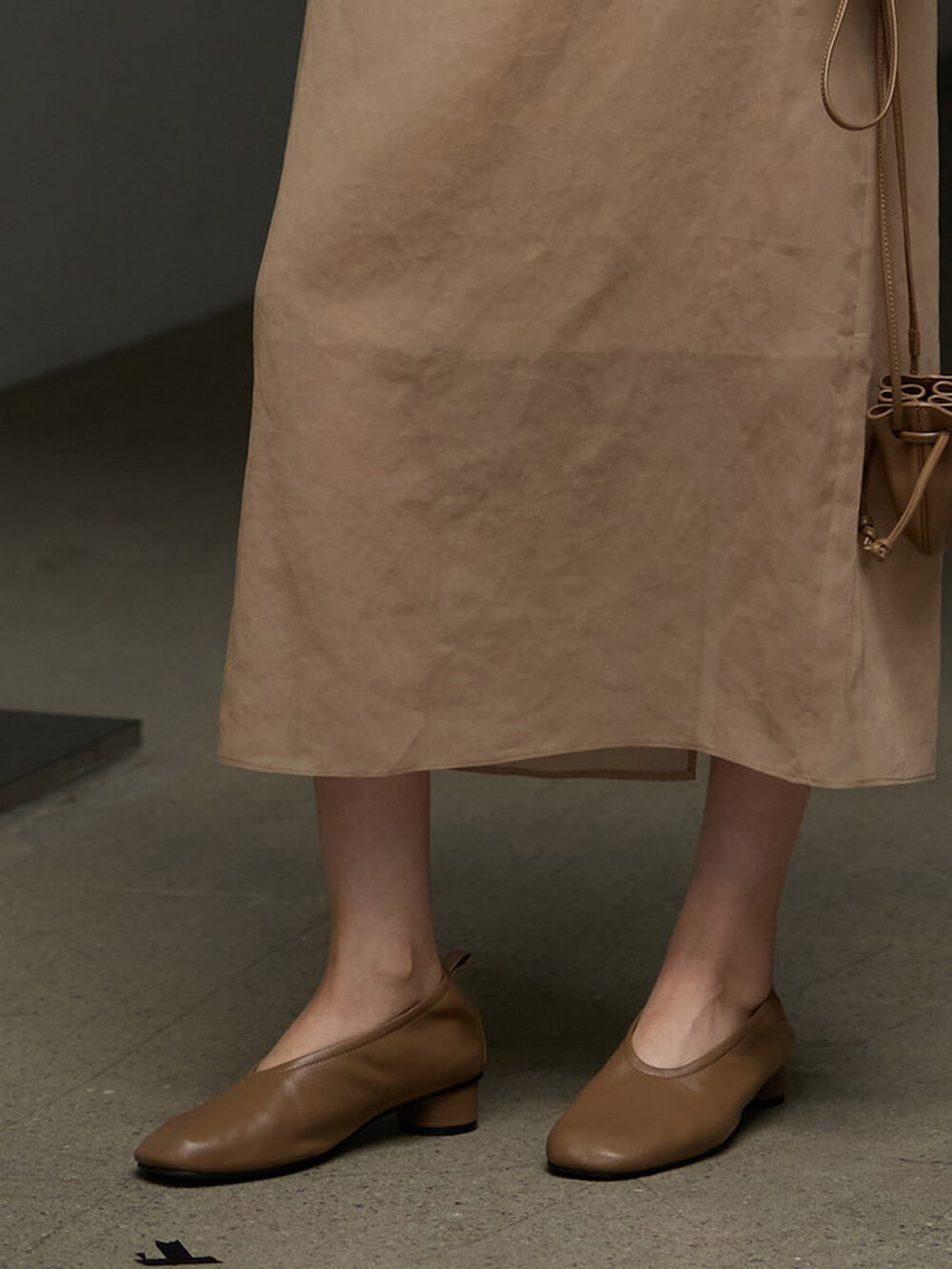 구호 라운드 토 램스킨 스판덱스 펌프스