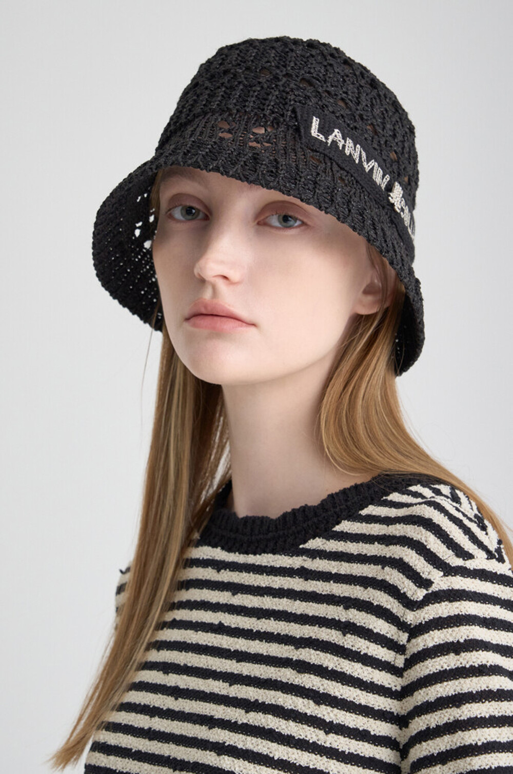 랑방컬렉션 글리터 크로셰 라피아 버킷 햇