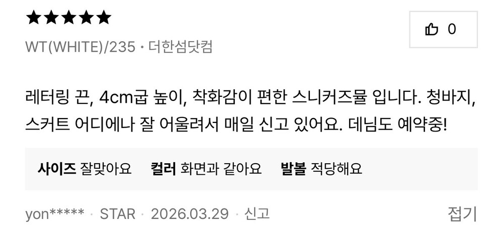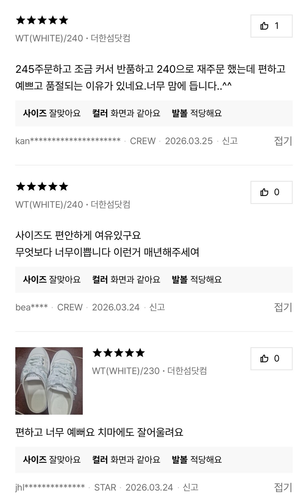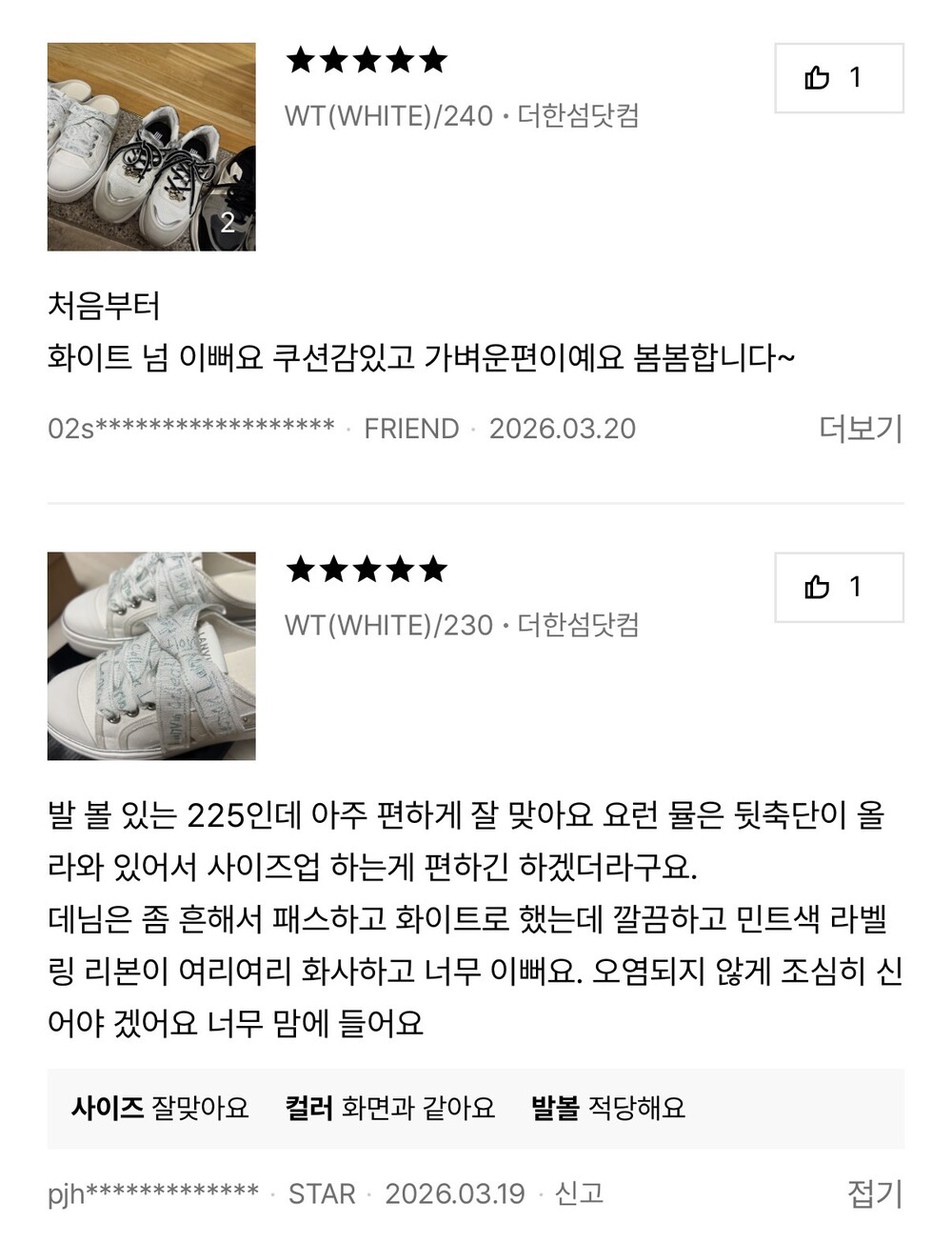 갑피 : 면 68%, 폴리에스터 32%(WT)