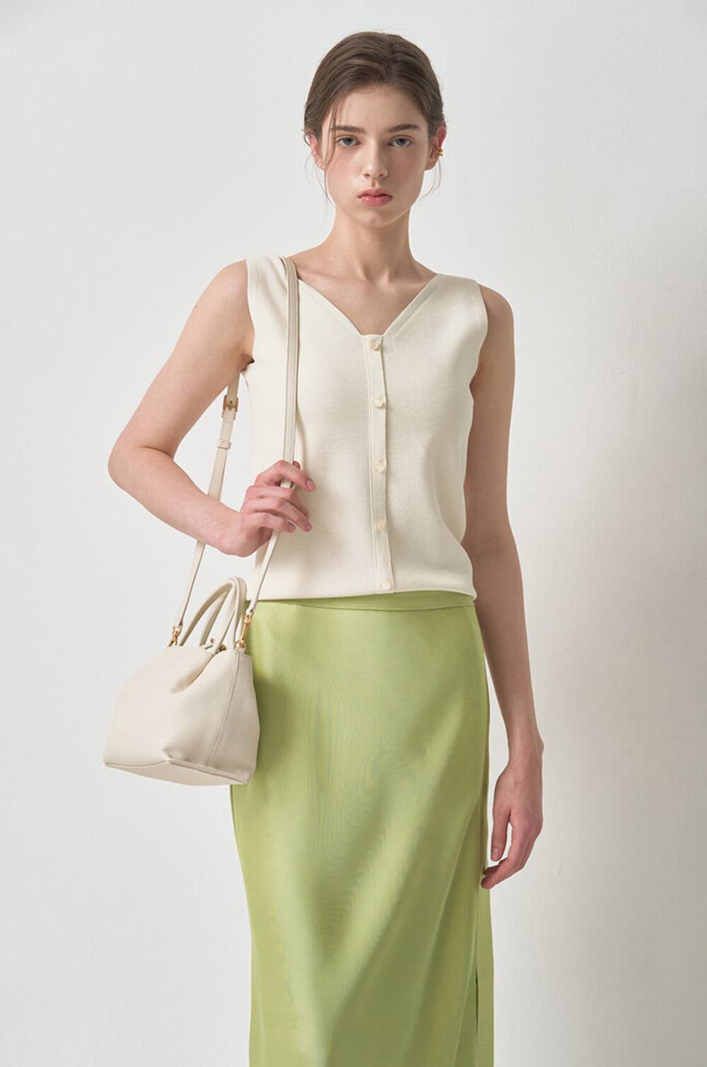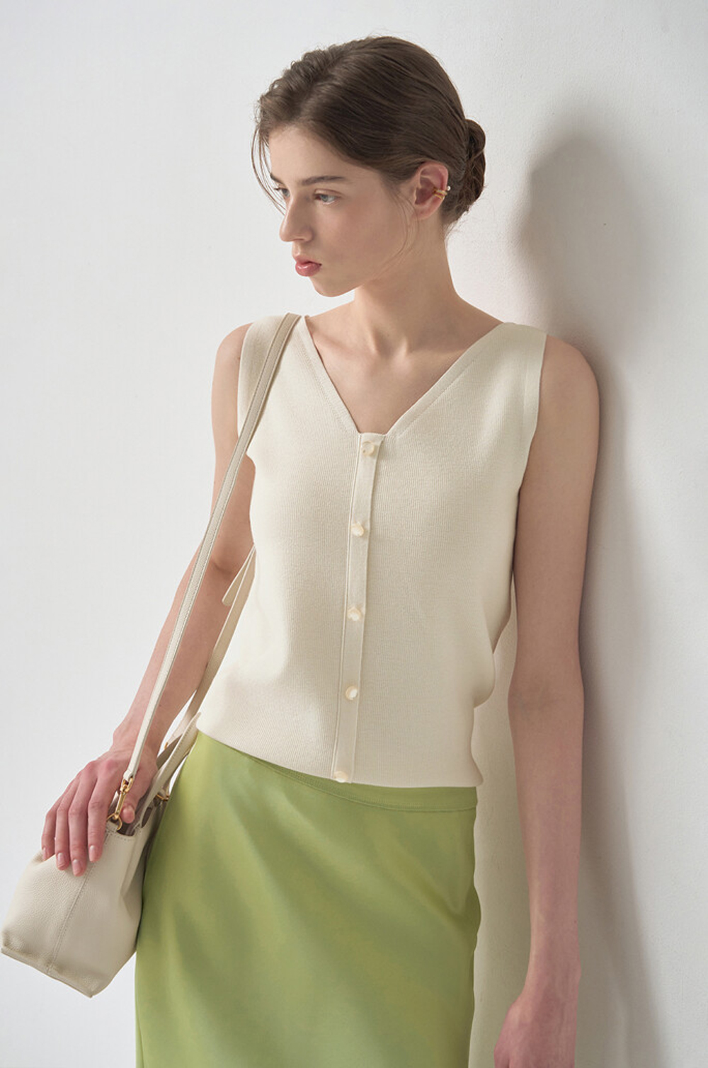 마인 울 블렌드 투웨이 슬리브리스 니트 탑