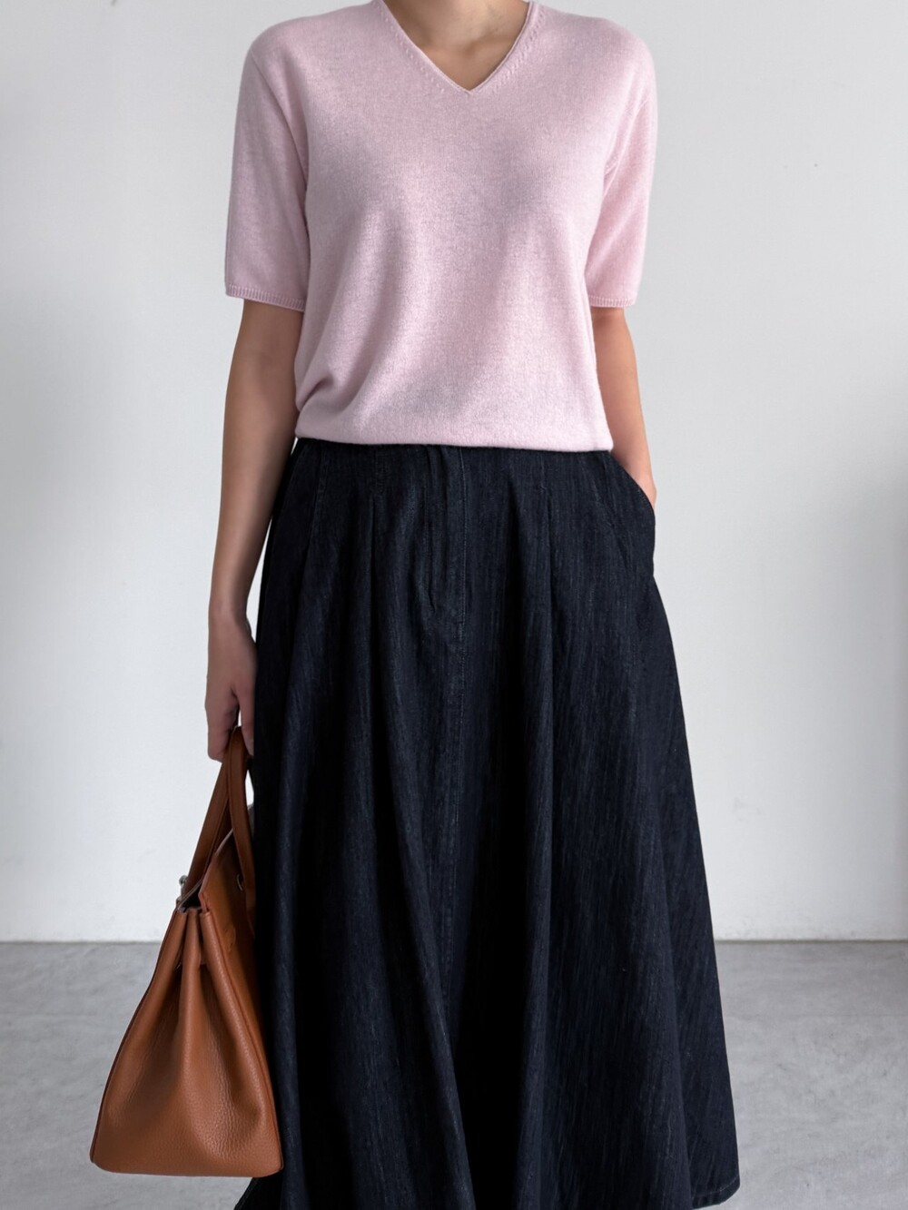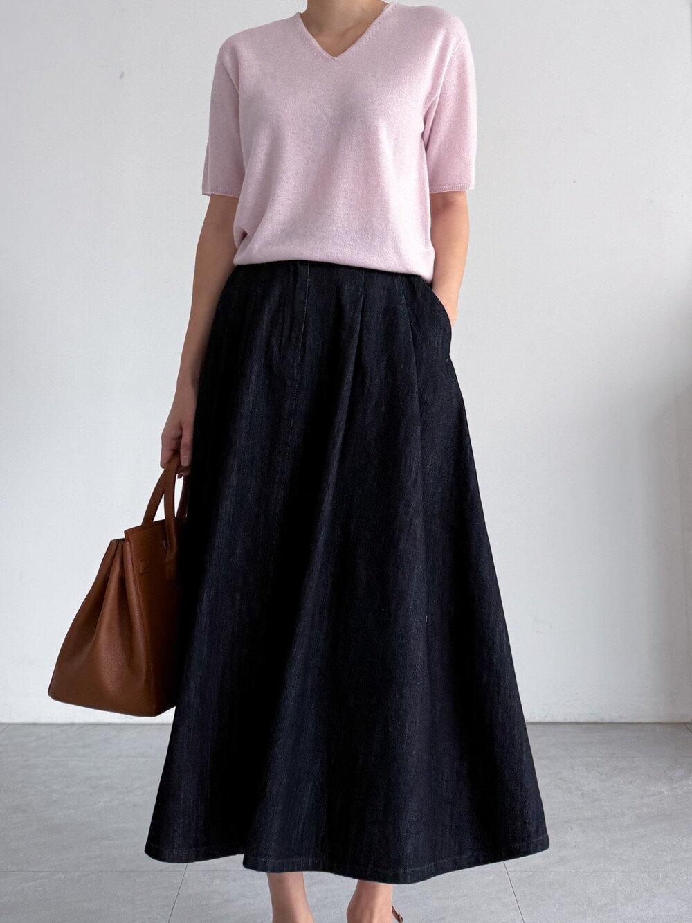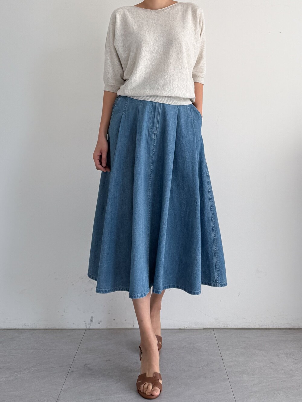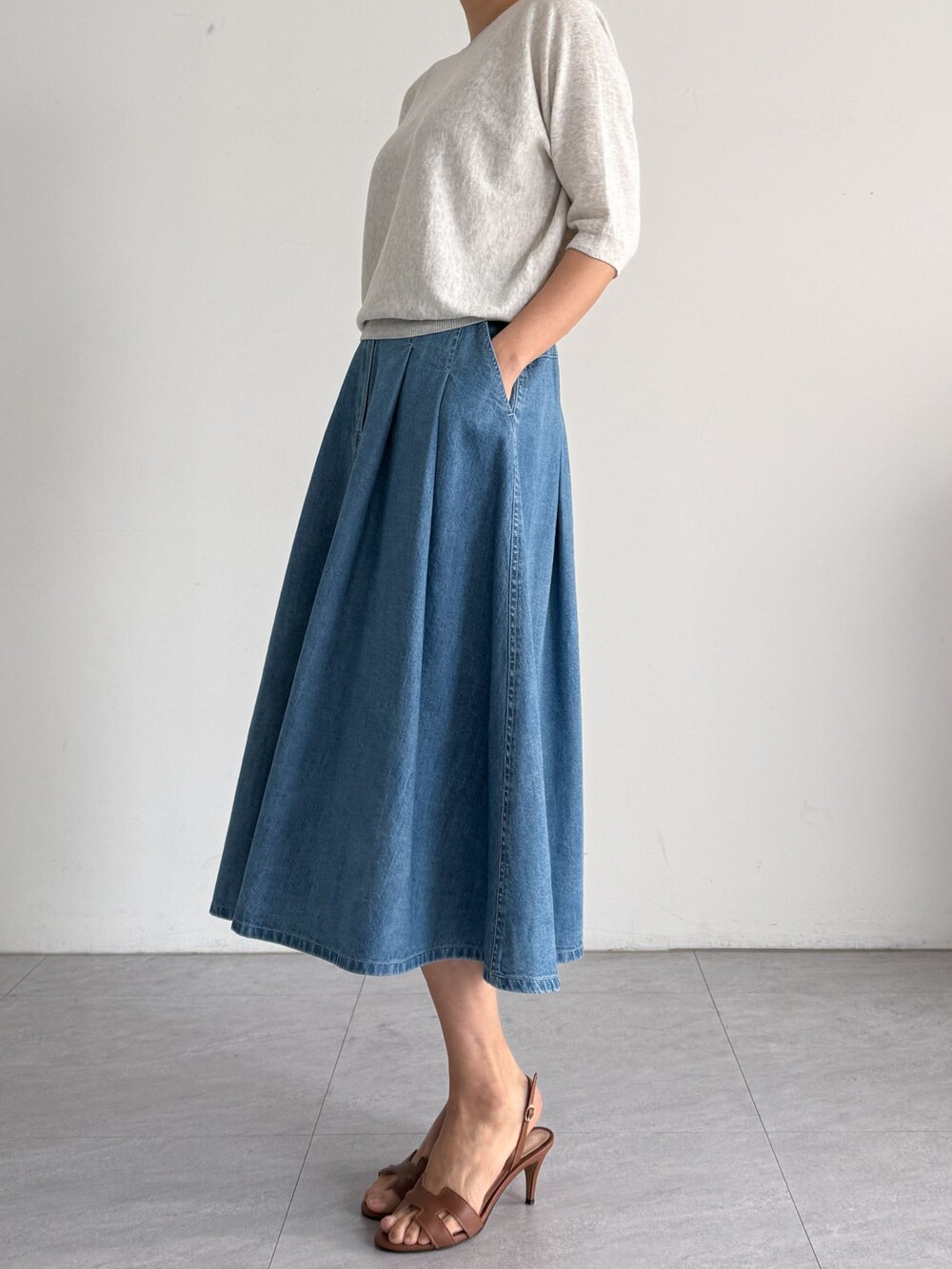 핀턱 데님 플레어 스커트