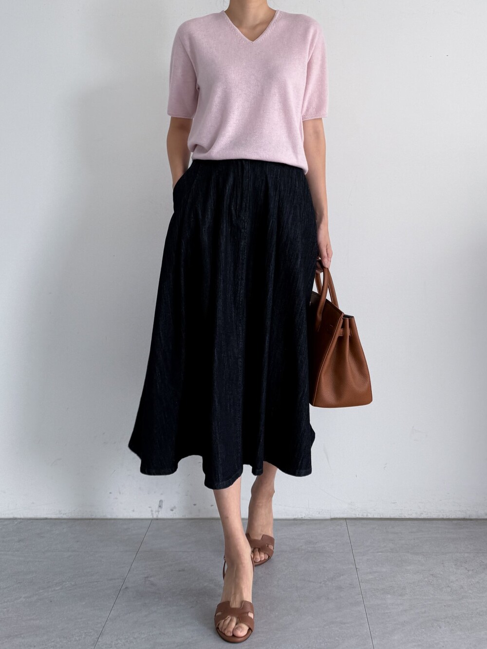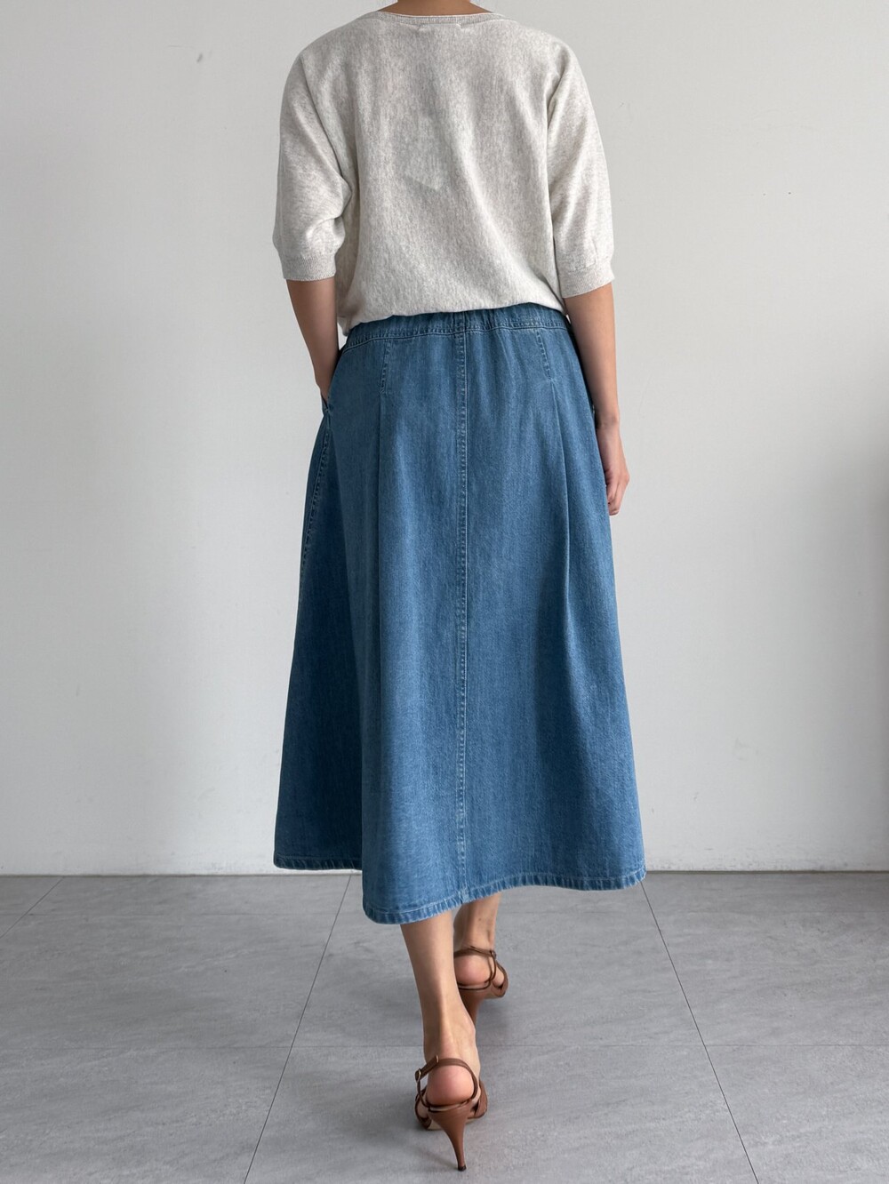 플레어 실루엣 데님 스커트입니다.