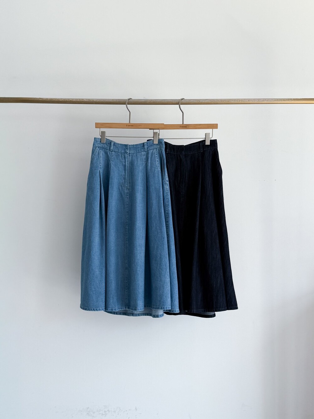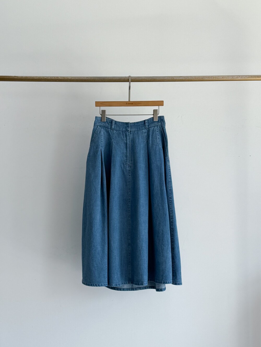 제이코코. 핀턱 데님 플레어 스커트