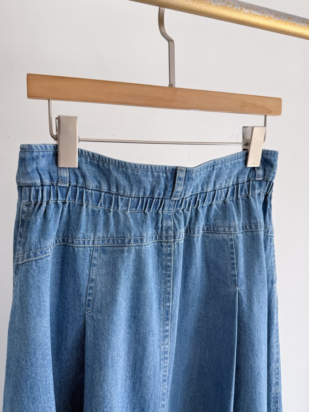 Pin Tuck Denim Flare Skirt
