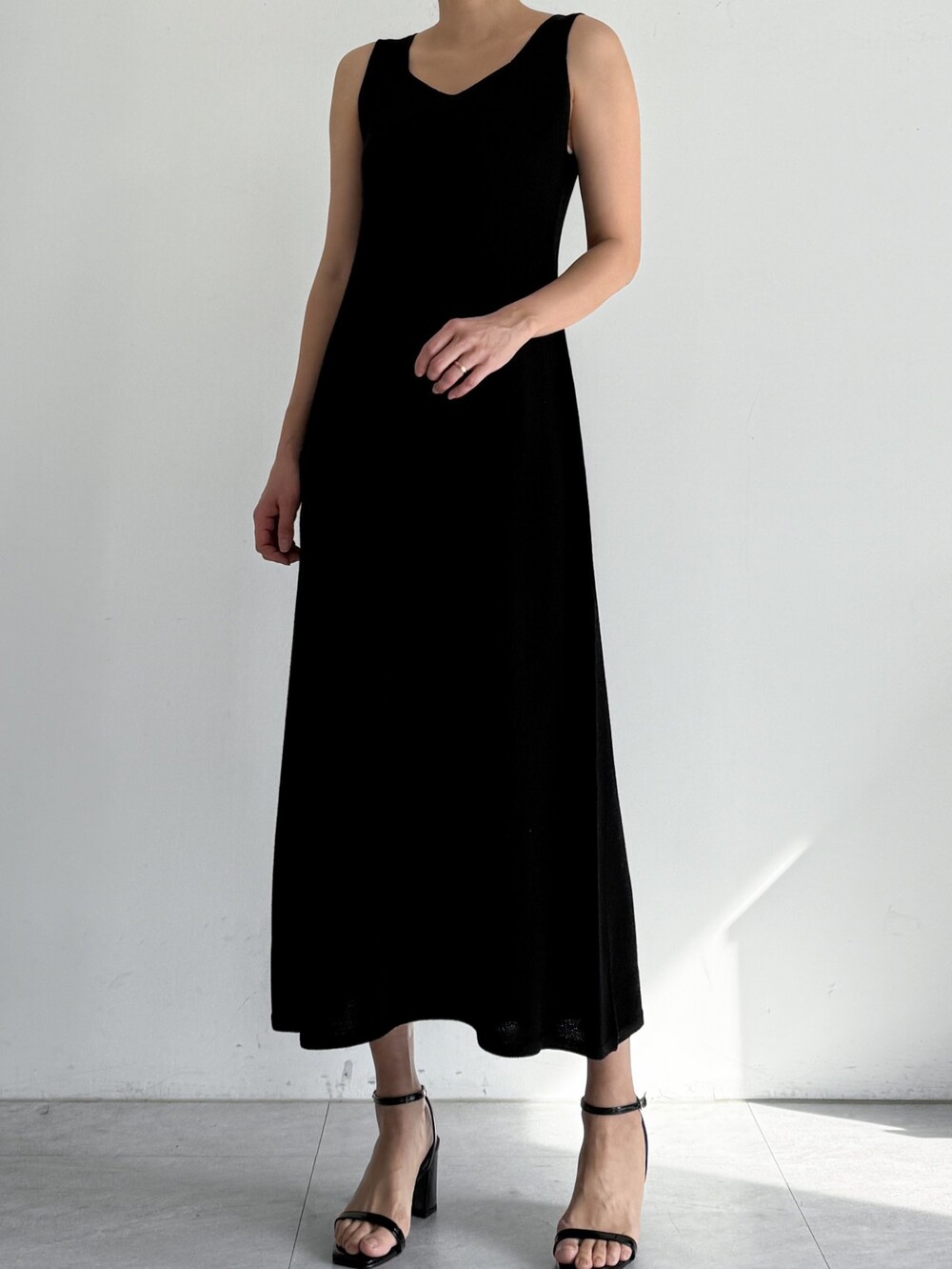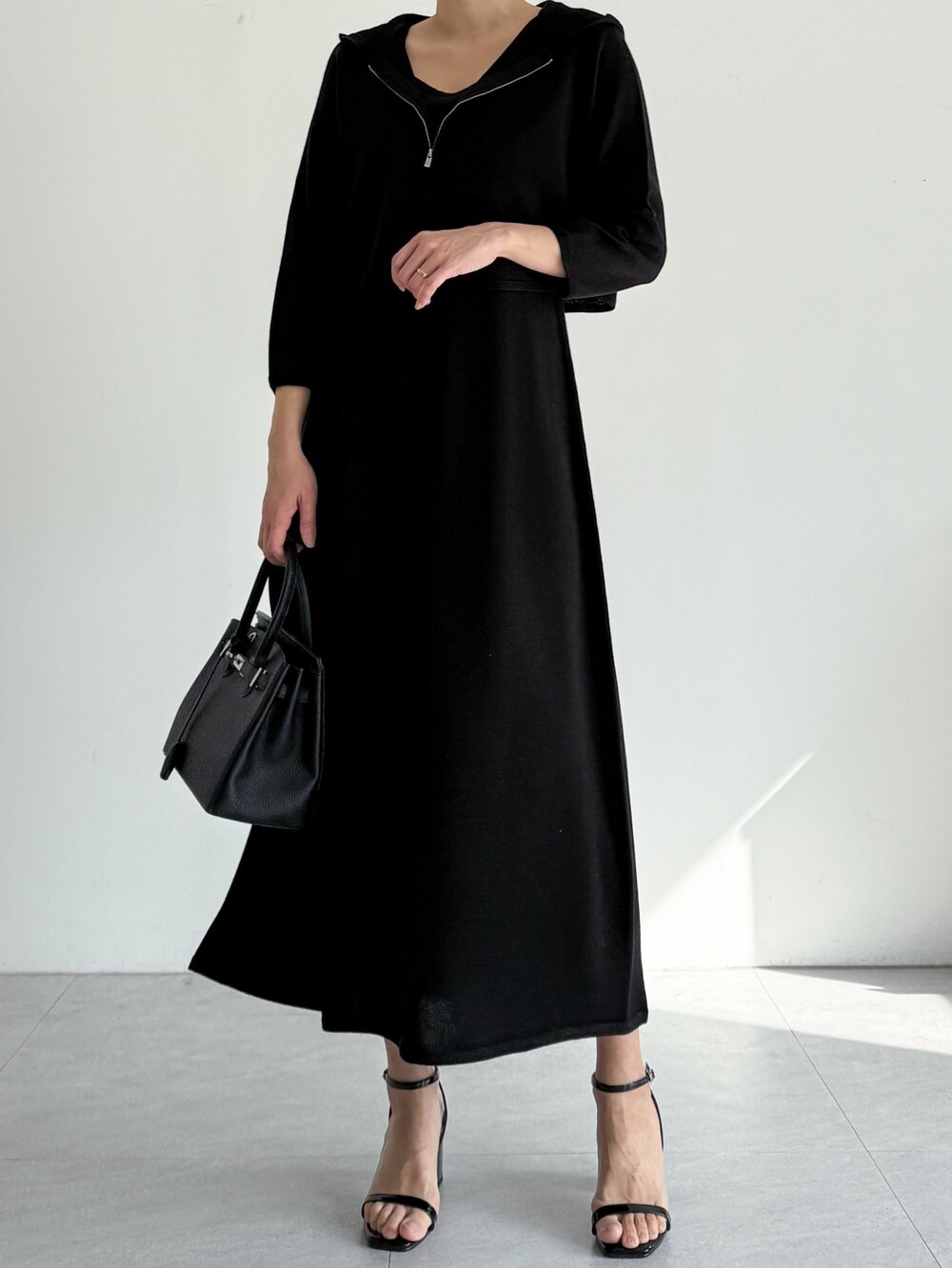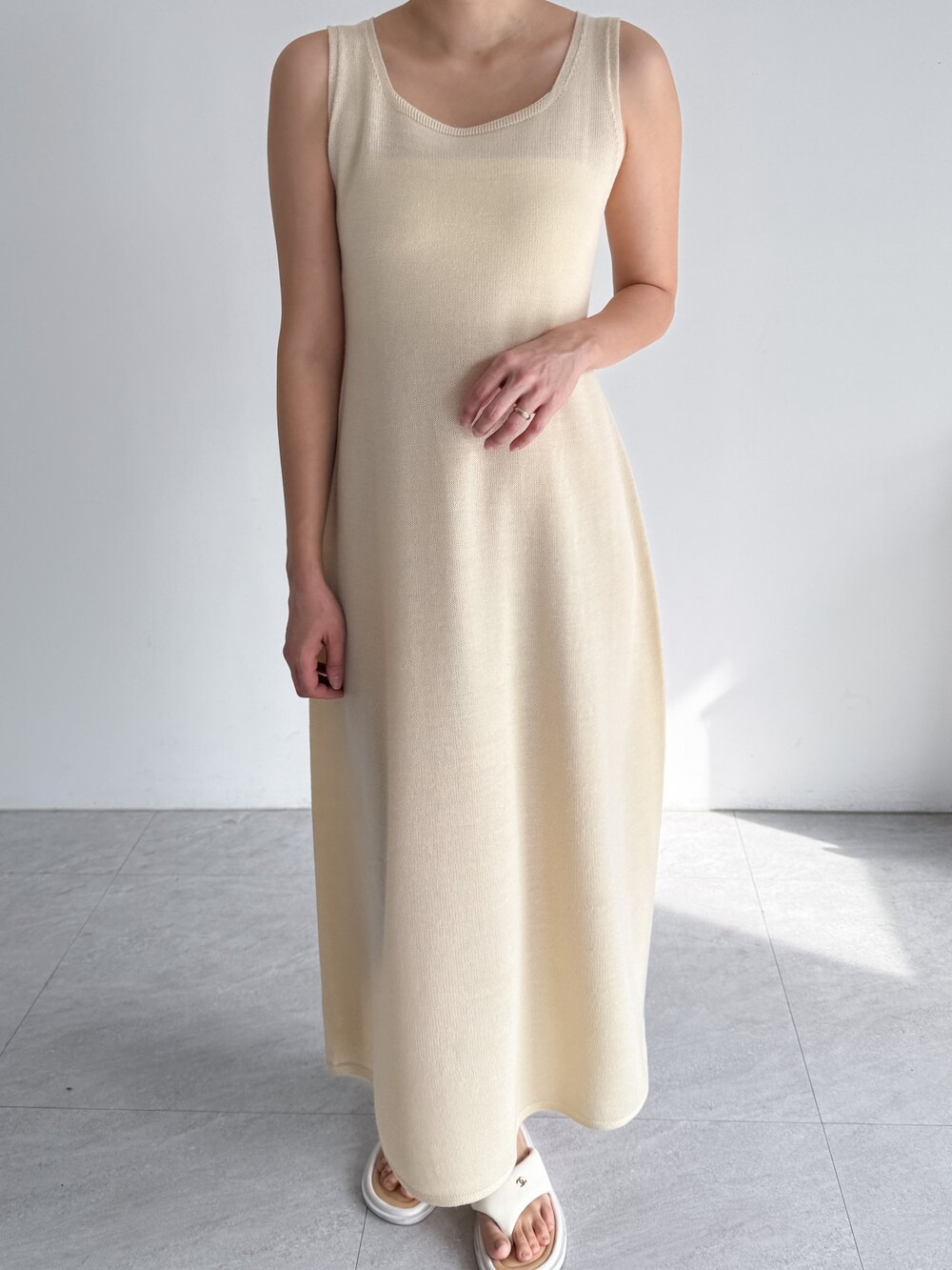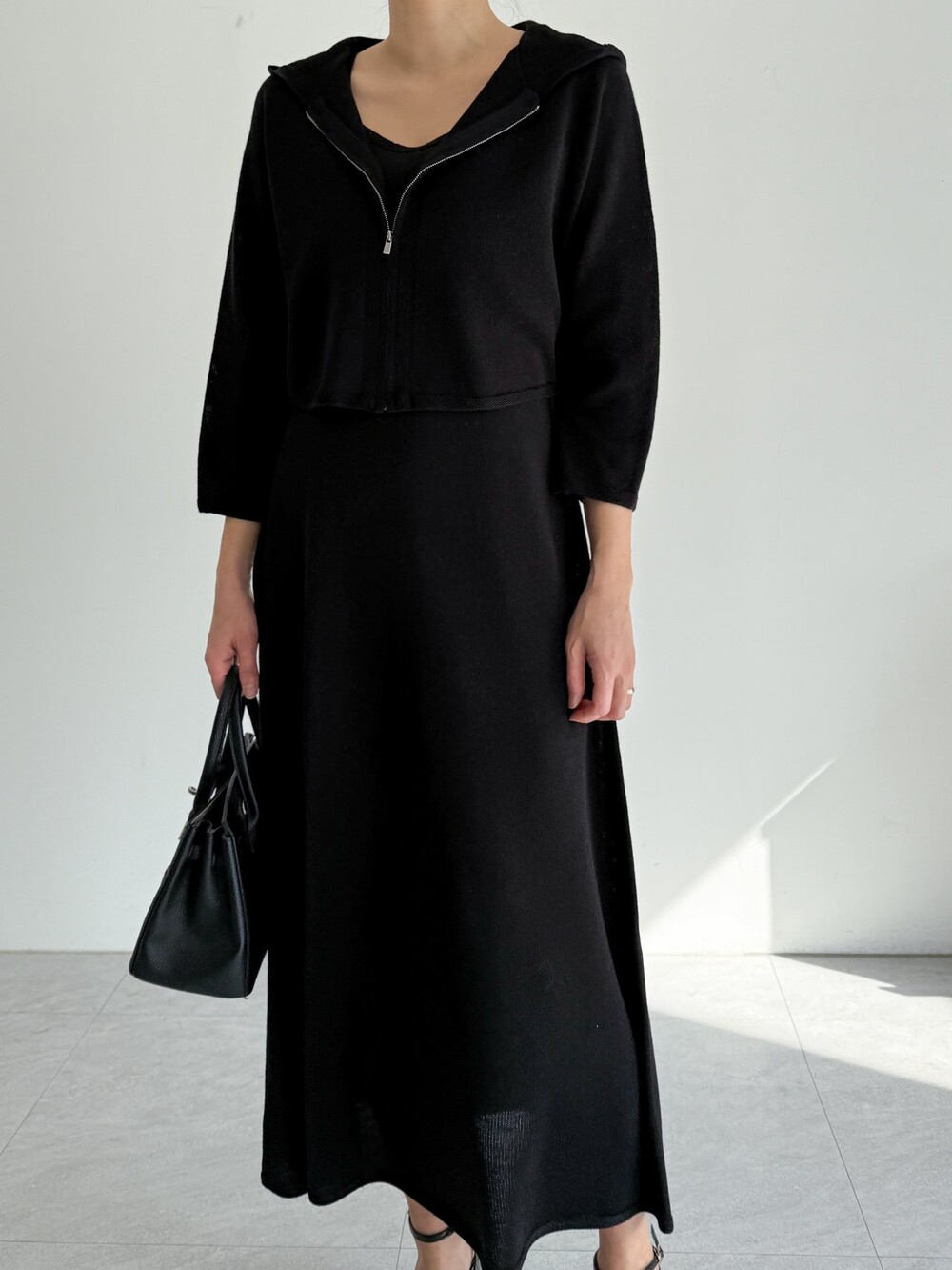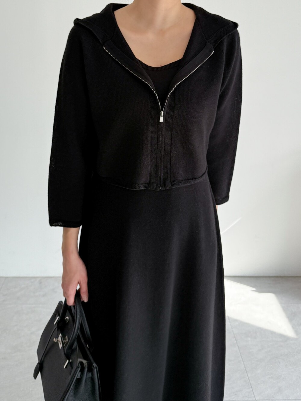 울 혼방 슬리브리스 니트 드레스로,