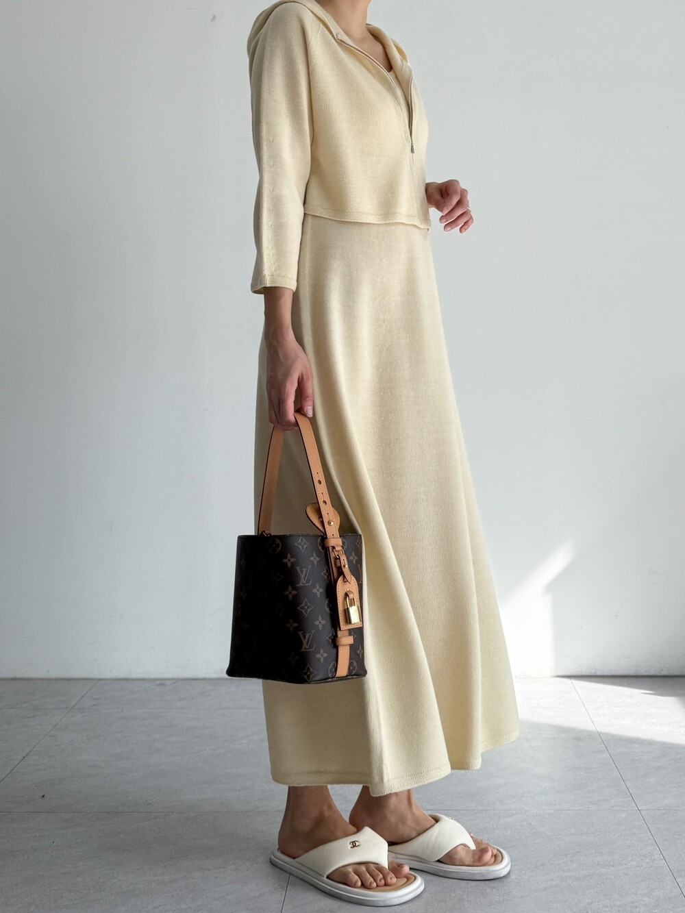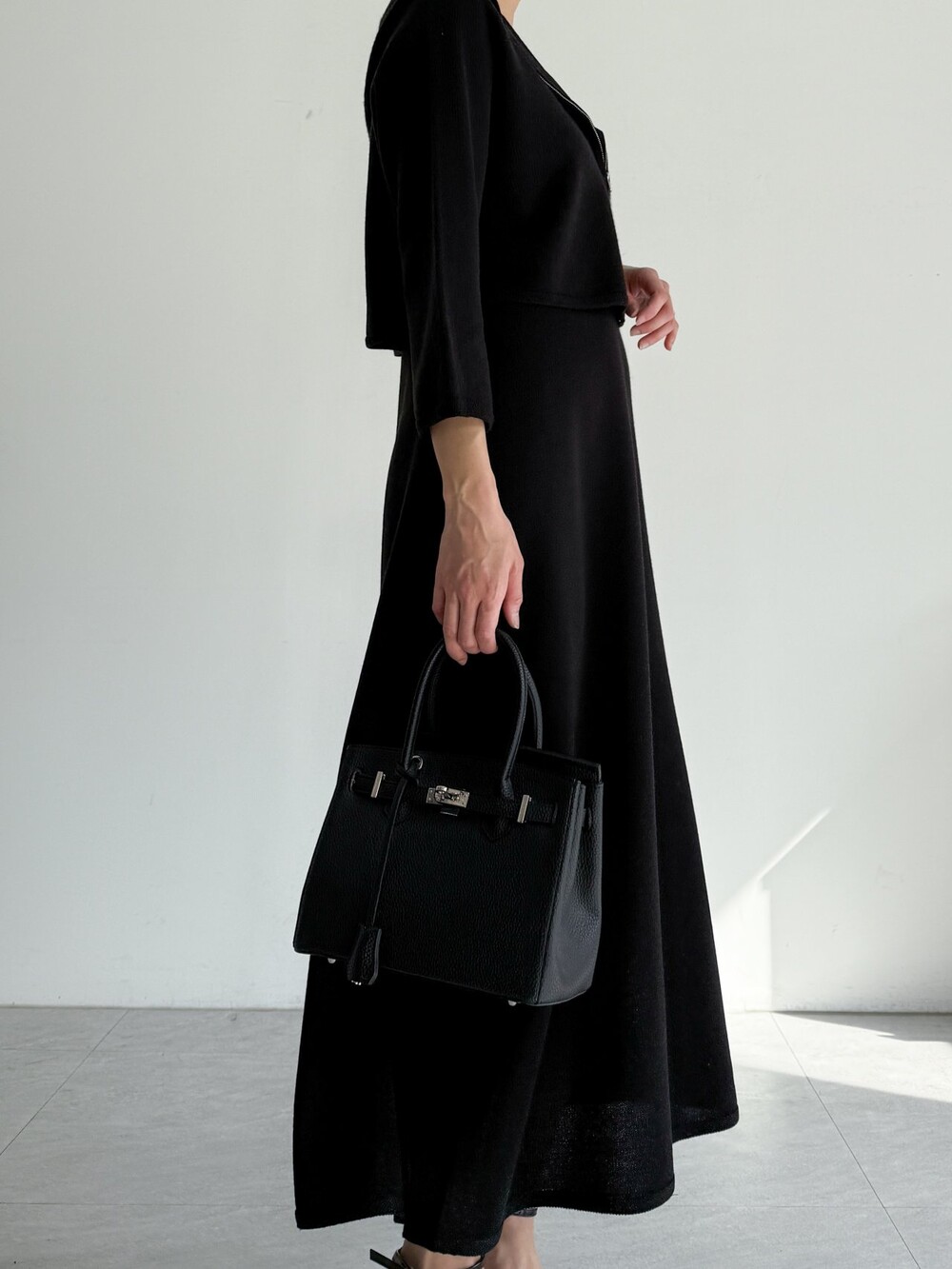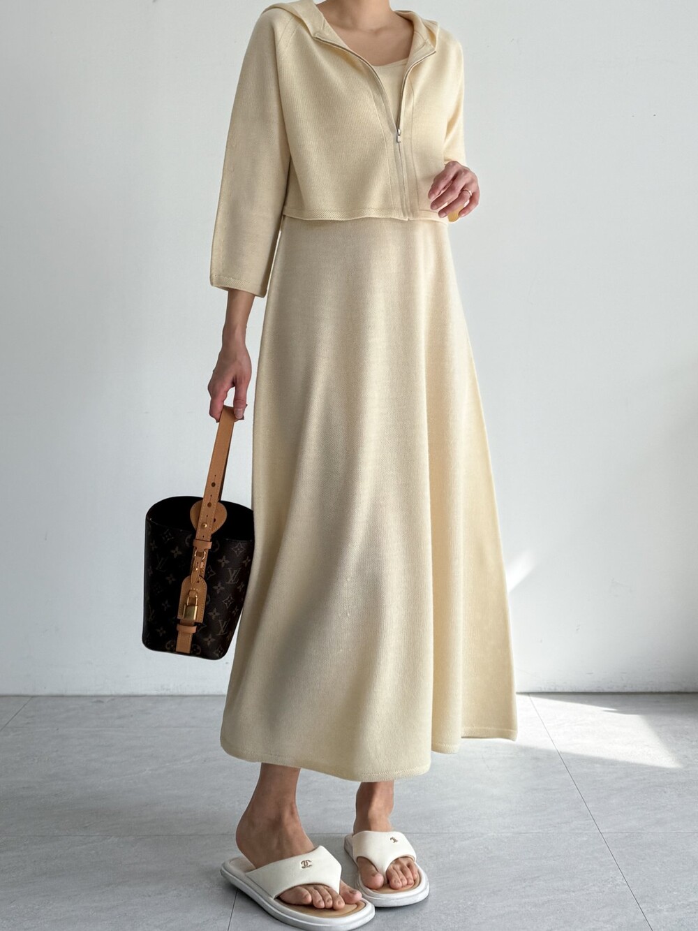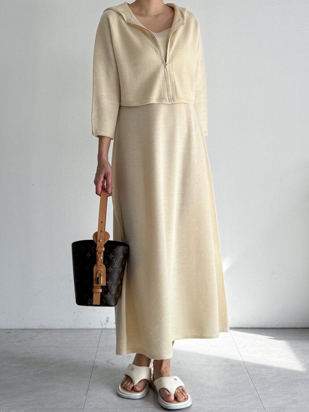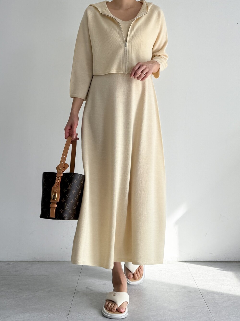 울 혼방 슬리브리스 니트 드레스로,