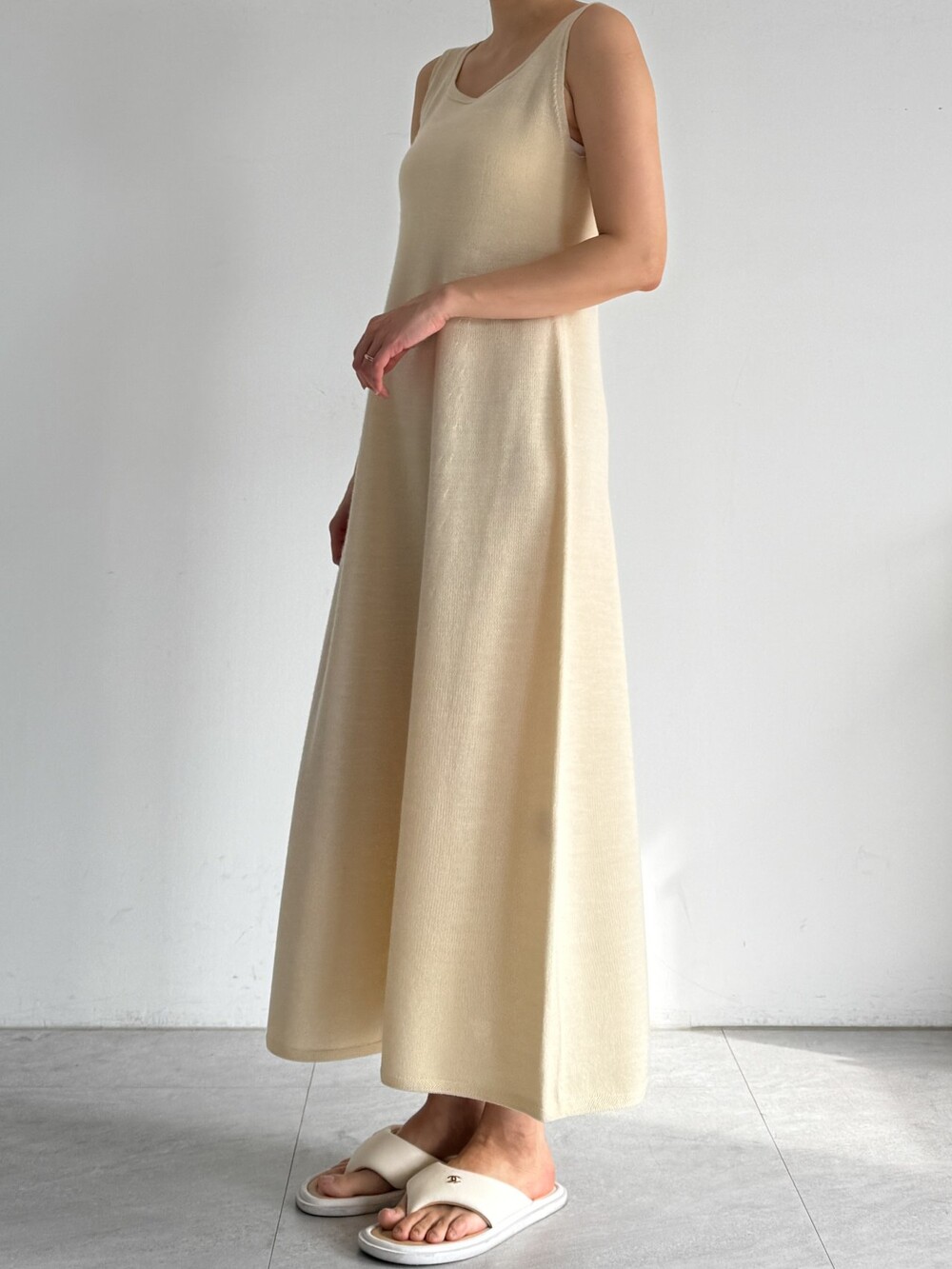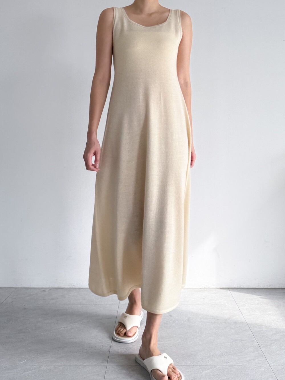울 블렌드 슬리브리스 니트 드레스