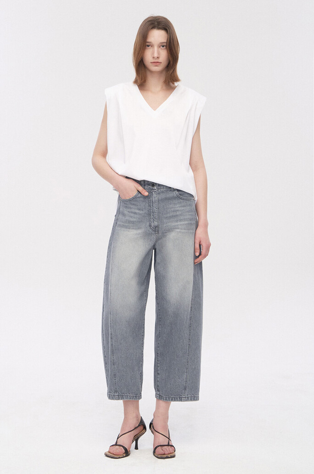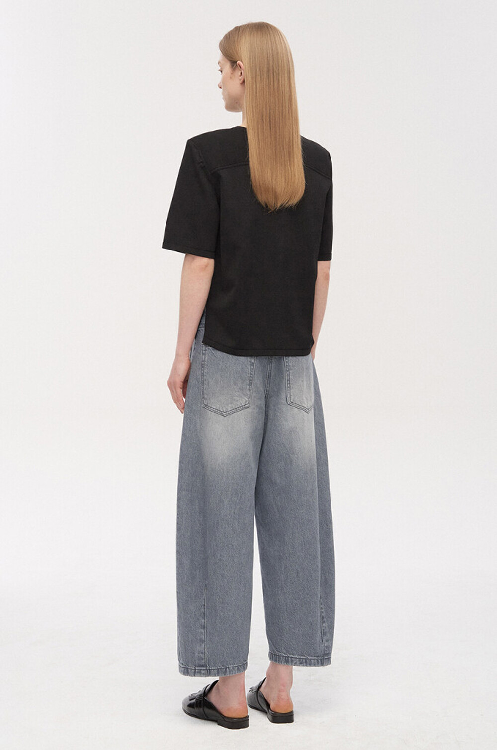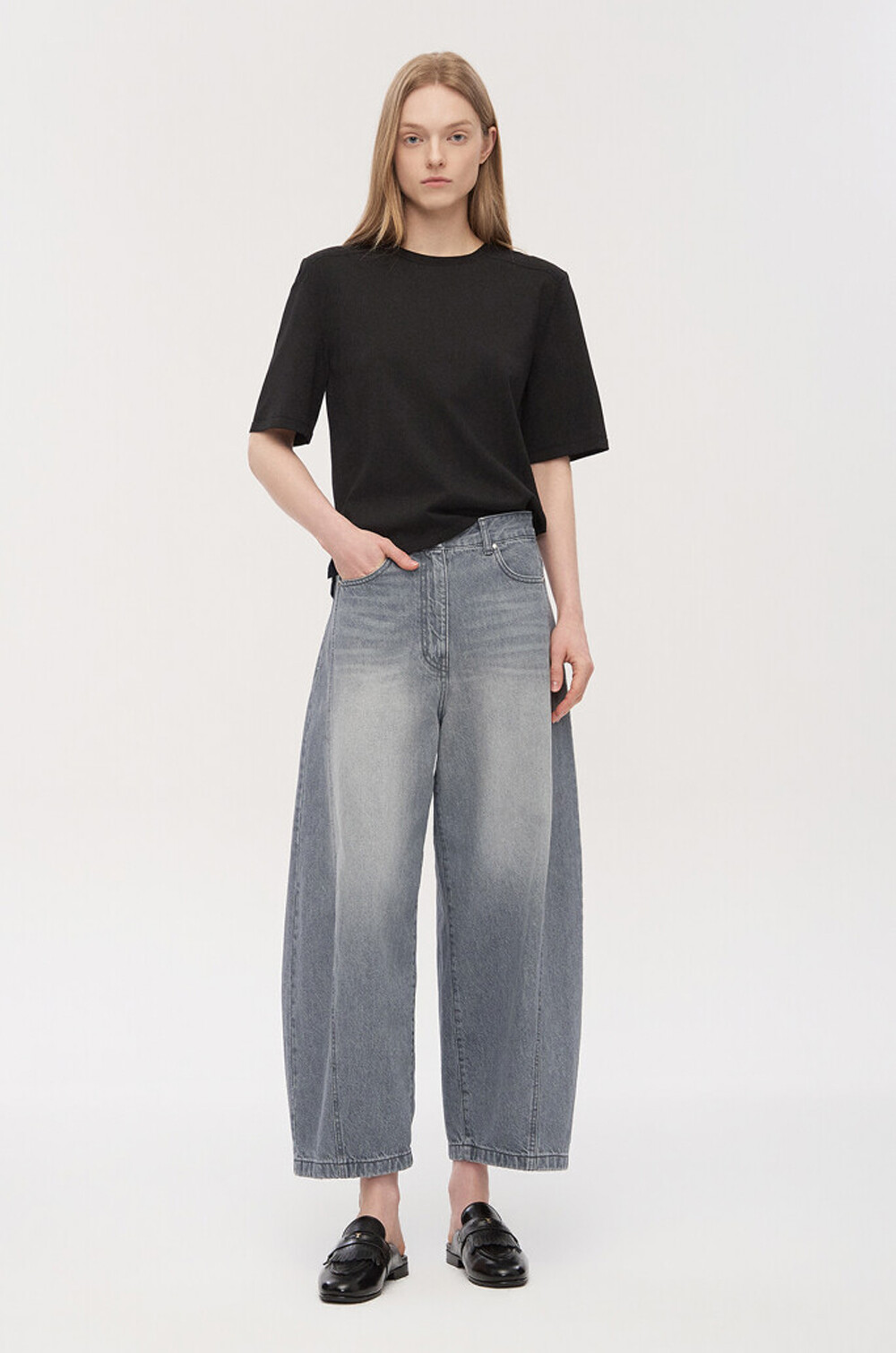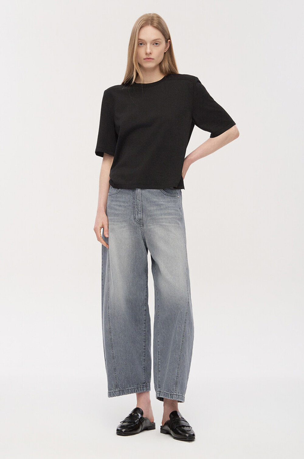 와이드 핏에 가까운 실루엣으로