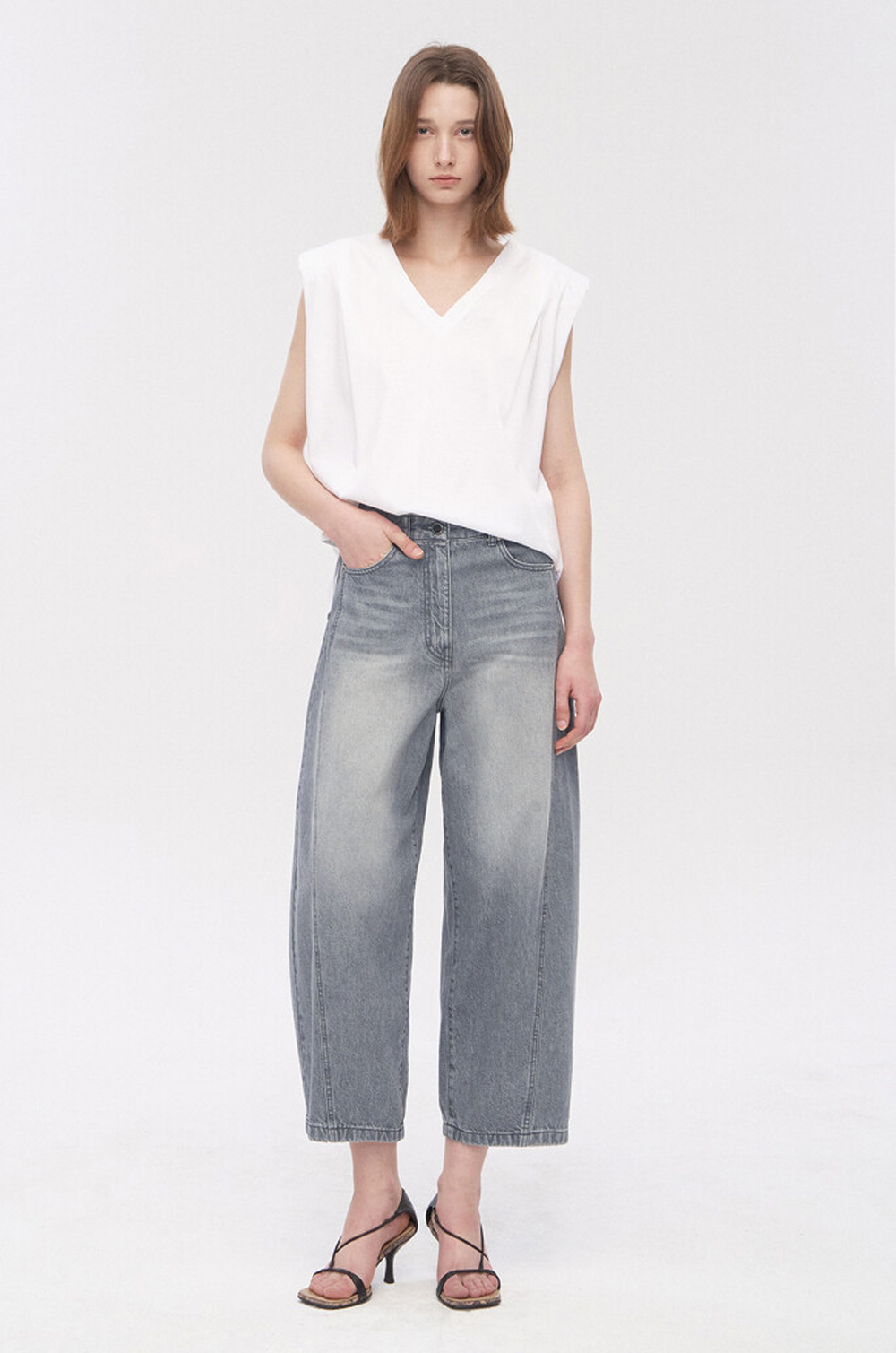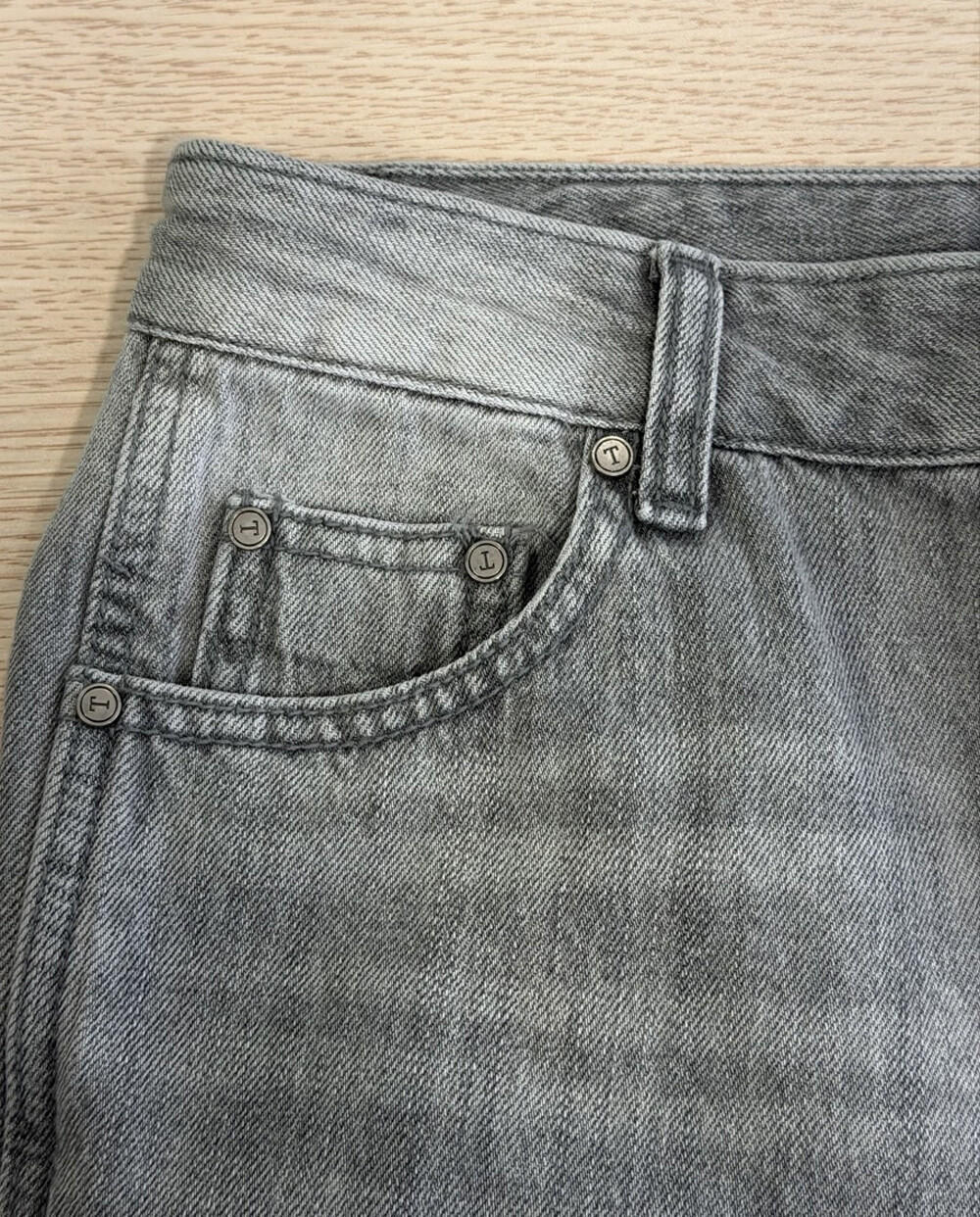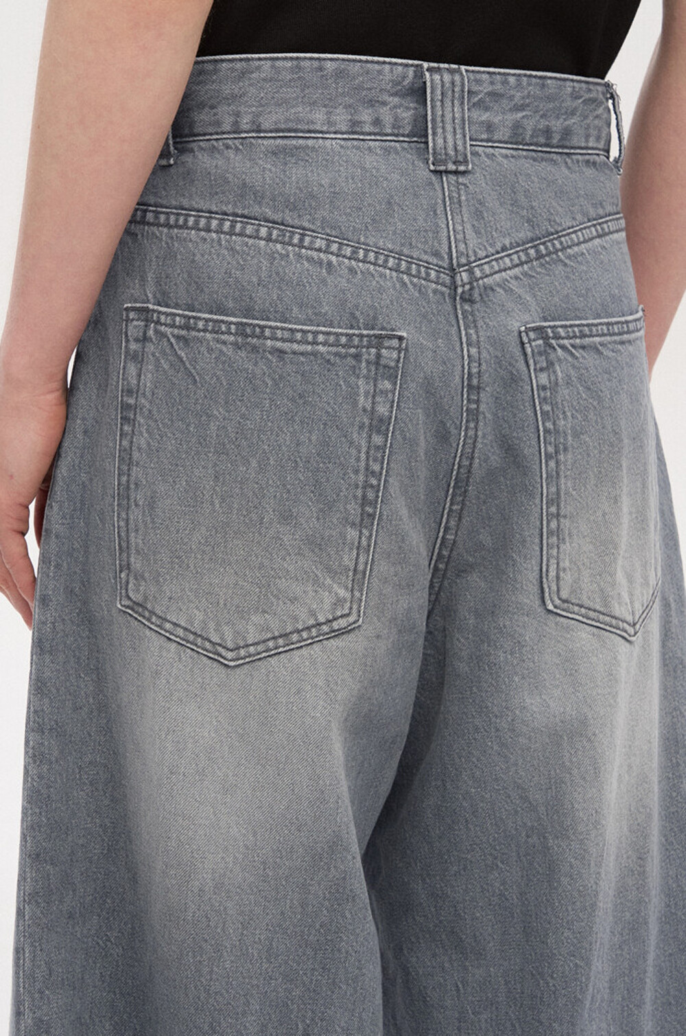 워싱 데님과 트위스트 심 디테일이