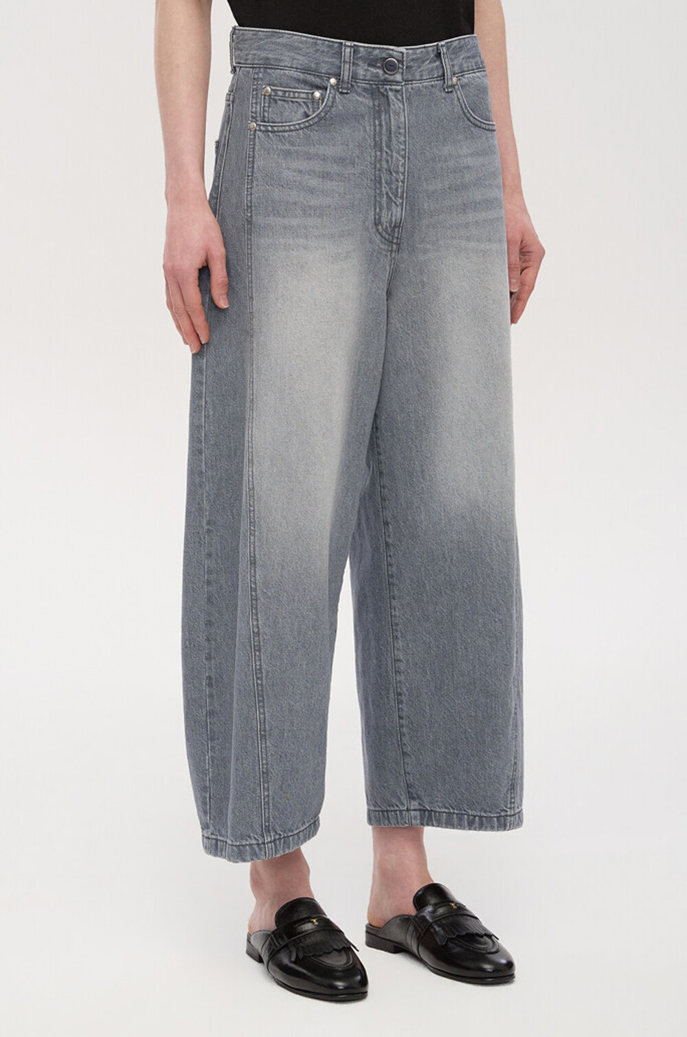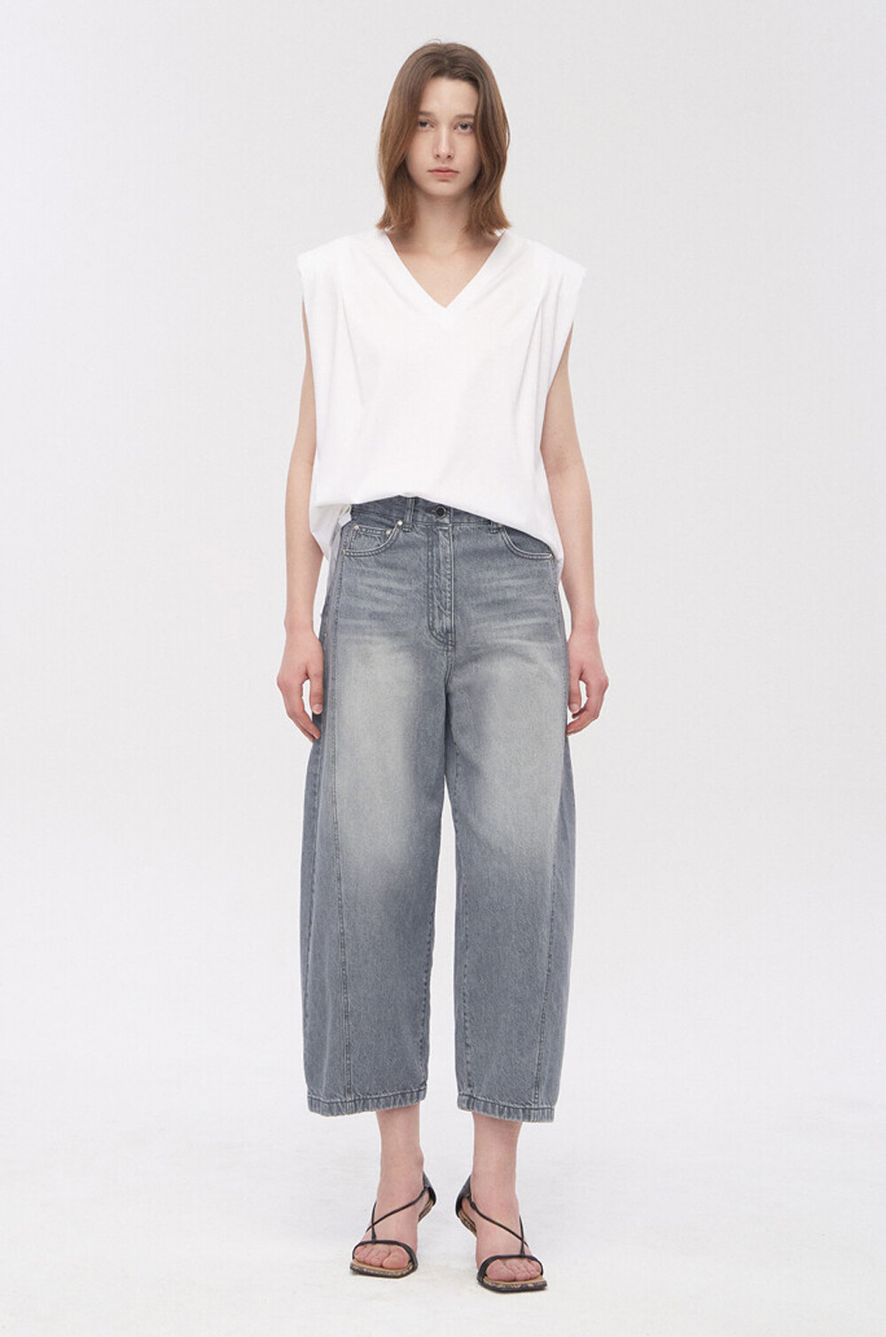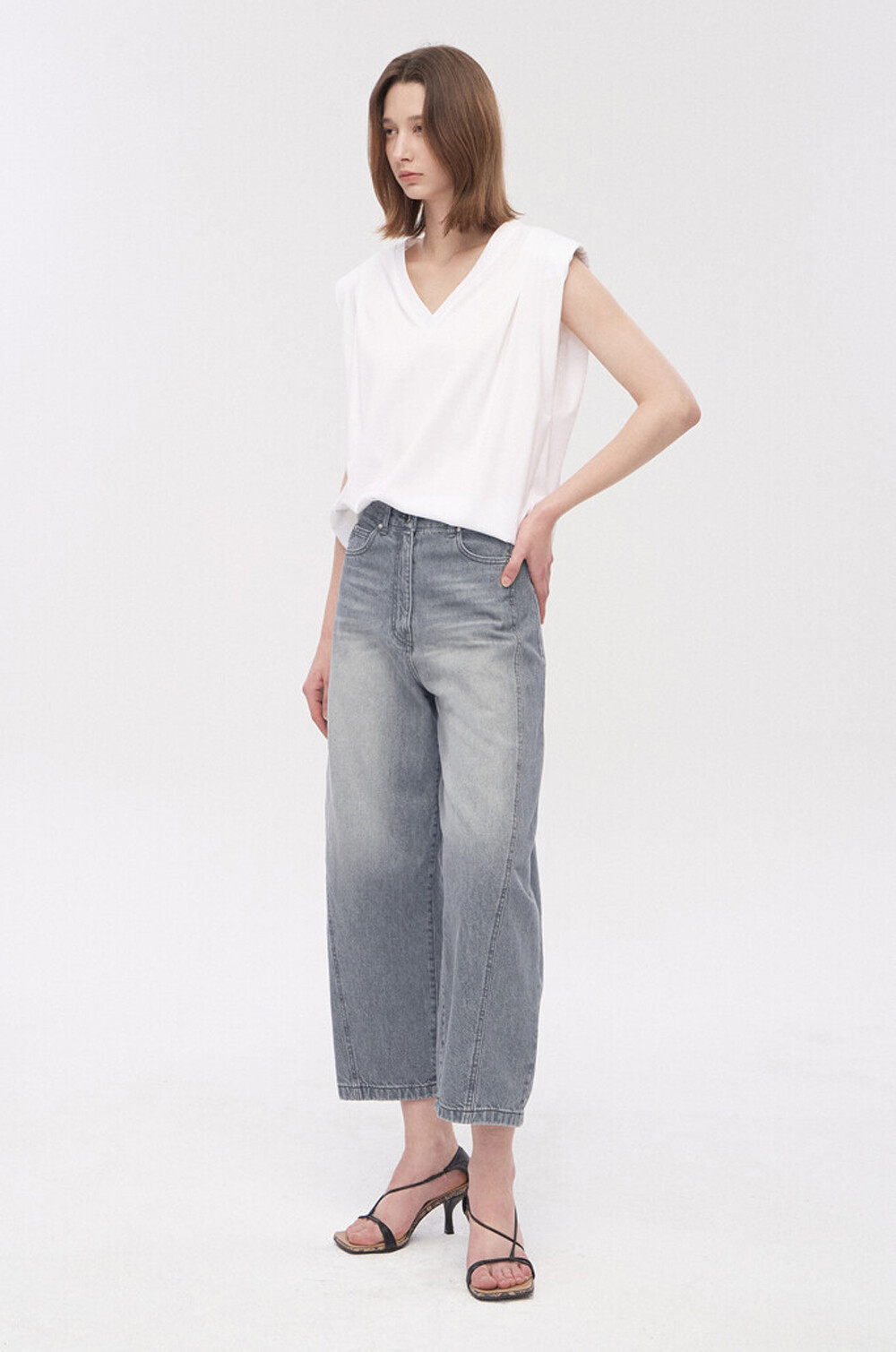 워싱 데님과 트위스트 심 디테일이