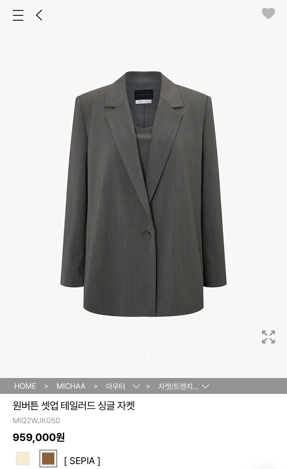 미샤 원버튼 셋업 테일러드 싱글 자켓 & 팬츠(3Piece)