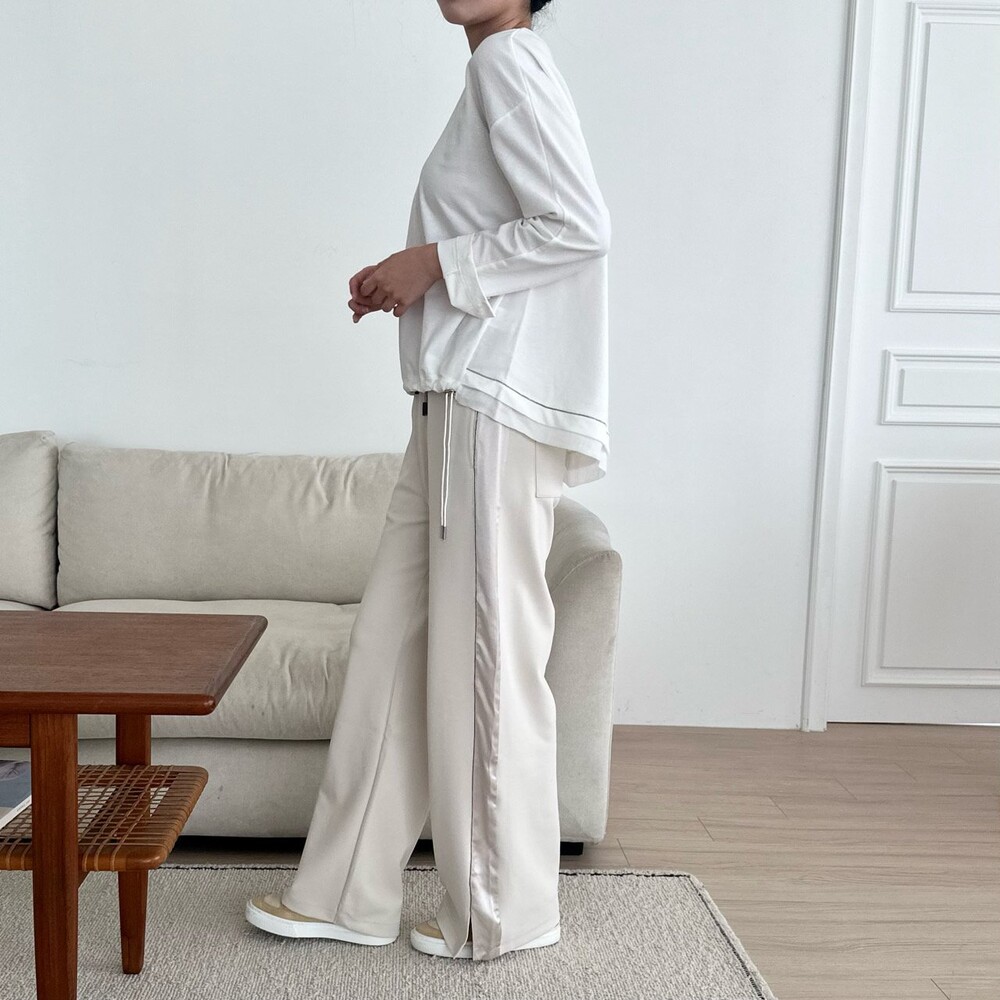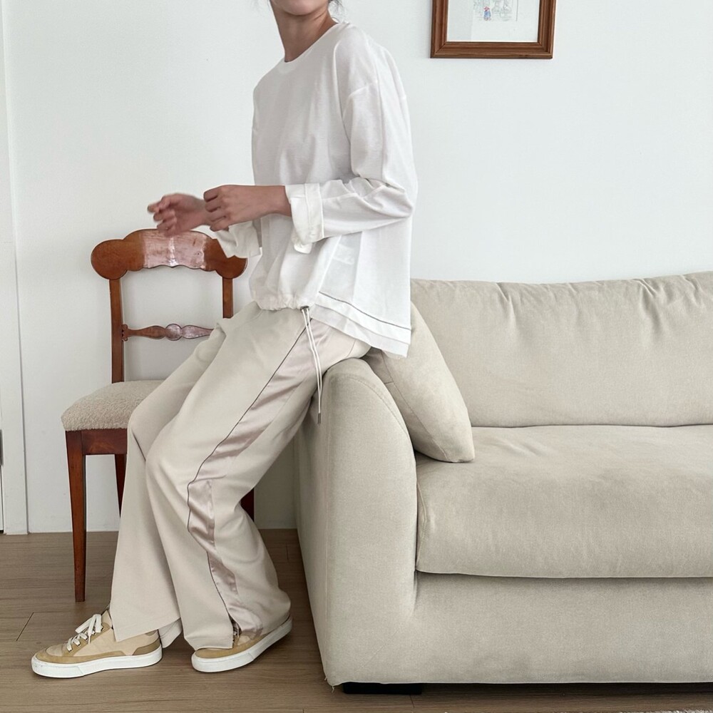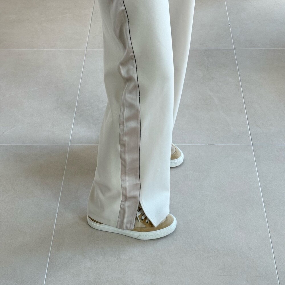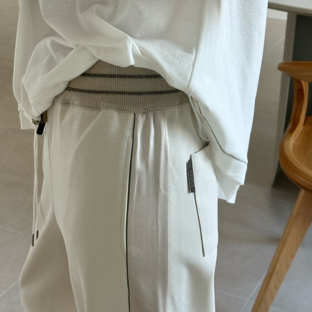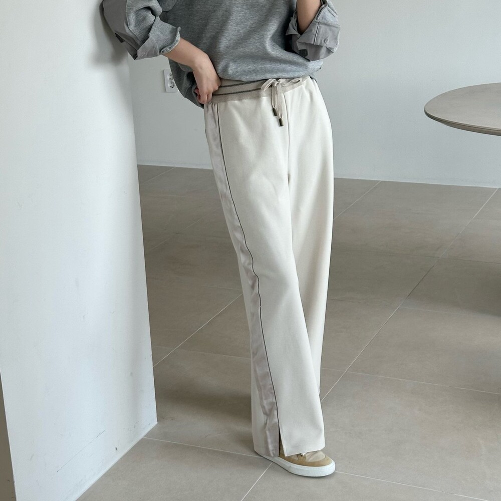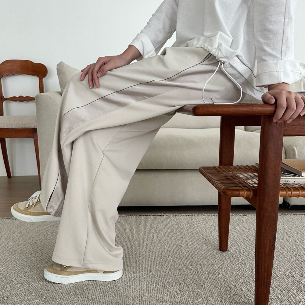 시각적인 포인트를 더한 팬츠예요.