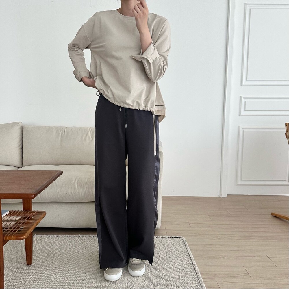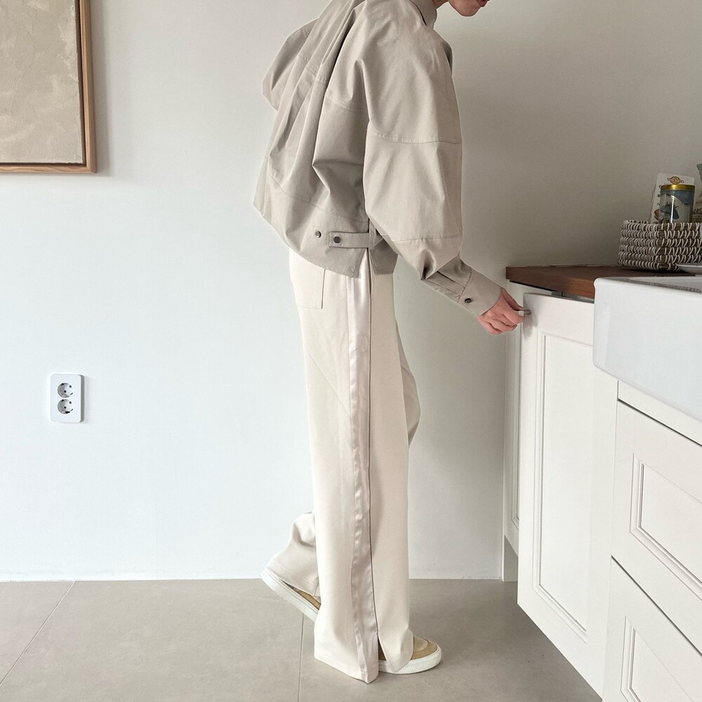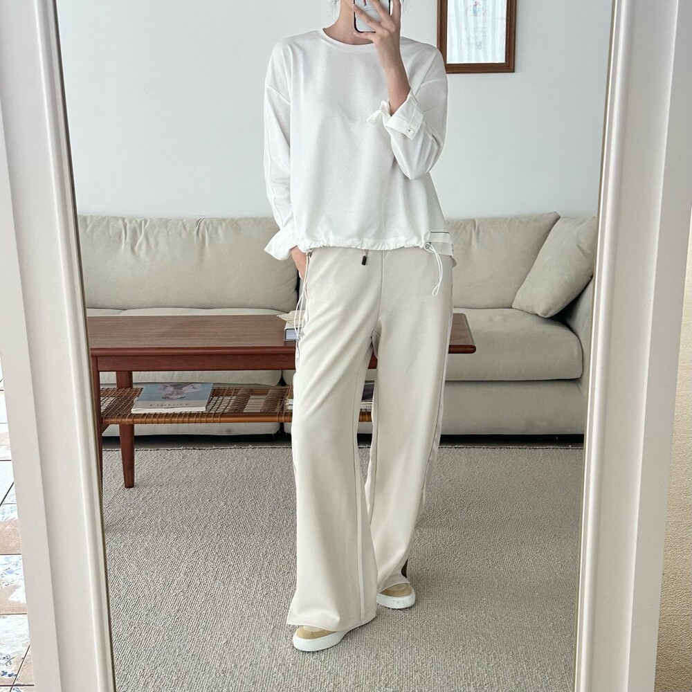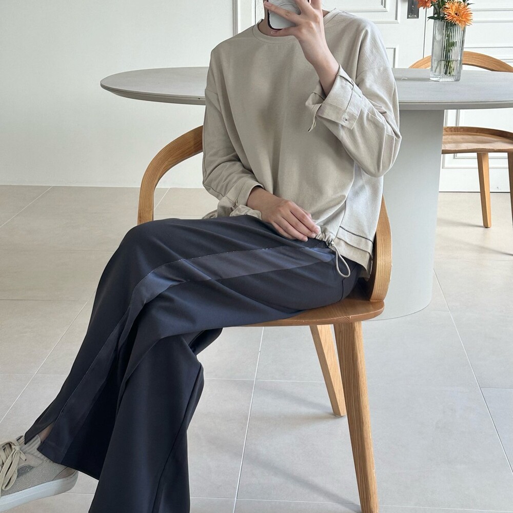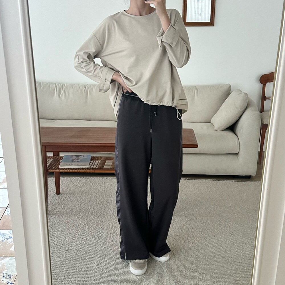 시각적인 포인트를 더한 팬츠예요.
