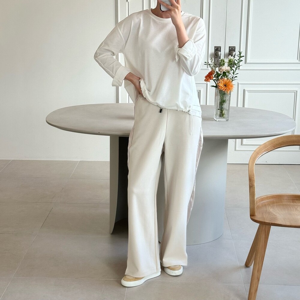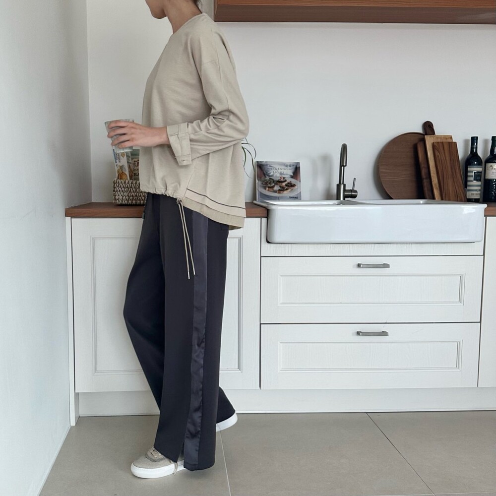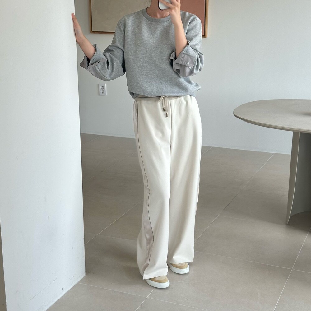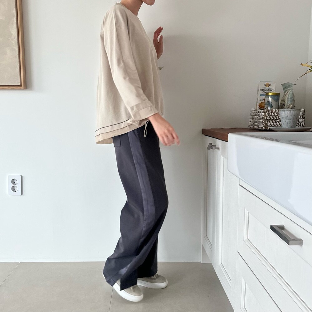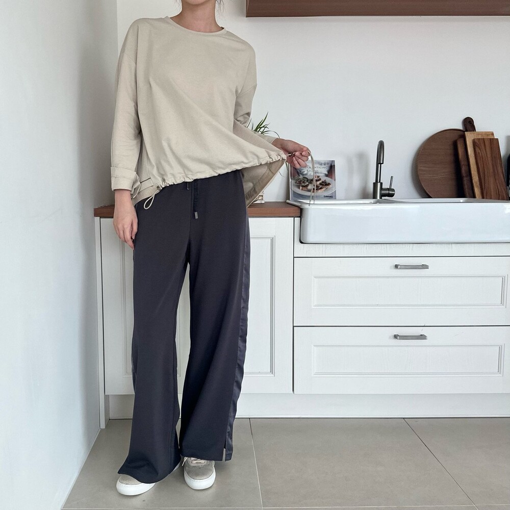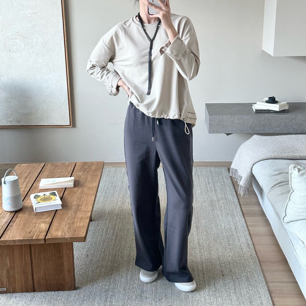시각적인 포인트를 더한 팬츠예요.
