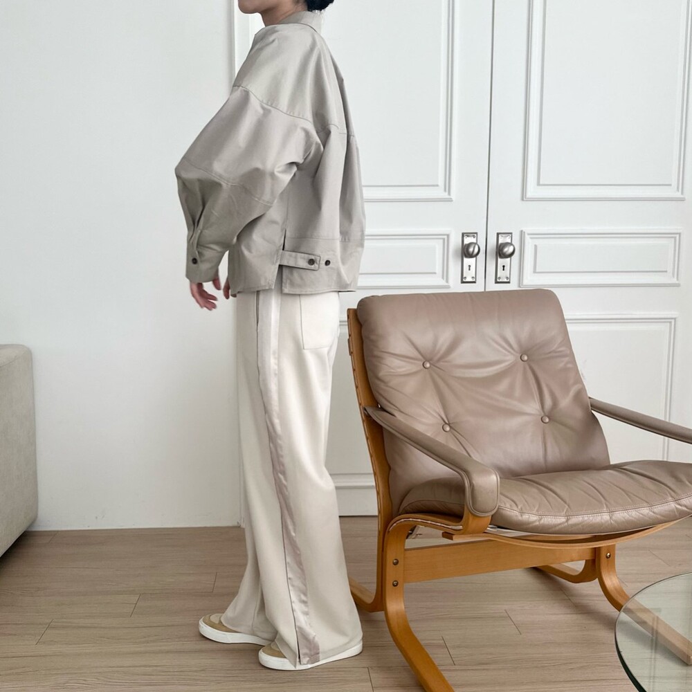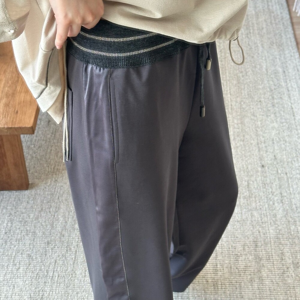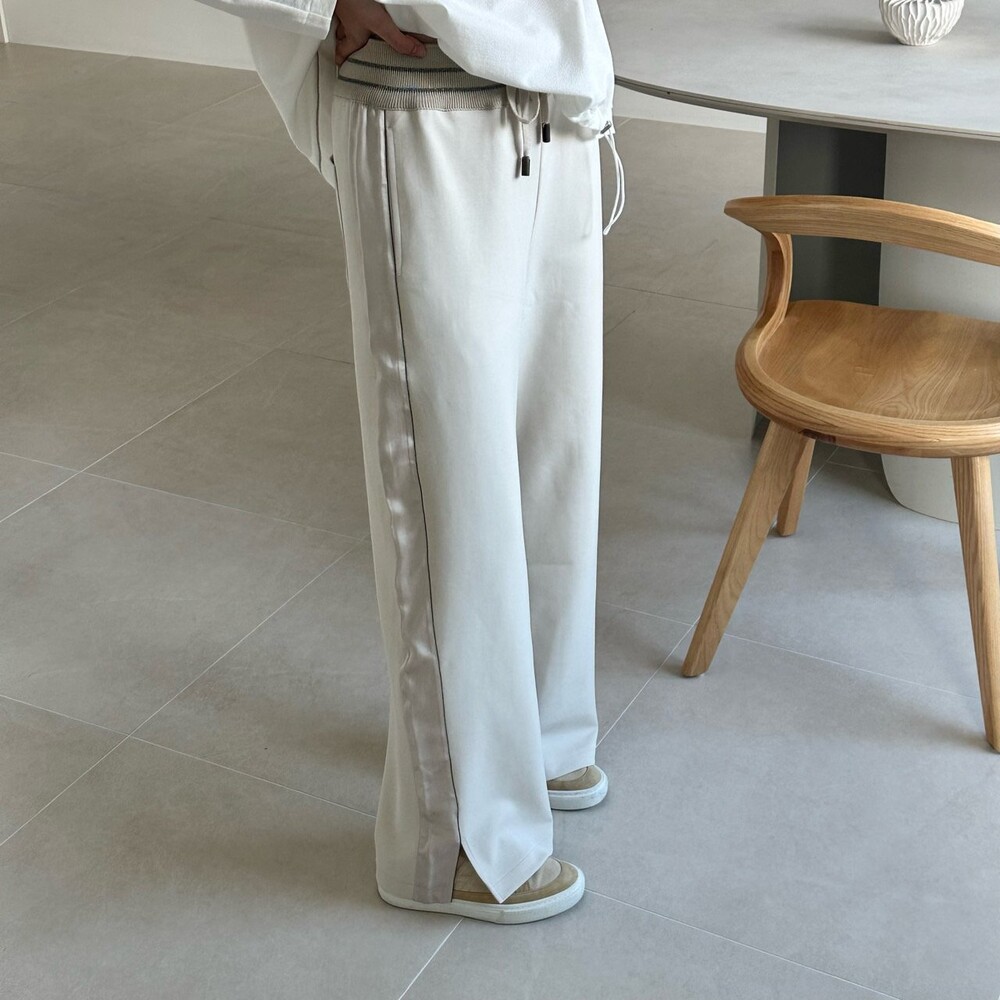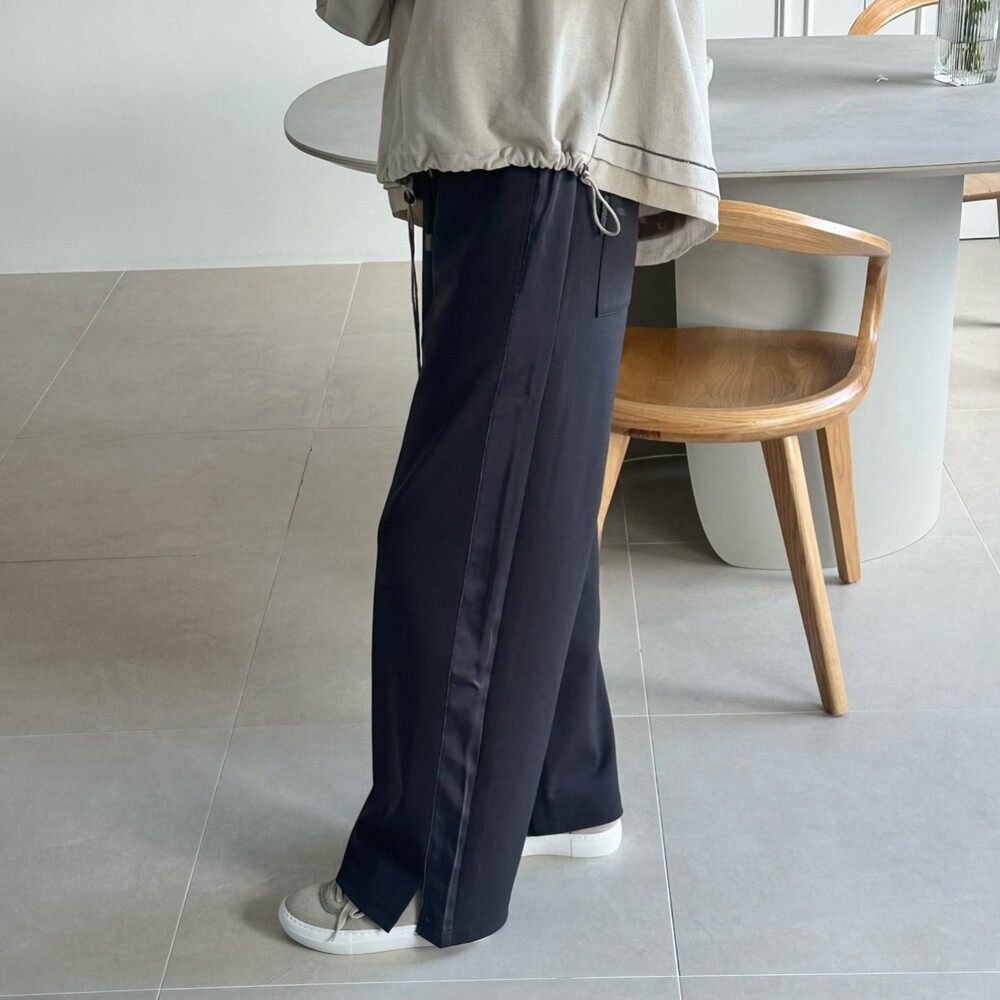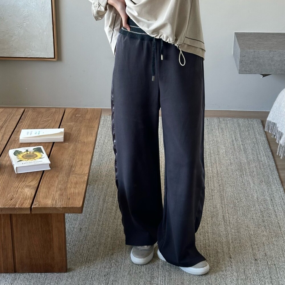 맨션. 페세리코 새틴 블록 와이드 팬츠