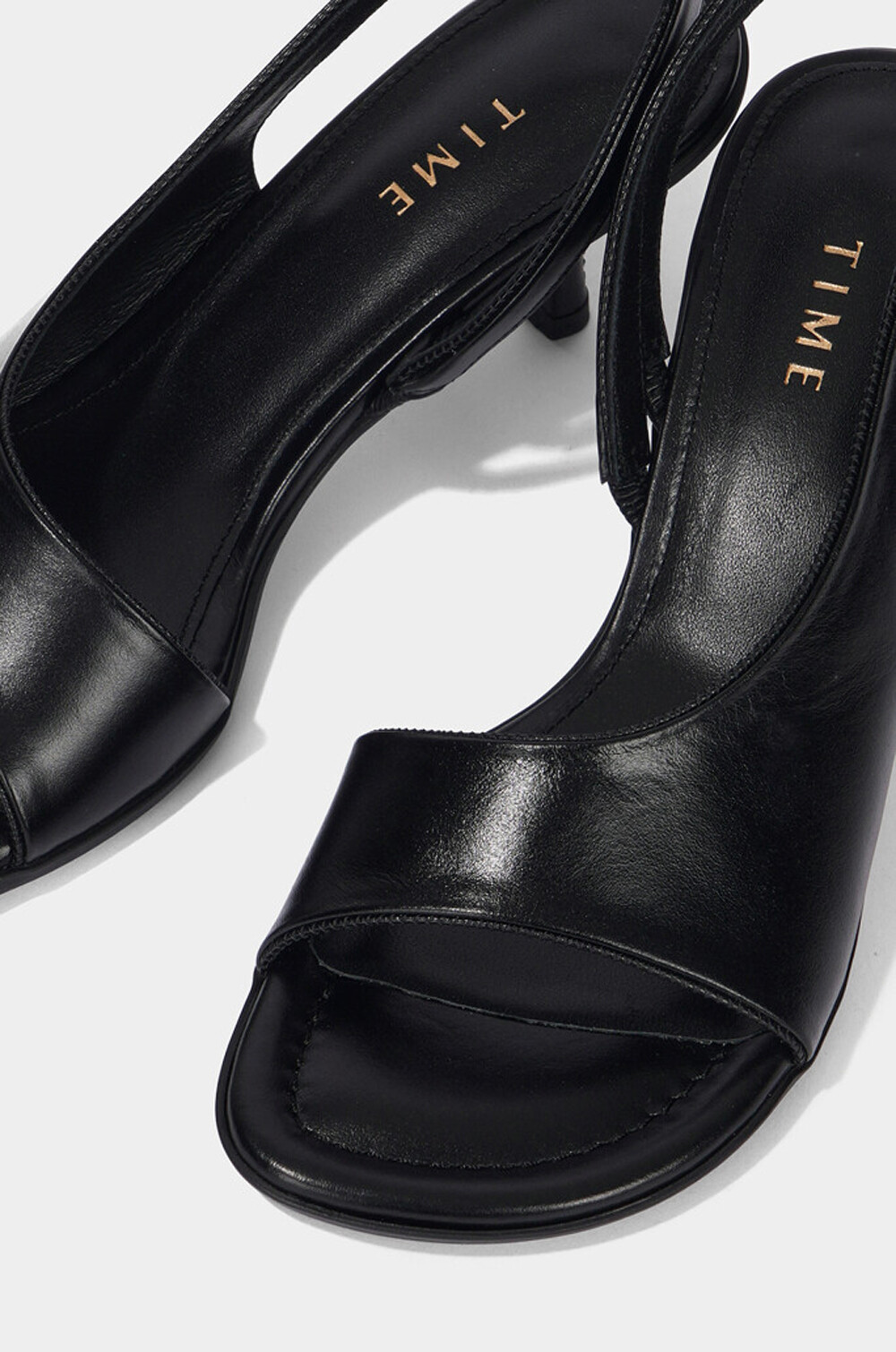TIME. Leather Open Toe Slingback Heel