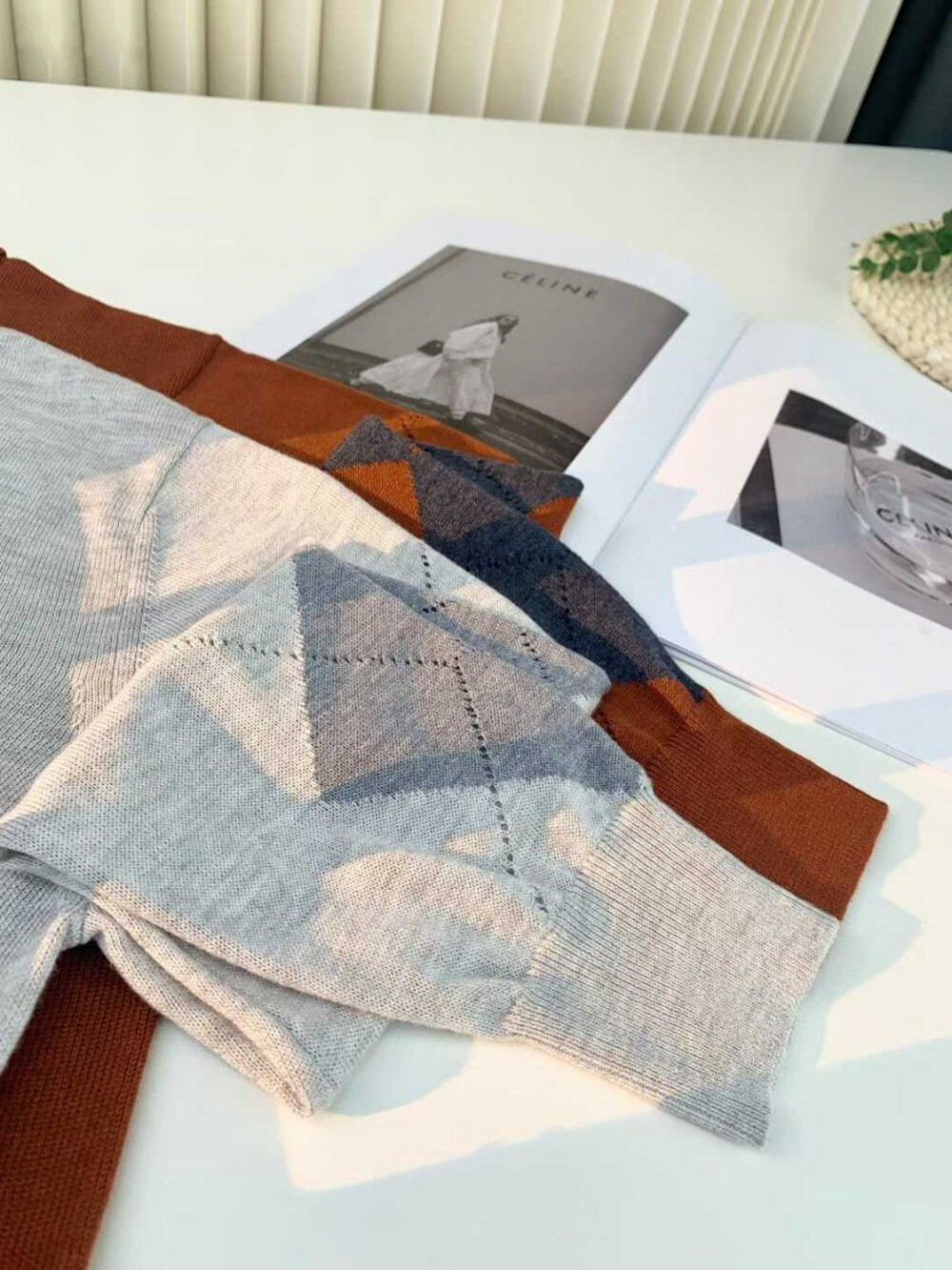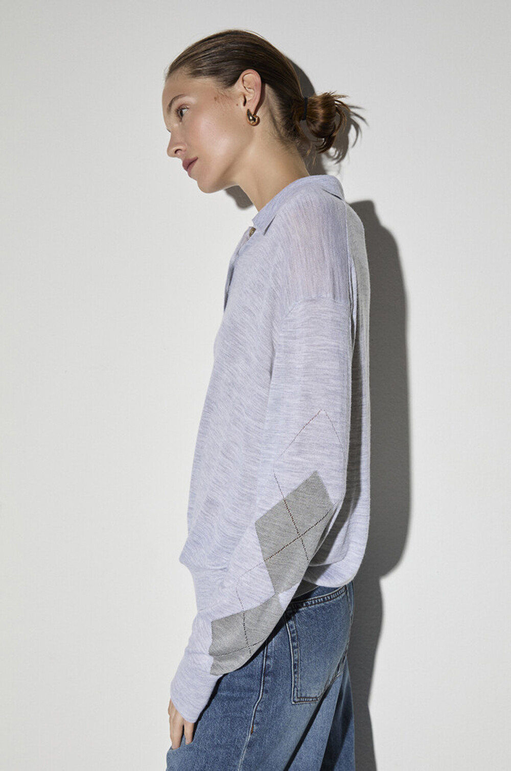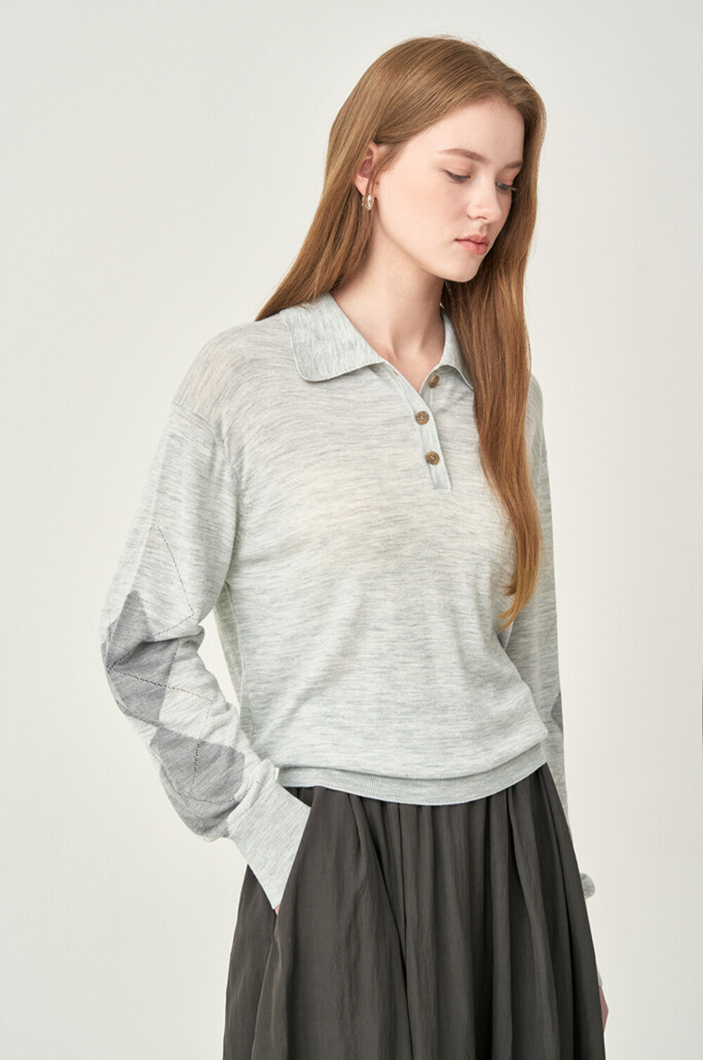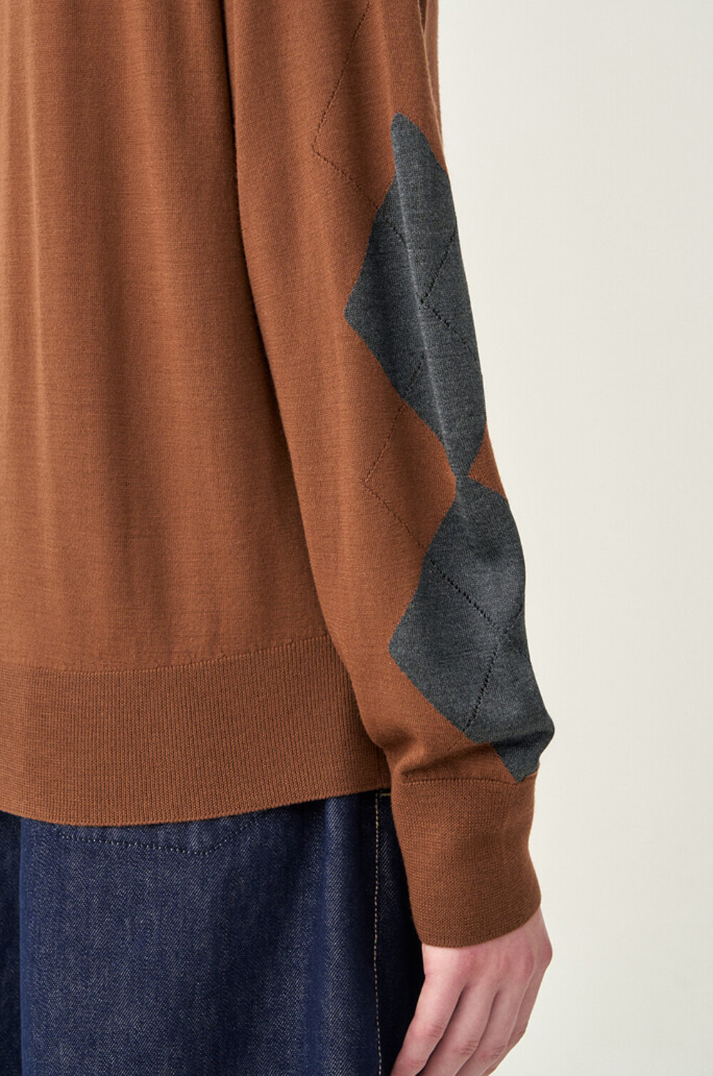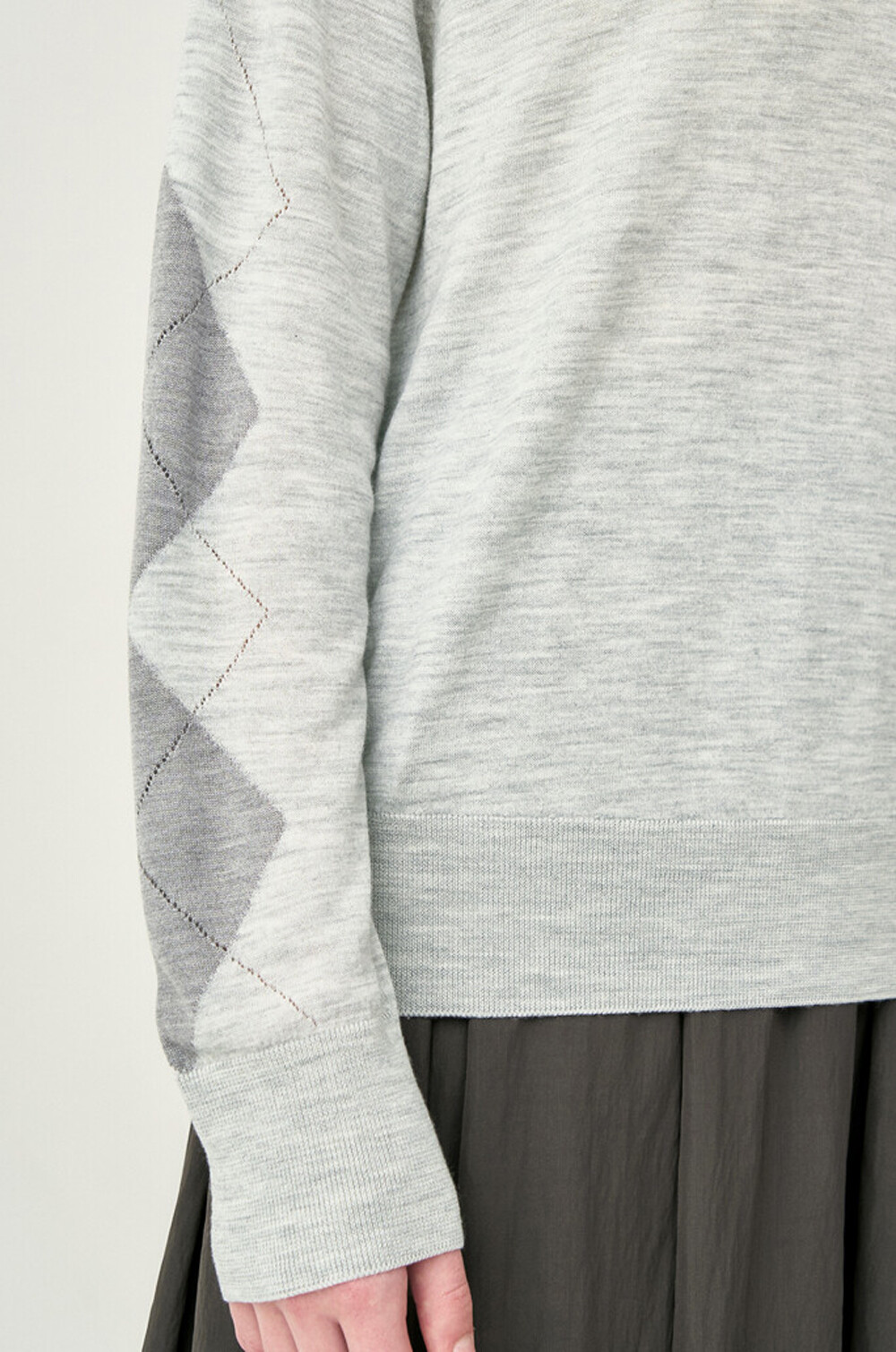 THE CASHMERE. Wool Argyle Sleeve Knit Top
