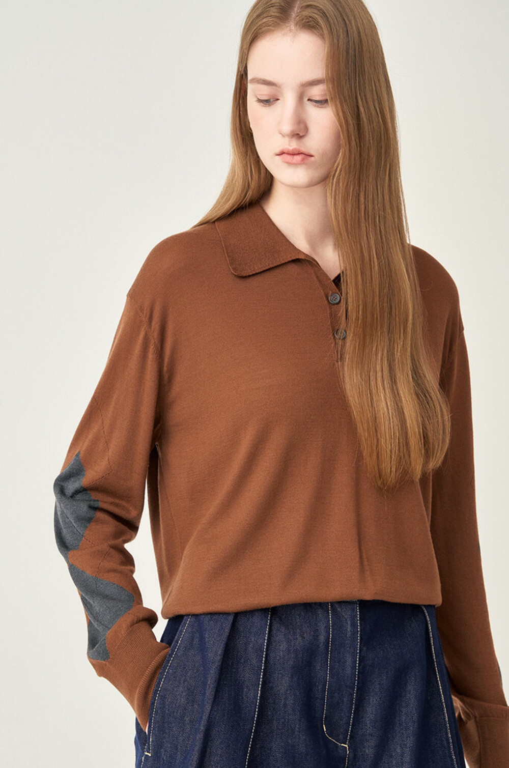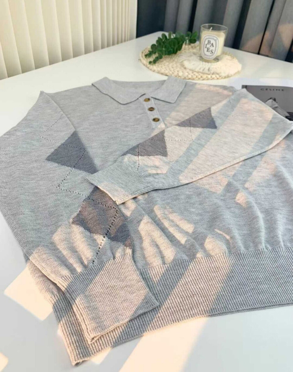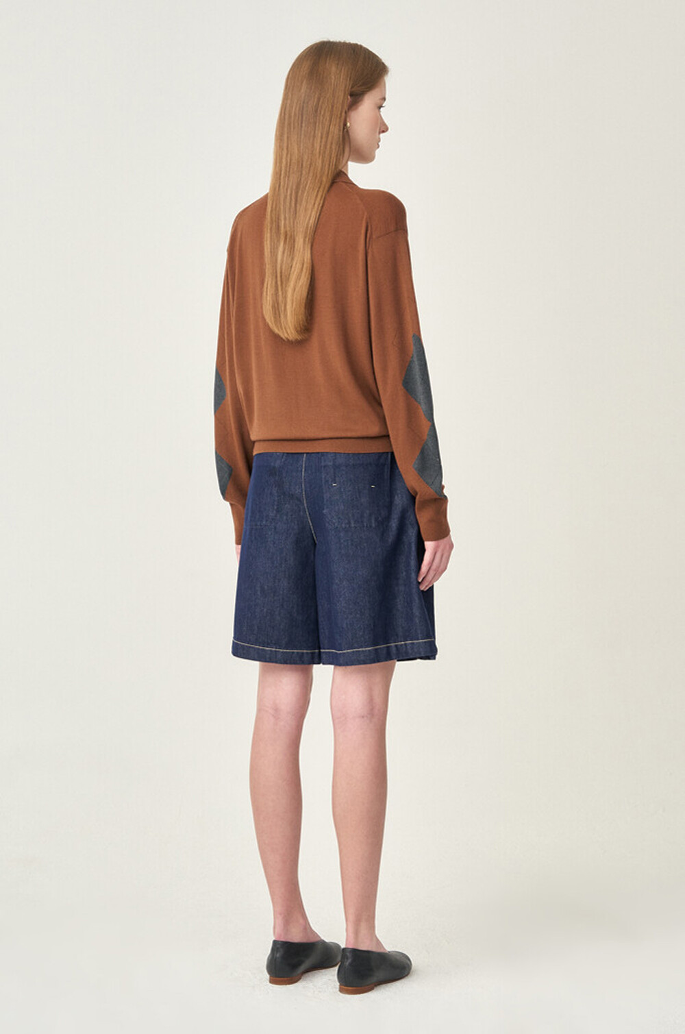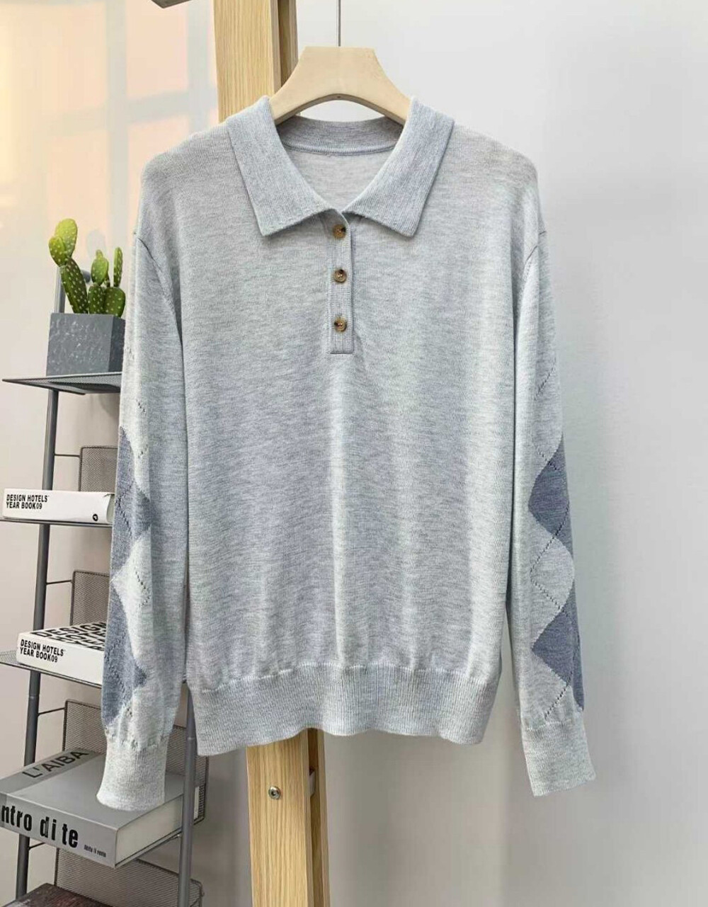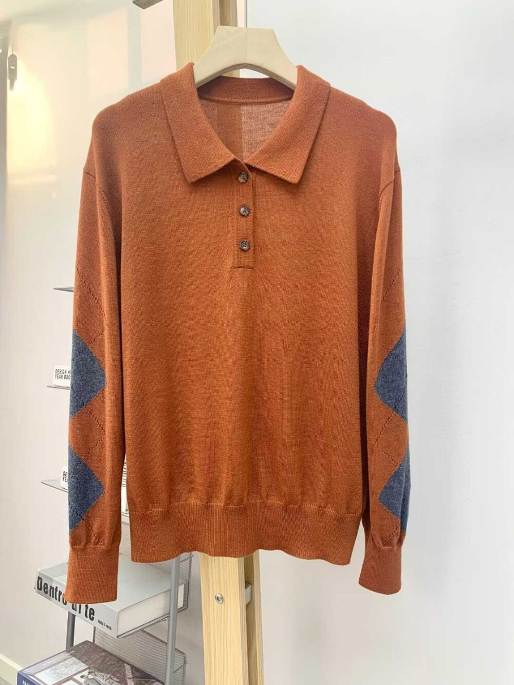 THE CASHMERE. Wool Argyle Sleeve Knit Top